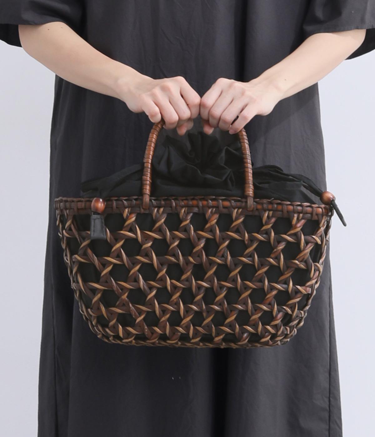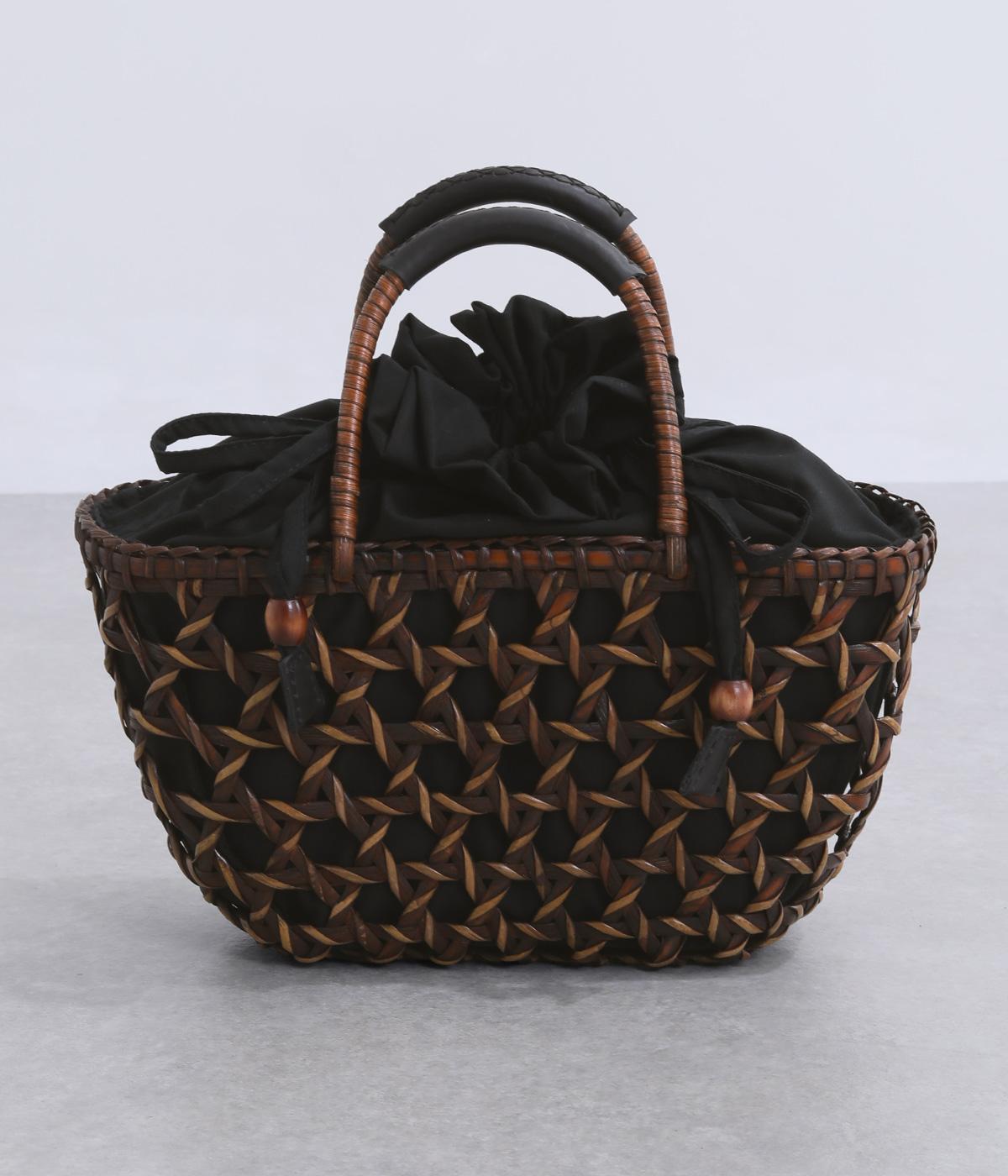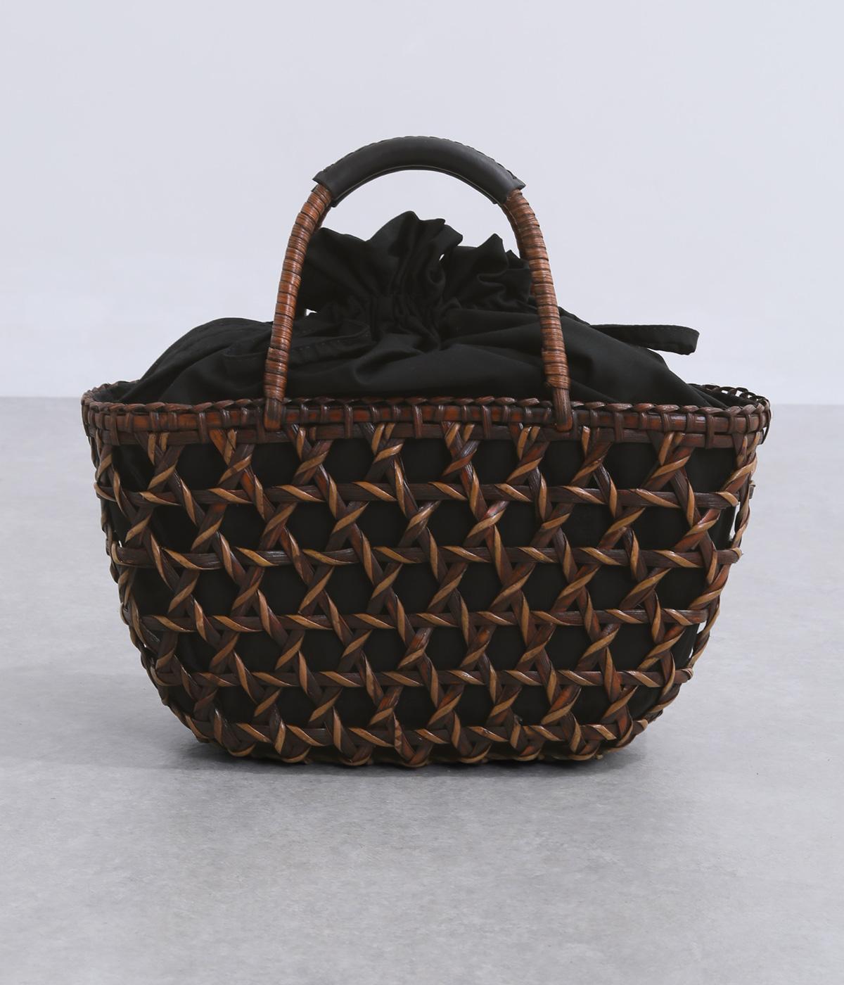 しっかりと編み上げたかごめ編みが印象的なバスケットバッグです。立体感のある佇まいが装いにさりげない表情を添えます。口元は絞れる仕様で中身が見えにくく、内側にはポケットを備え、日常使いにも取り入れやすく仕上げています。