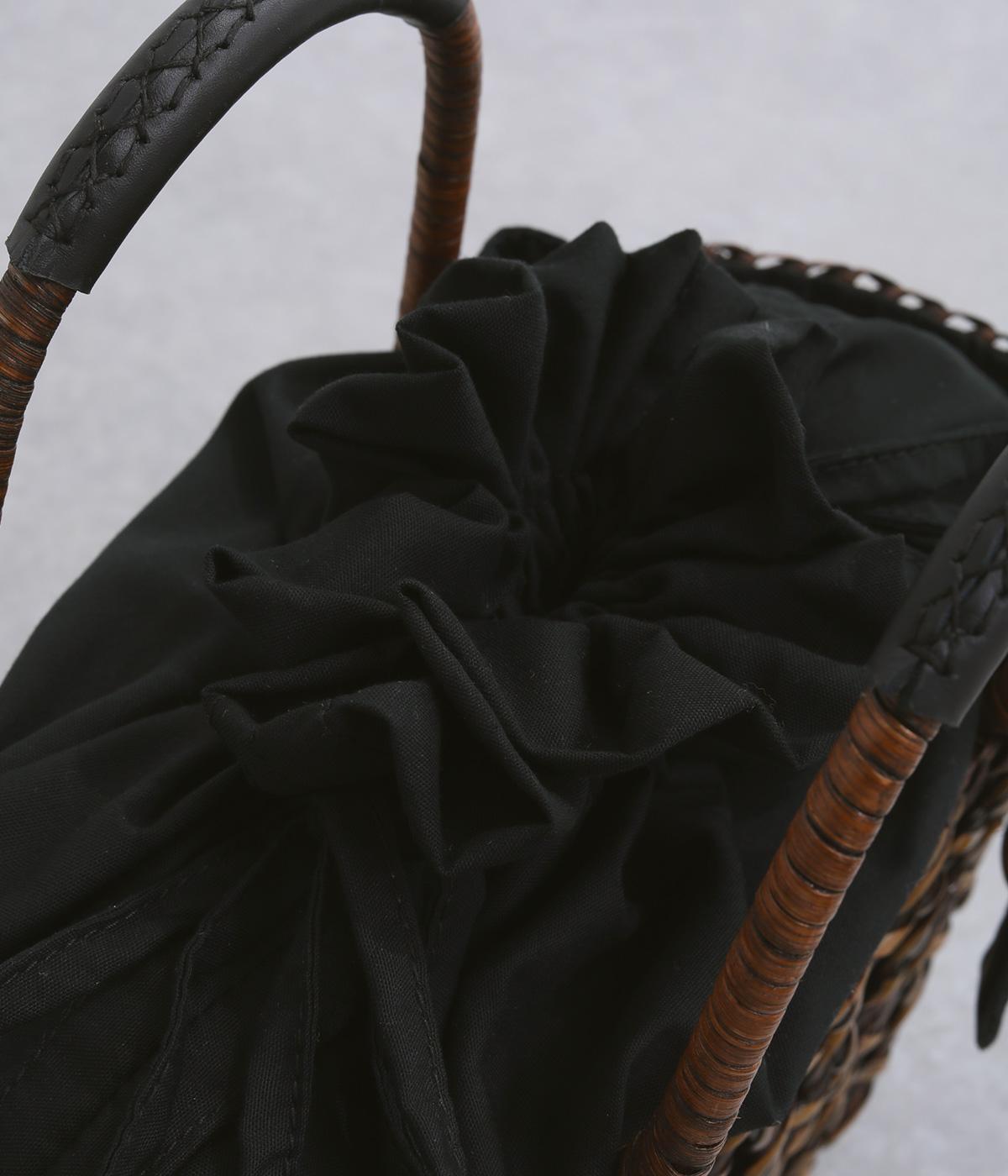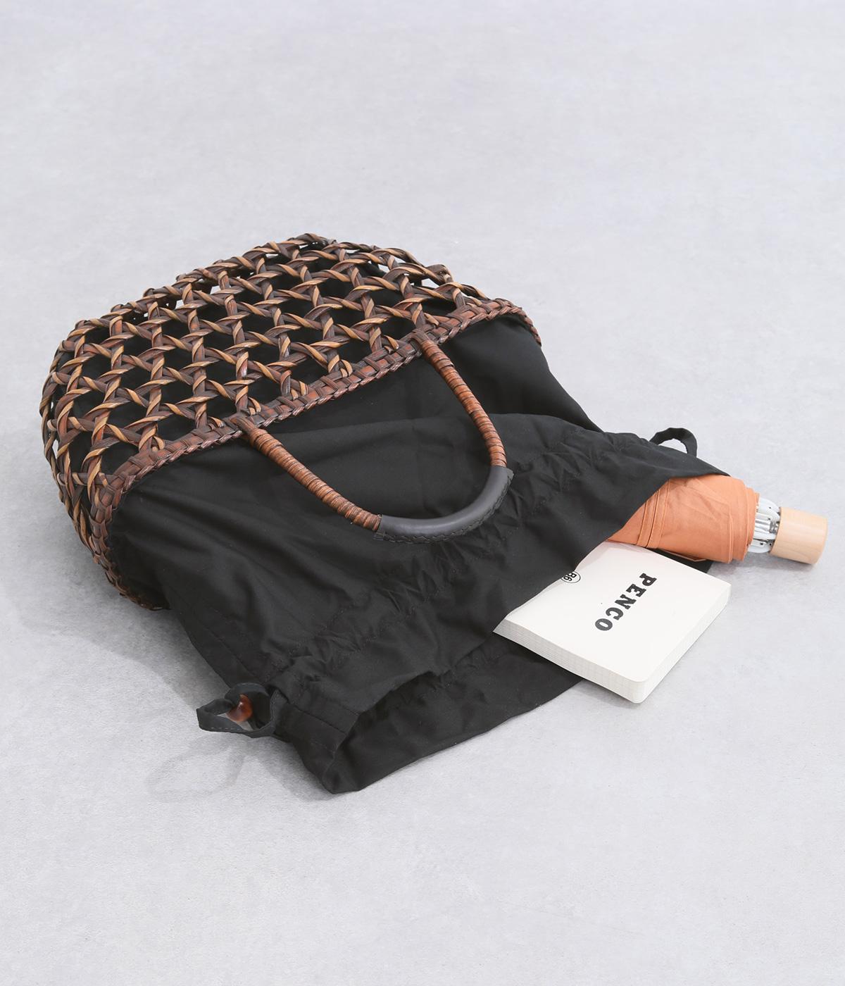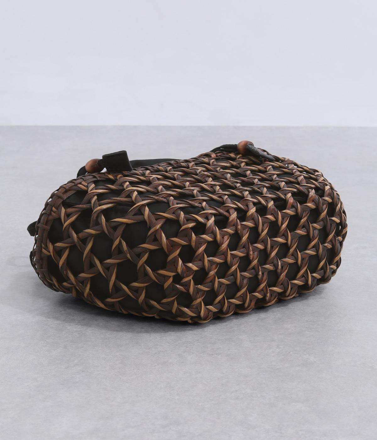 しっかりと編み上げたかごめ編みが印象的なバスケットバッグです。立体感のある佇まいが装いにさりげない表情を添えます。口元は絞れる仕様で中身が見えにくく、内側にはポケットを備え、日常使いにも取り入れやすく仕上げています。