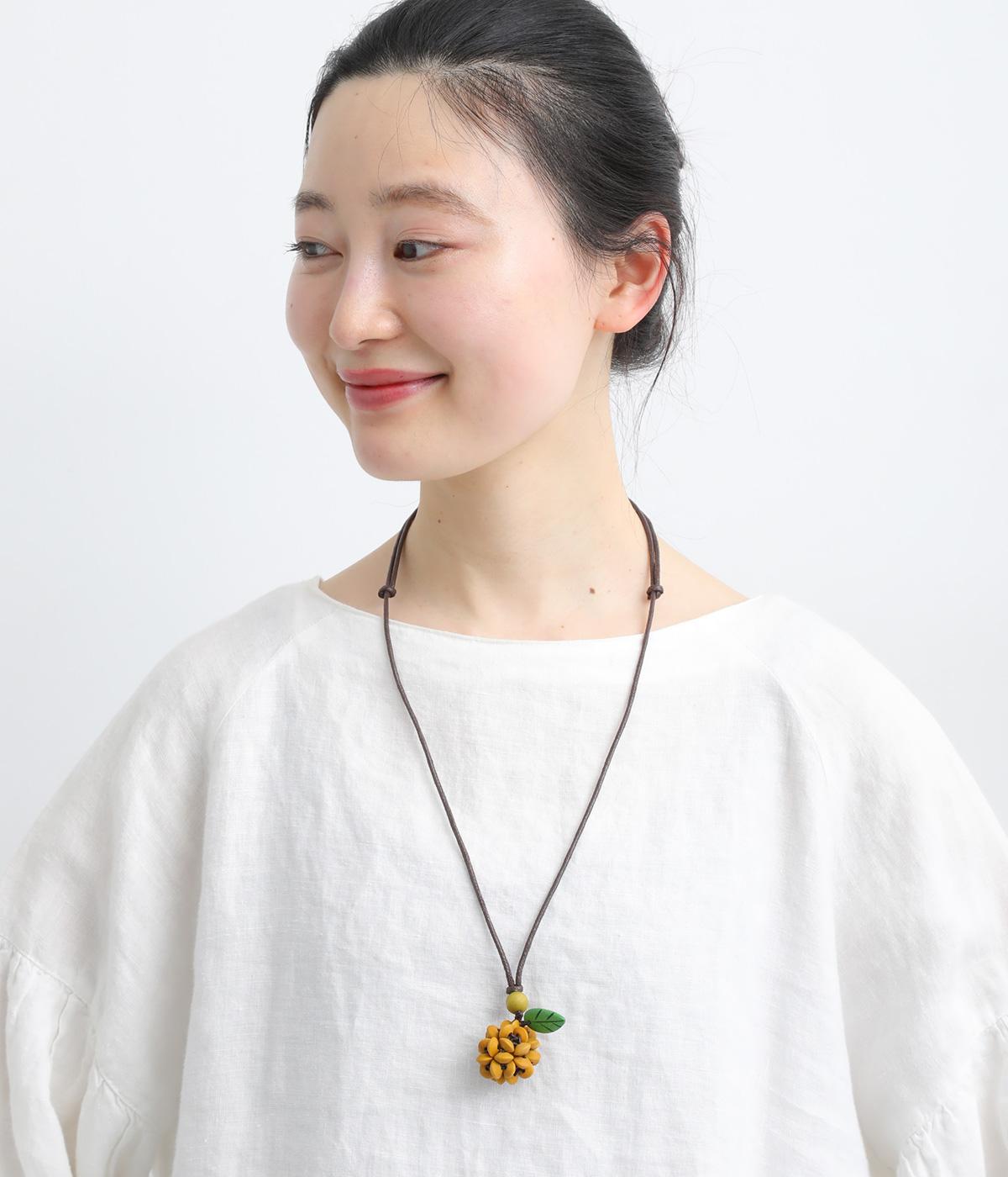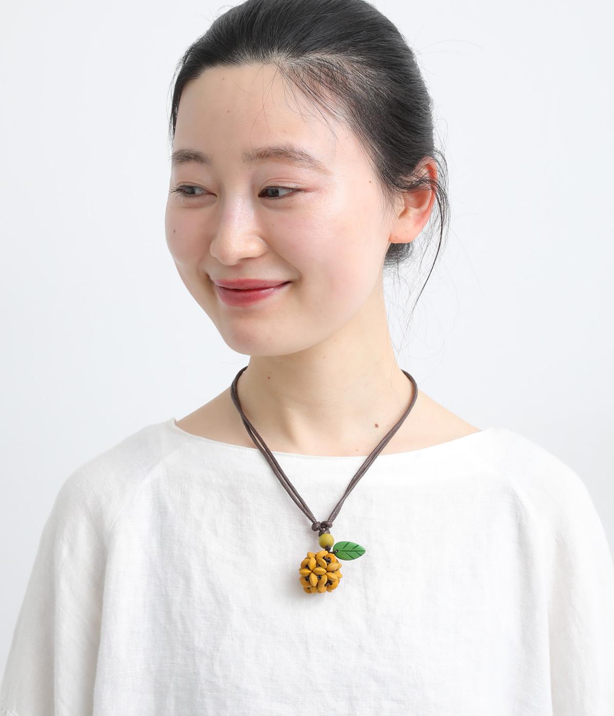 ウッドビーズでころんと立体的な果物を表現しました。 やさしい色合いでデイリースタイルに取り入れやすく、大人の装いにさり気なく遊び心をプラスします。結び目部分をスライドさせれば長さも自在に調整可能。