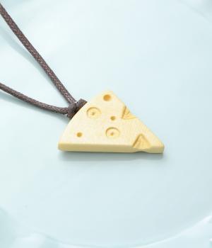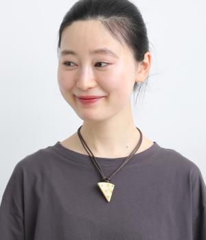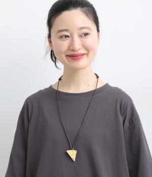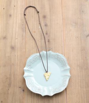 チーズアイがリアルに表現されたユニークなモチーフながら、すっきりしたトライアングル型でコーディネートにすんなりなじみます。シチュエーションに合わせたカフェテイストの装いにもぴったりで遊び心のあるネックレスです。