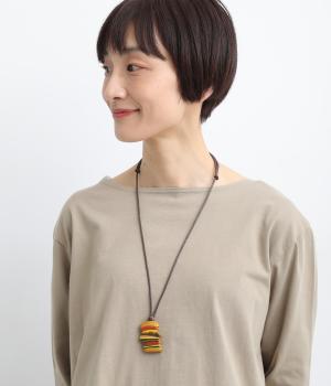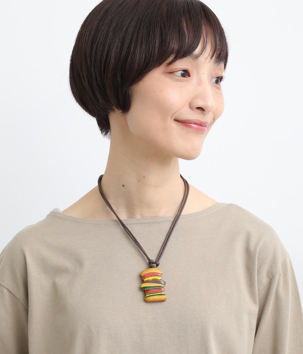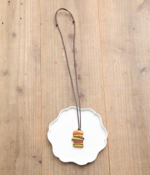 パティや野菜を何層にも重ねた食いしん坊なバーガーネックレス。ポップなモチーフがスタイリングのアクセントになりながらもすんなりなじむのもウッド素材の魅力。結び目をスライドさせて長さ調整も自在です。