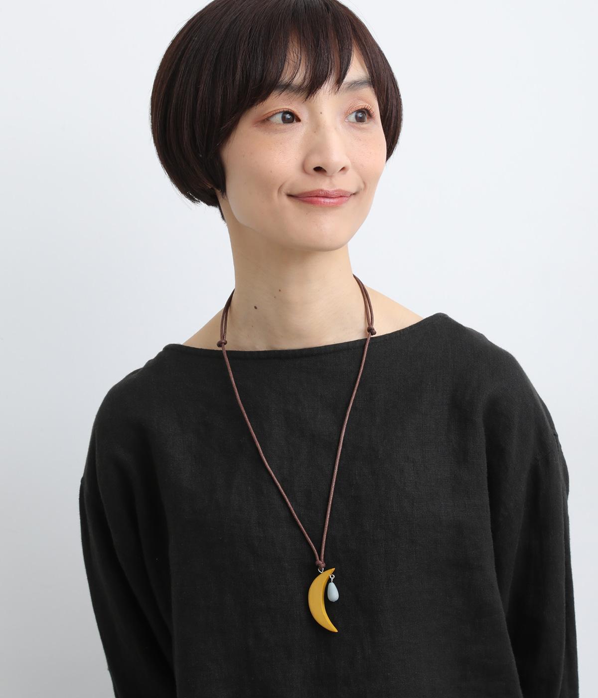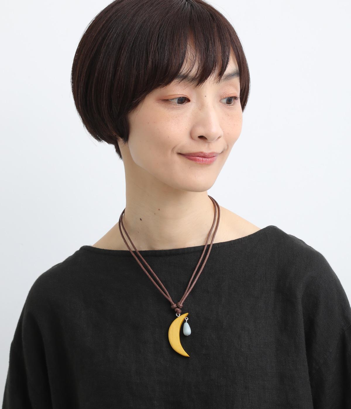 ウッドならではのぬくもりとハンドメイド感ある表情が魅力的。長時間身につけていても首に負担がかかりにくい軽量なつくりです。