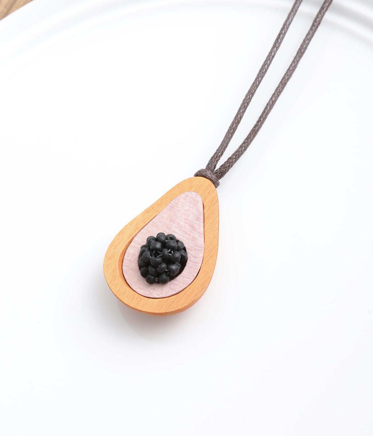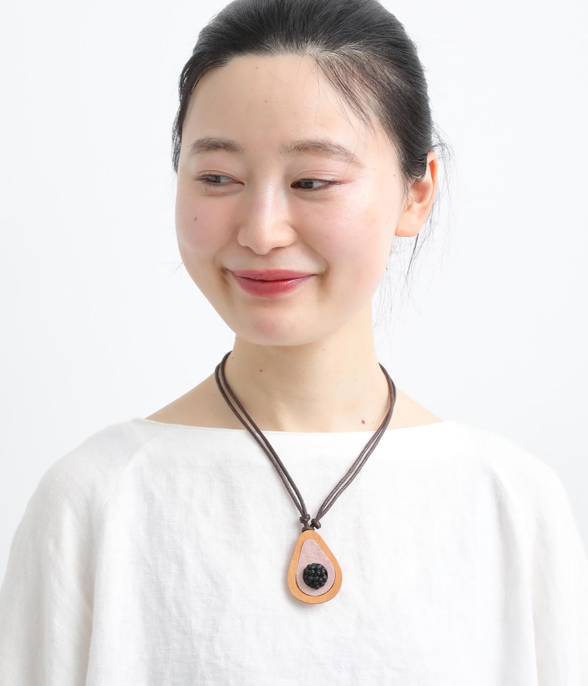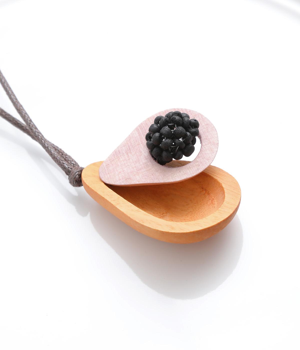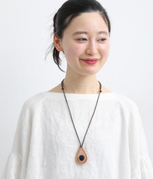 ウッドならではのぬくもりとハンドメイド感ある表情が魅力的。長時間身につけていても首に負担がかかりにくい軽量なつくりです。