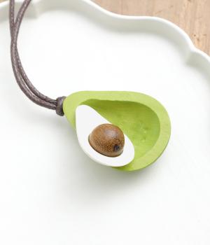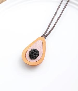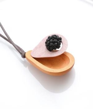 ユニークで立体的なモチーフながら、シンプルなフォルムでさり気なく身につけられるデザインに。実から皮をはがせるような遊び心の詰まったつくりも◎。フルーツならではの華やかさと木製のナチュラルさが調和しています。
