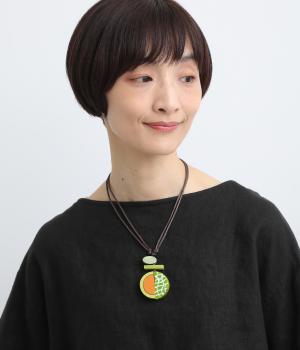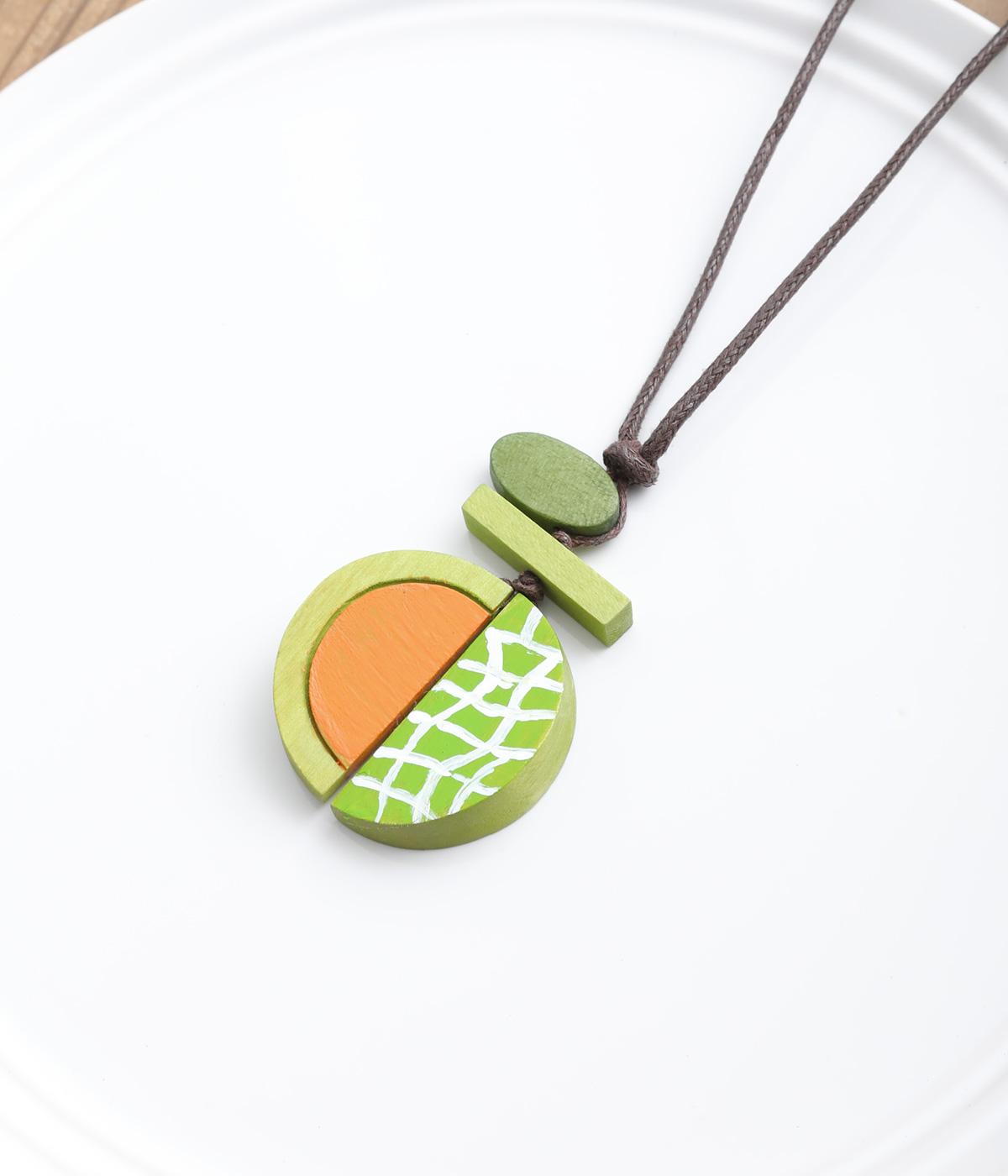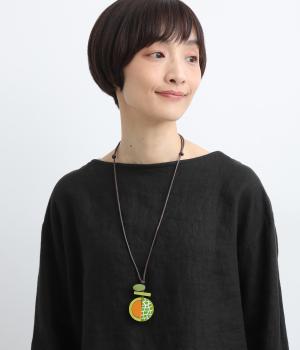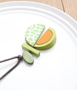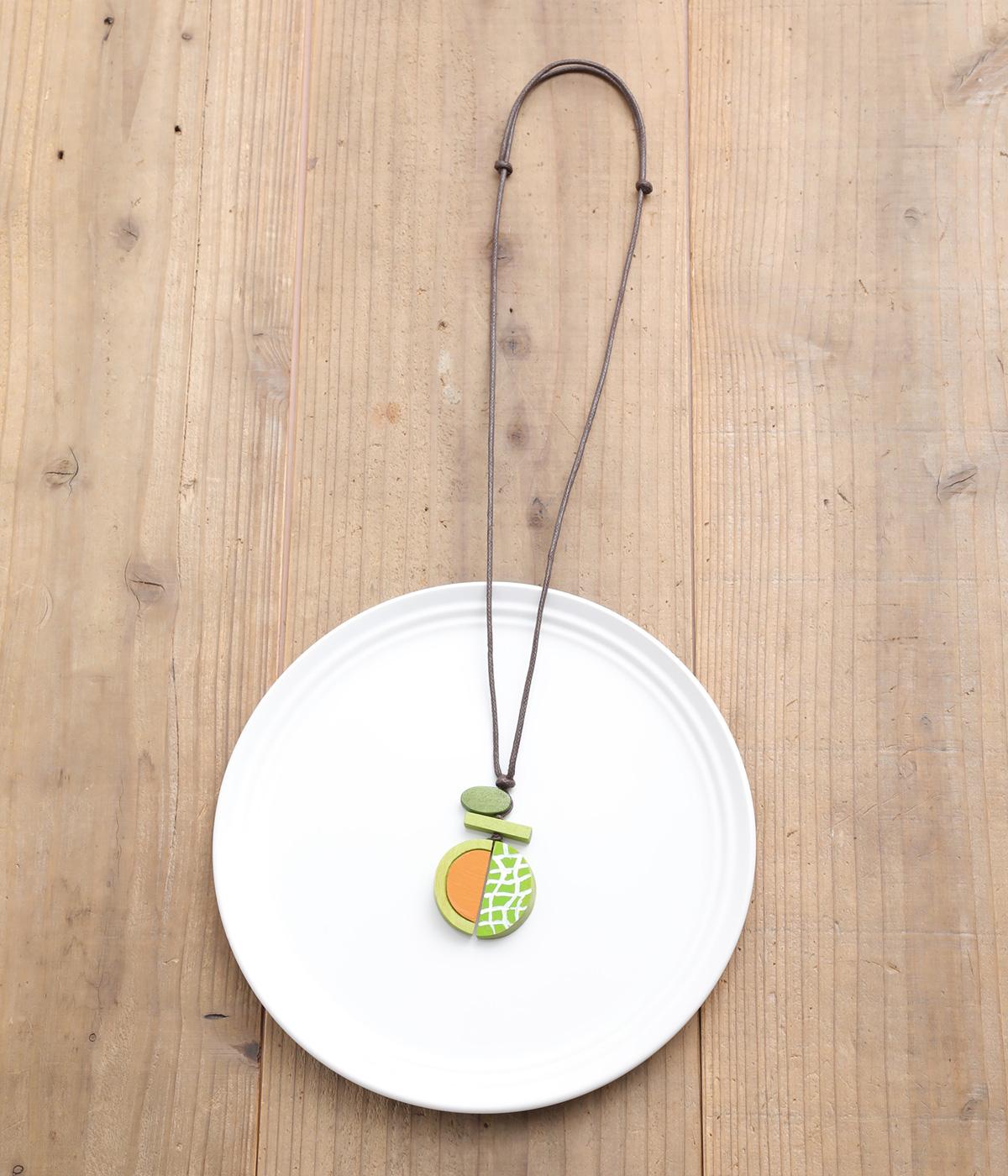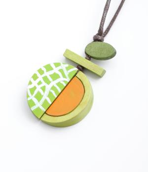 果物を象徴する皮のデザインとカット面、どちらも表現したユニークなモチーフ。ポップなカラーリングとウッドのナチュラル感が調和し、コーディネートに華やかなワンポイントを添えます。長さも自在に調整可能。