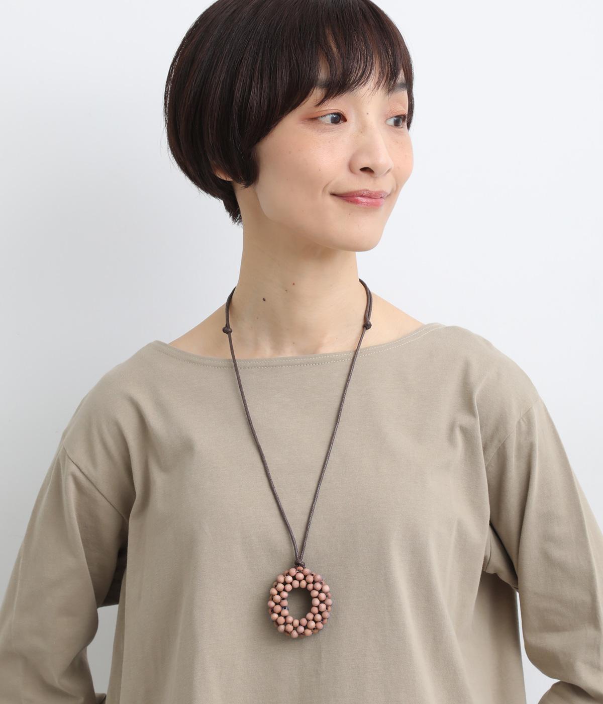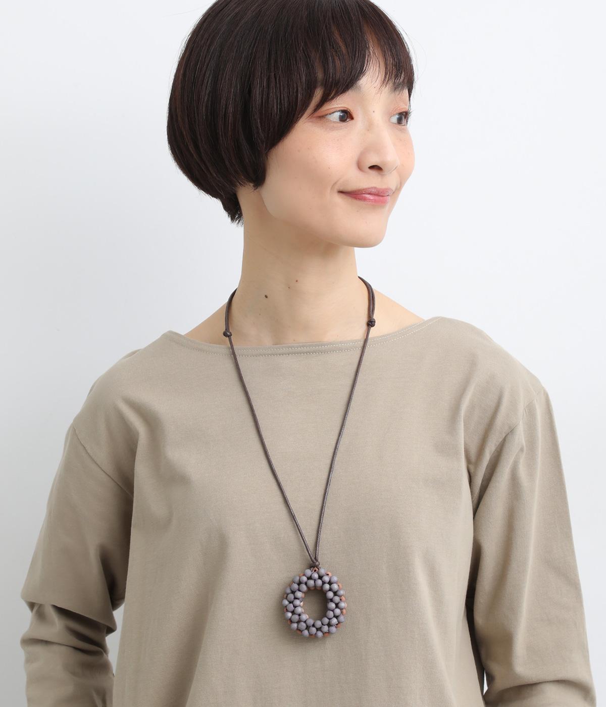 ウッドならではのぬくもりとハンドメイド感ある表情が魅力的。長時間身につけていても首に負担がかかりにくい軽量なつくりです。