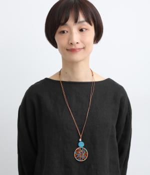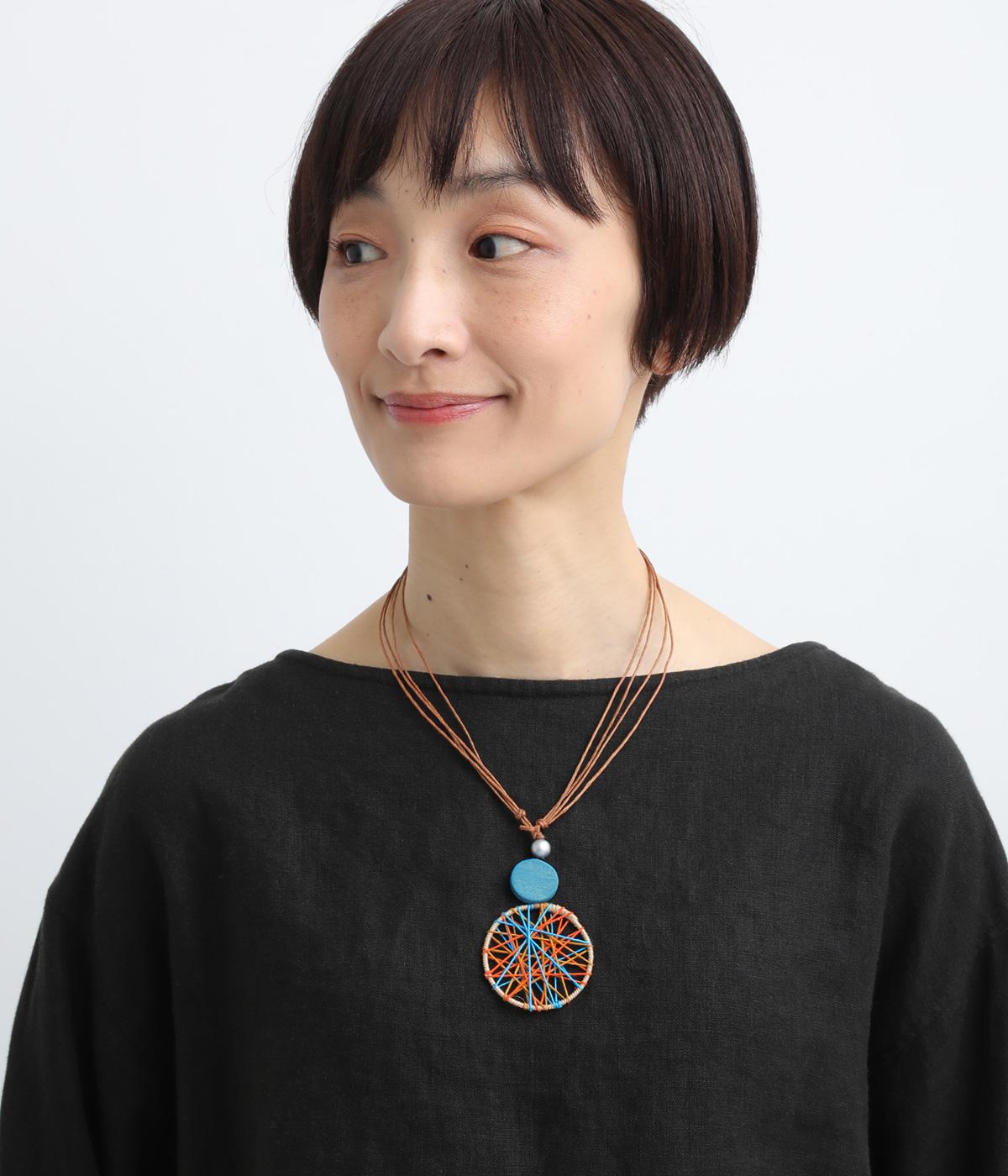 糸を丁寧にかけたウッドマーブルトップが存在感を放つネックレス。奥行きのあるつくりでシンプルながらもモダンで洗練された印象に。コーディネートのポイントになり、カジュアルスタイルからエスニックテイストまで◎。