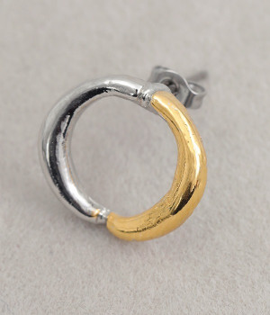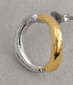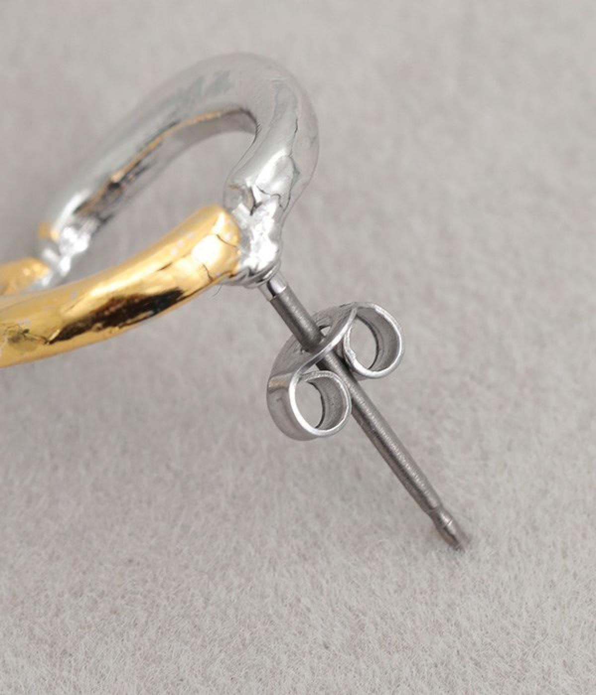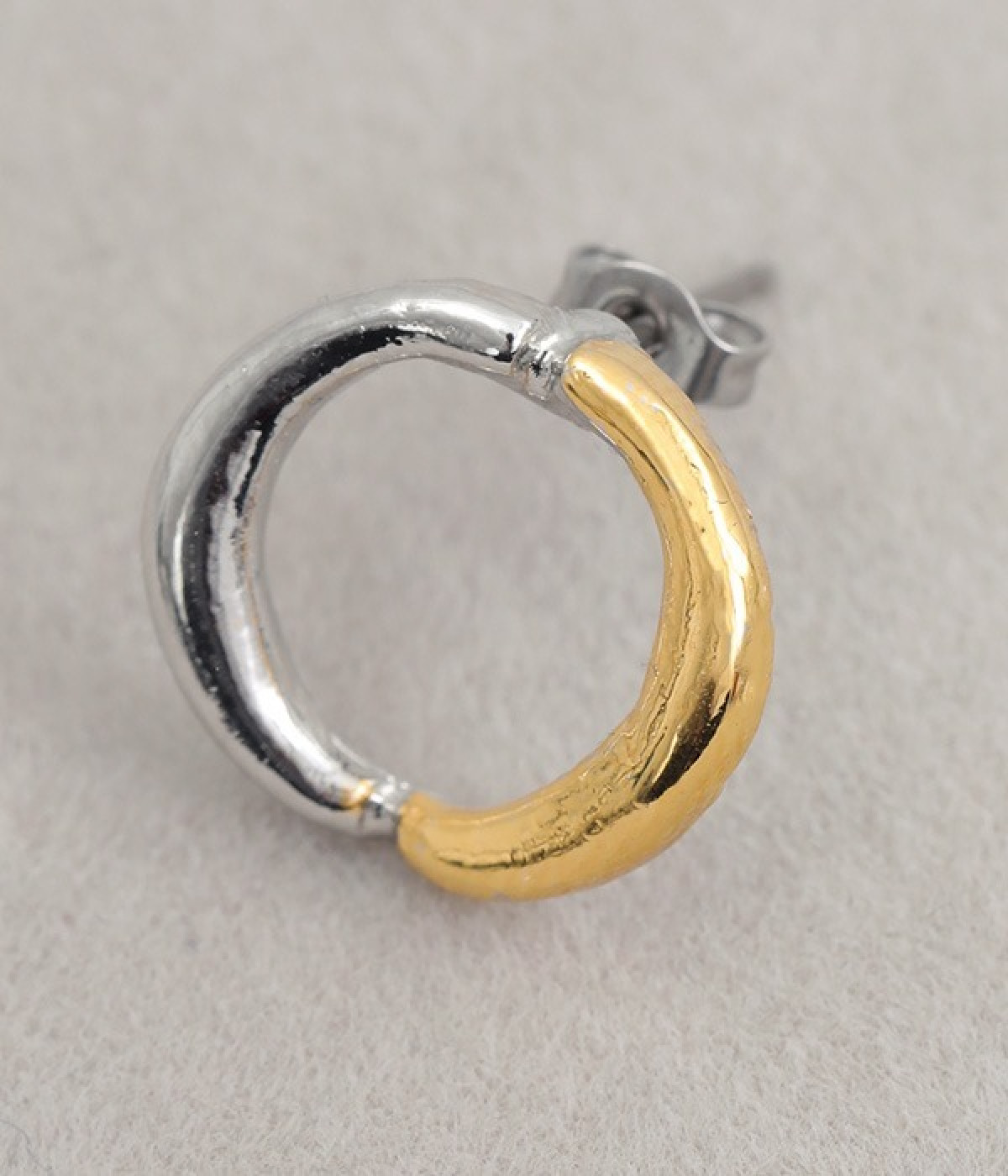 ゴールドとシルバーのコンビネーションが目を惹くメタルピアスです。やわらかなカーブを描く丸みのあるフォルムがさりげないニュアンスを与えてくれます。小ぶりなサイズでどんなコーディネートにも合わせやすく、大人のデイリーアクセサリーにぴったり。ポスト部分はチタン、キャッチはニッケルフリーを採用しています。