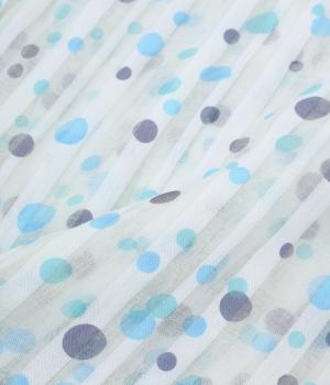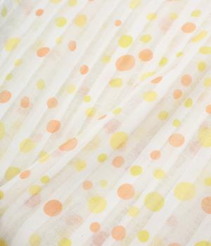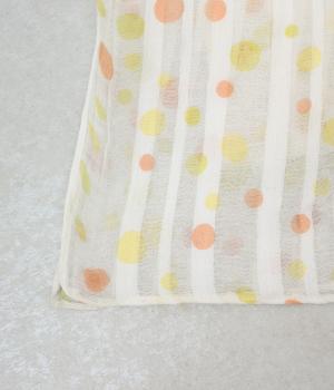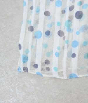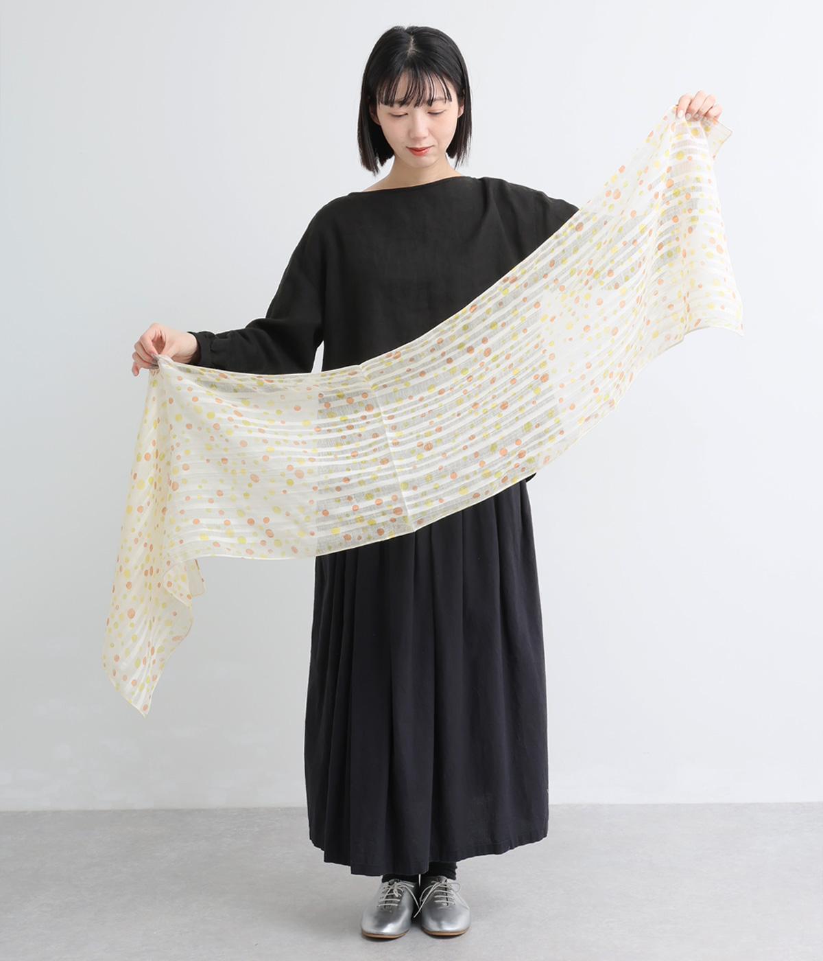 コットンにシルクをミックスした、やさしい肌ざわりの素材に、かわいらしいドット柄をのせました。透け感のある生地に、シワ加工をほどこし、軽やかで奥行きのある表情に仕上げました。