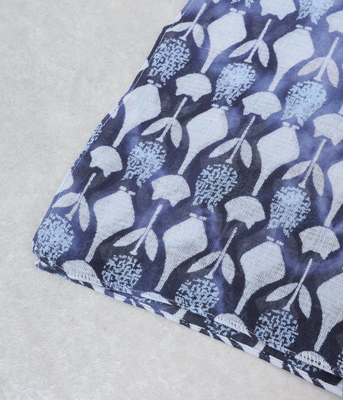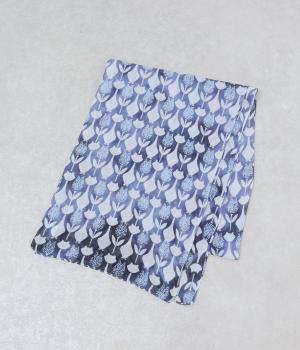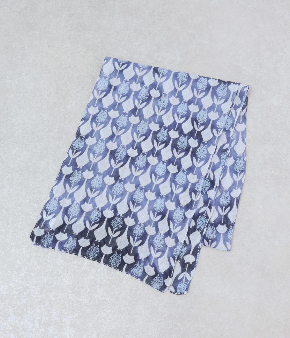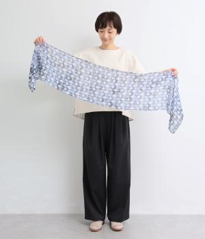 ネコ柄をミックスした幾何学模様デザインは、かすれたような味わいのあるタッチで、和柄を思わせる落ち着いた佇まいに仕上げました。さりげない個性で装いにニュアンスを添えます。すっきりしたサイズ感で、持ち運びにも便利です。