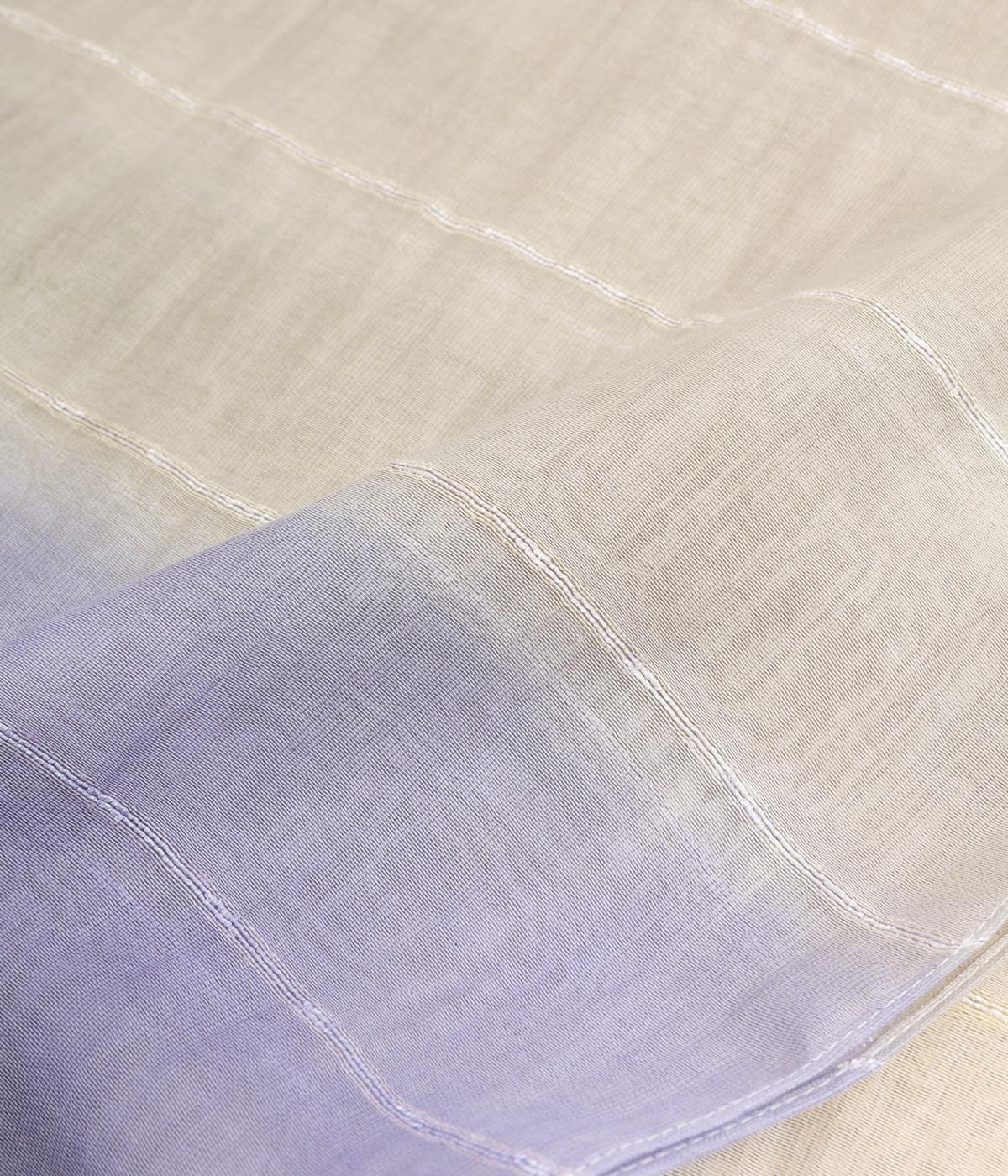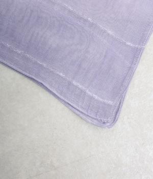 透け感の強い、ふわっと軽やかな素材です。織り込んだラインがほのかな光沢を放ち、上品な雰囲気を引き立てます。淡くやわらかな色合いで、 やさしい印象に仕上げました。
