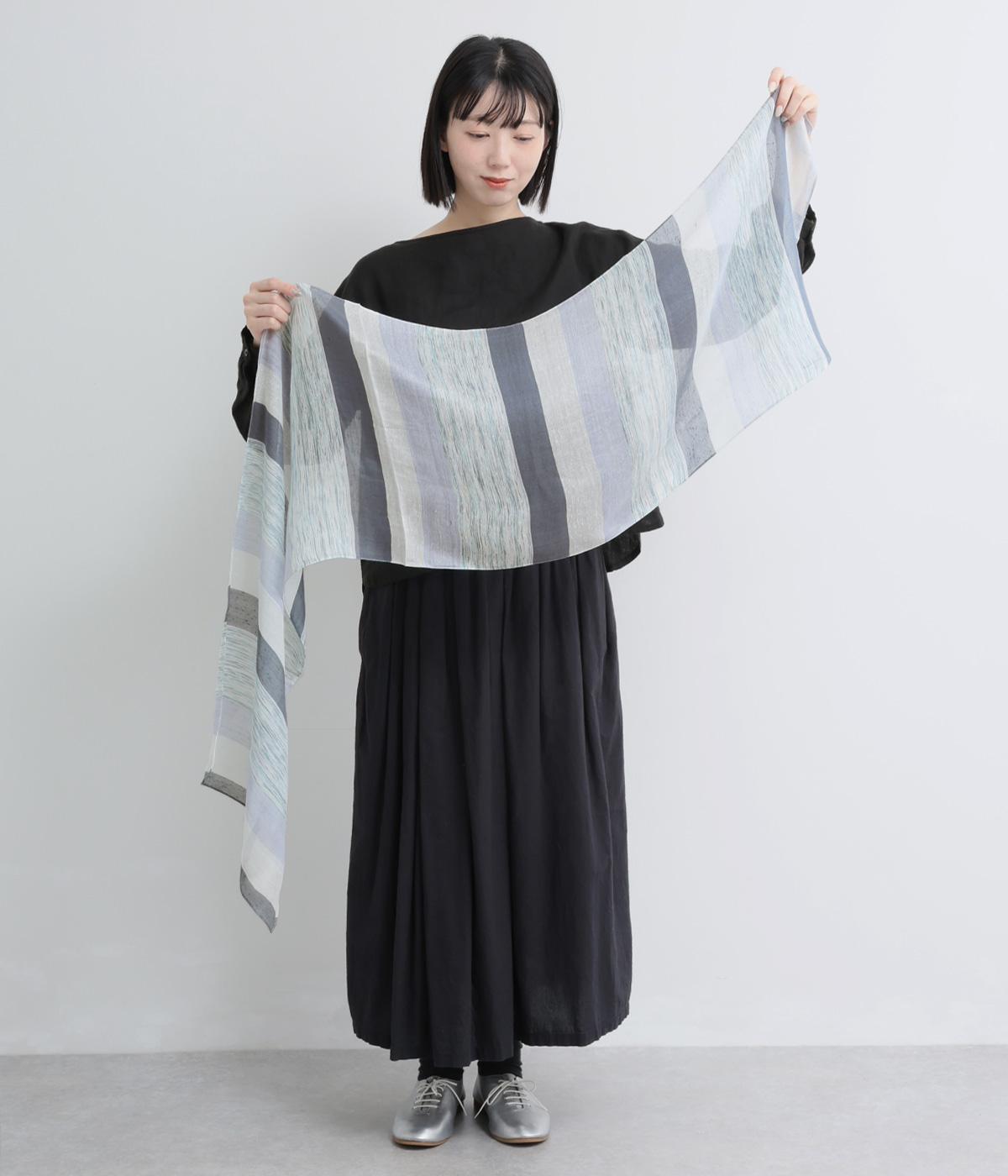 ボーダー織りショール(ブルー-F)