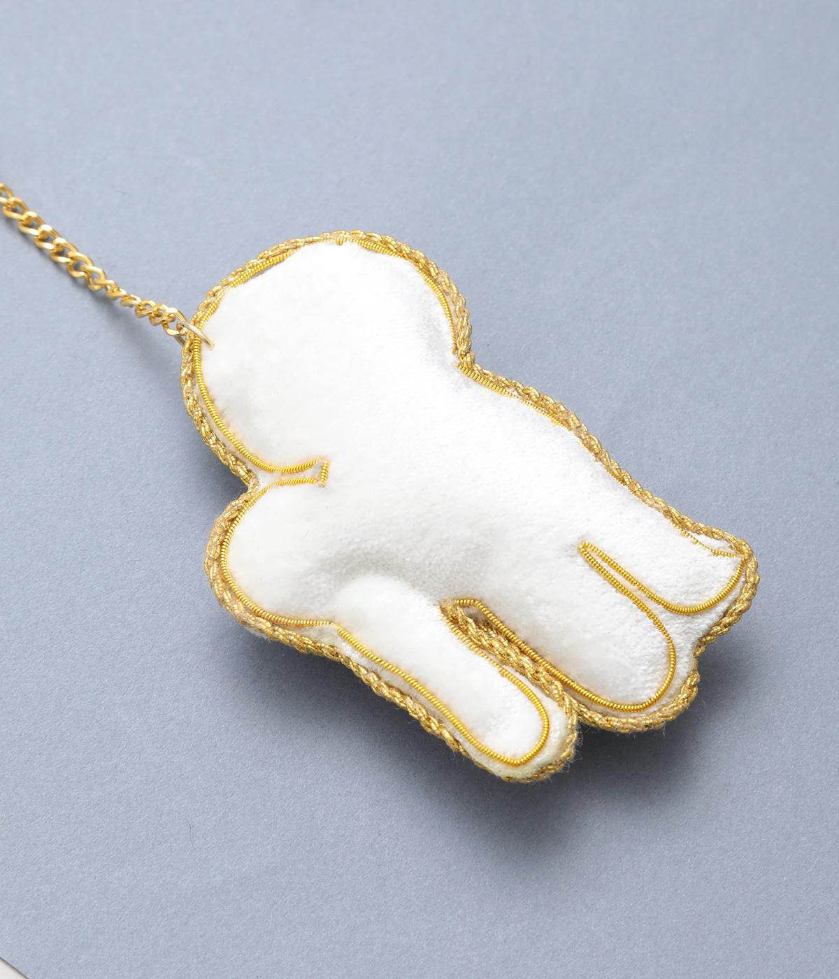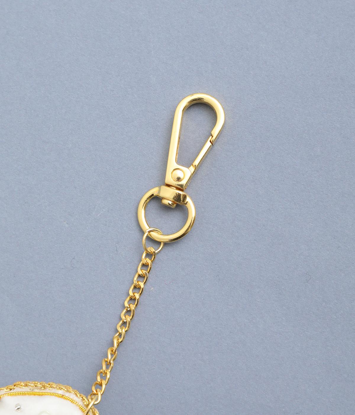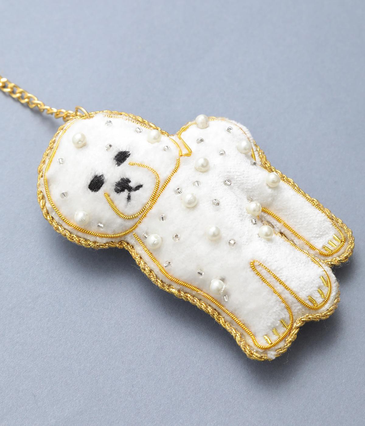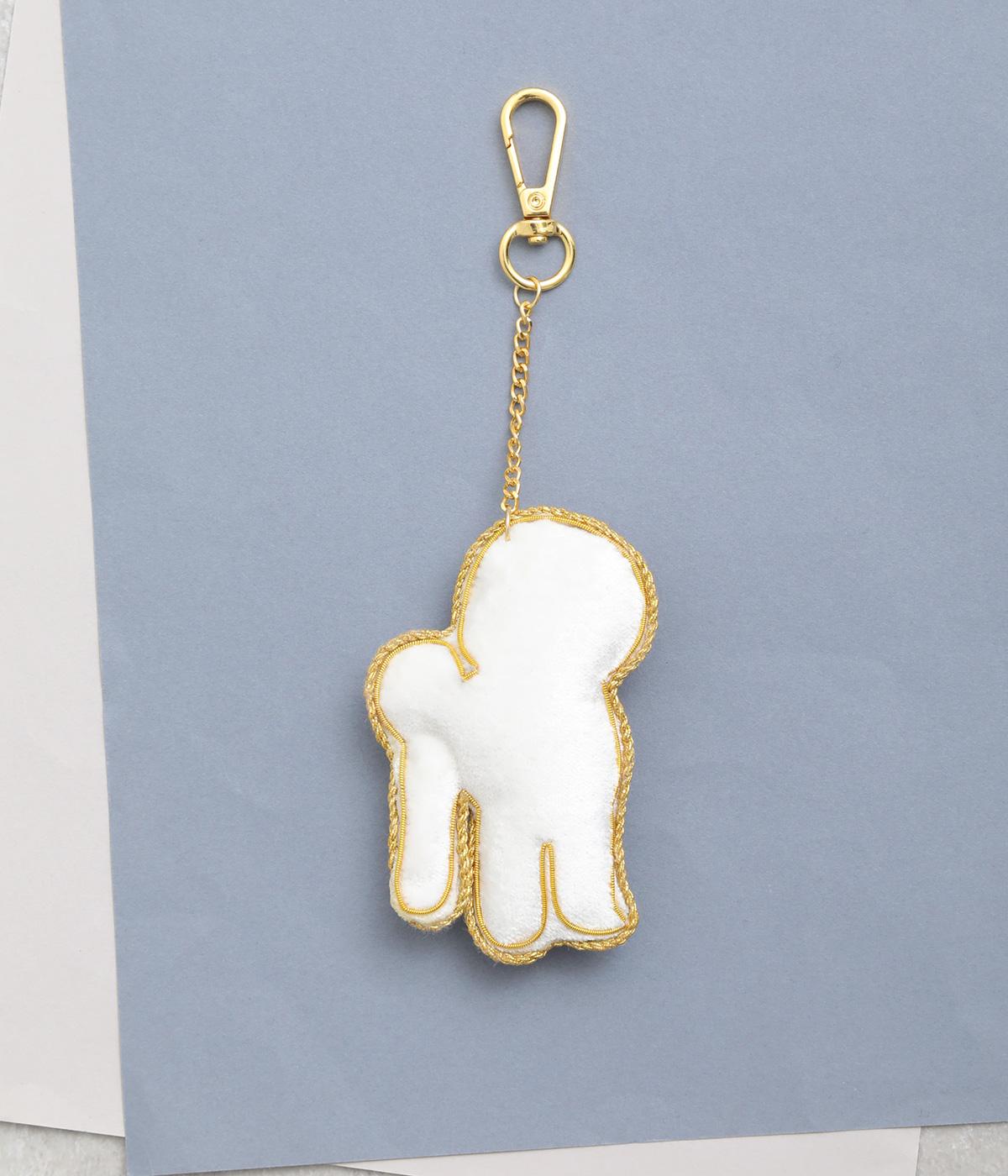 ビション・フリーゼの綿あめのようなふわふわした巻き毛を起毛感ある素材でリッチに表現。ゴールドステッチにパールやビーズで愛らしい表情も丁寧に描き、犬好きにたまらないキーホルダーに。バッグチャームにするのもおすすめ。