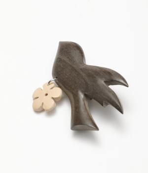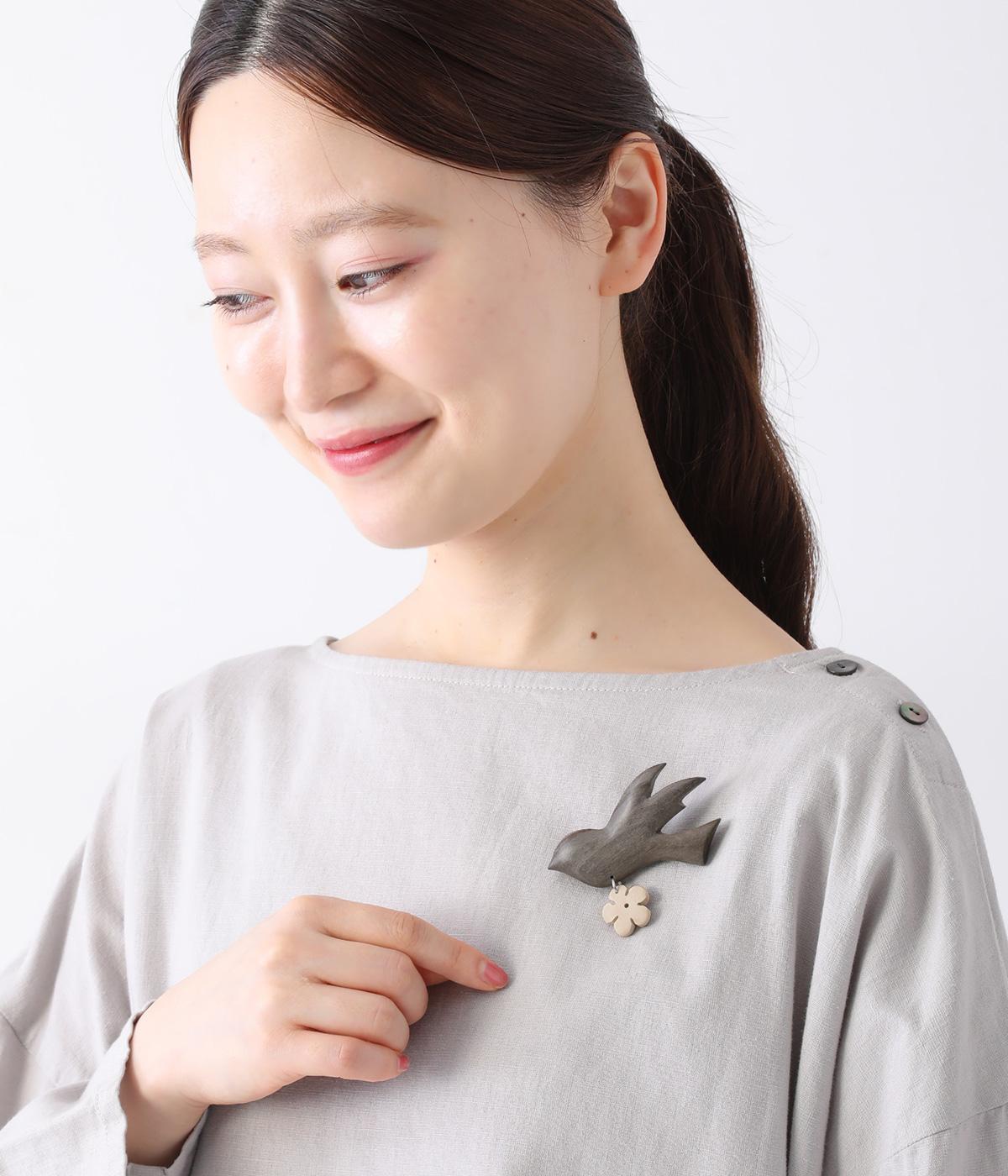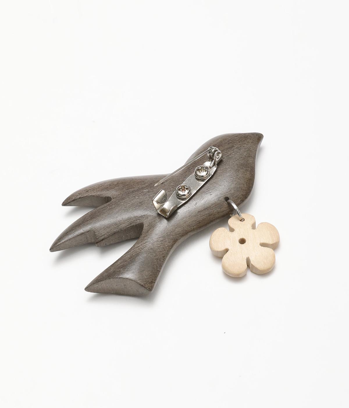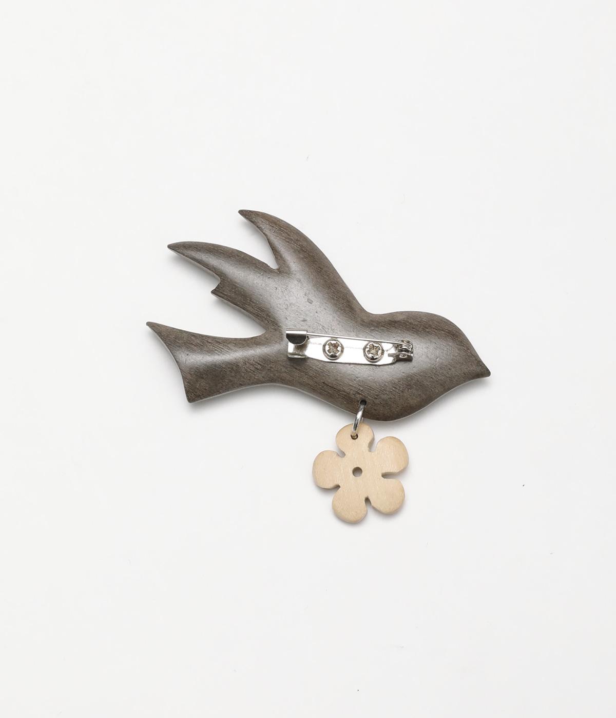 ウッド素材のバードモチーフに、ゆらゆらと揺れるお花モチーフをプラスしたブローチ。品の良さを感じさせる、滑らかな丸みとつややかな質感がグッドです。洋服にはもちろん、ストールやバッグなどの小物にもかわいらしいアクセントをプラスできます。