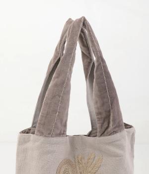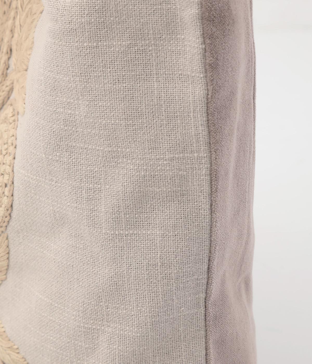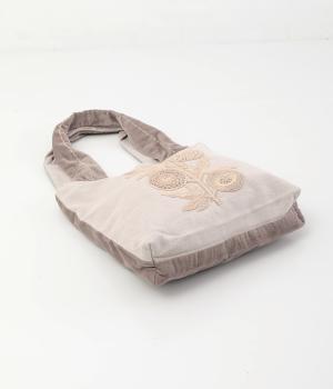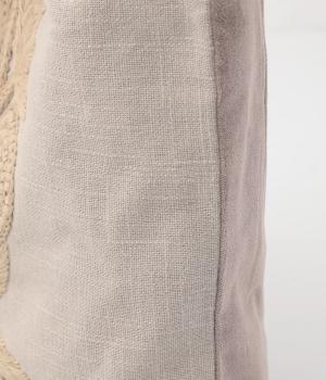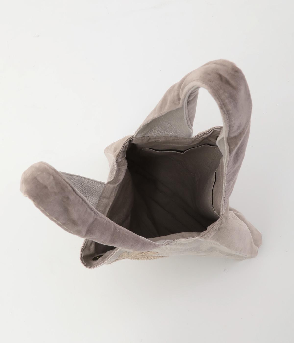 コットン糸を用いて甘く織られた、節の見えるナチュラルな風合いが魅力。背面には滑らかな肌触りの上品なベロア生地を使用しています。薄手のコットンの裏地つきです。