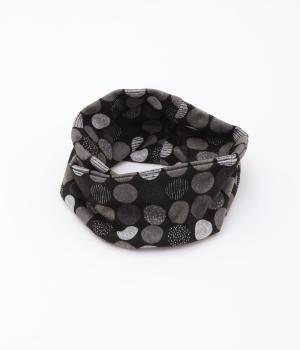 カシュクール風にクロスさせたようなひねりデザインが特徴的。共布の二枚仕立てで、無造作にかぶってもしっかりと模様がたのしめる仕様になっています。ひねりを加えることで抜けが生まれ、ボリューム感を出しつつ息苦しくない着用感が◎。