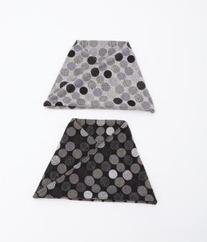 ポリエステルをベースにした、あたたかみのある表情と軽やかさが魅力的な混紡生地をセレクト。ドットやストライプなど様々な模様の入ったドット柄が特徴的で、モノトーンで大人ガーリーにまとめました。