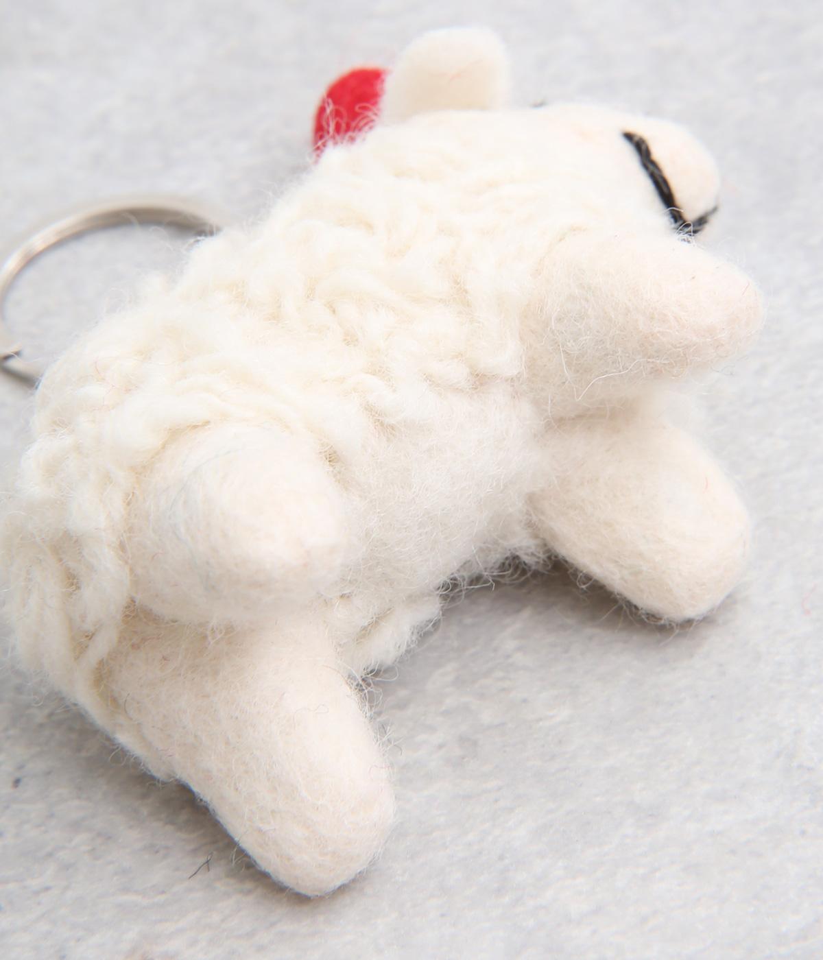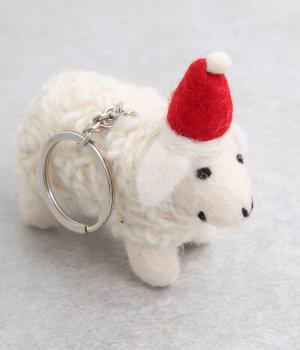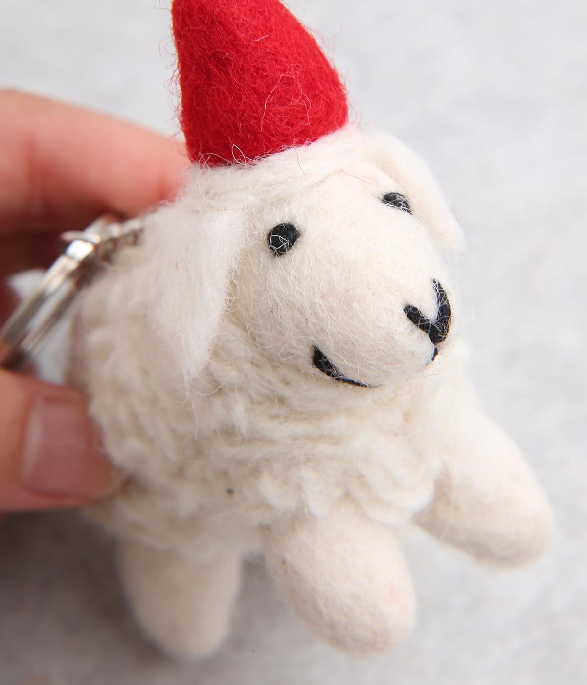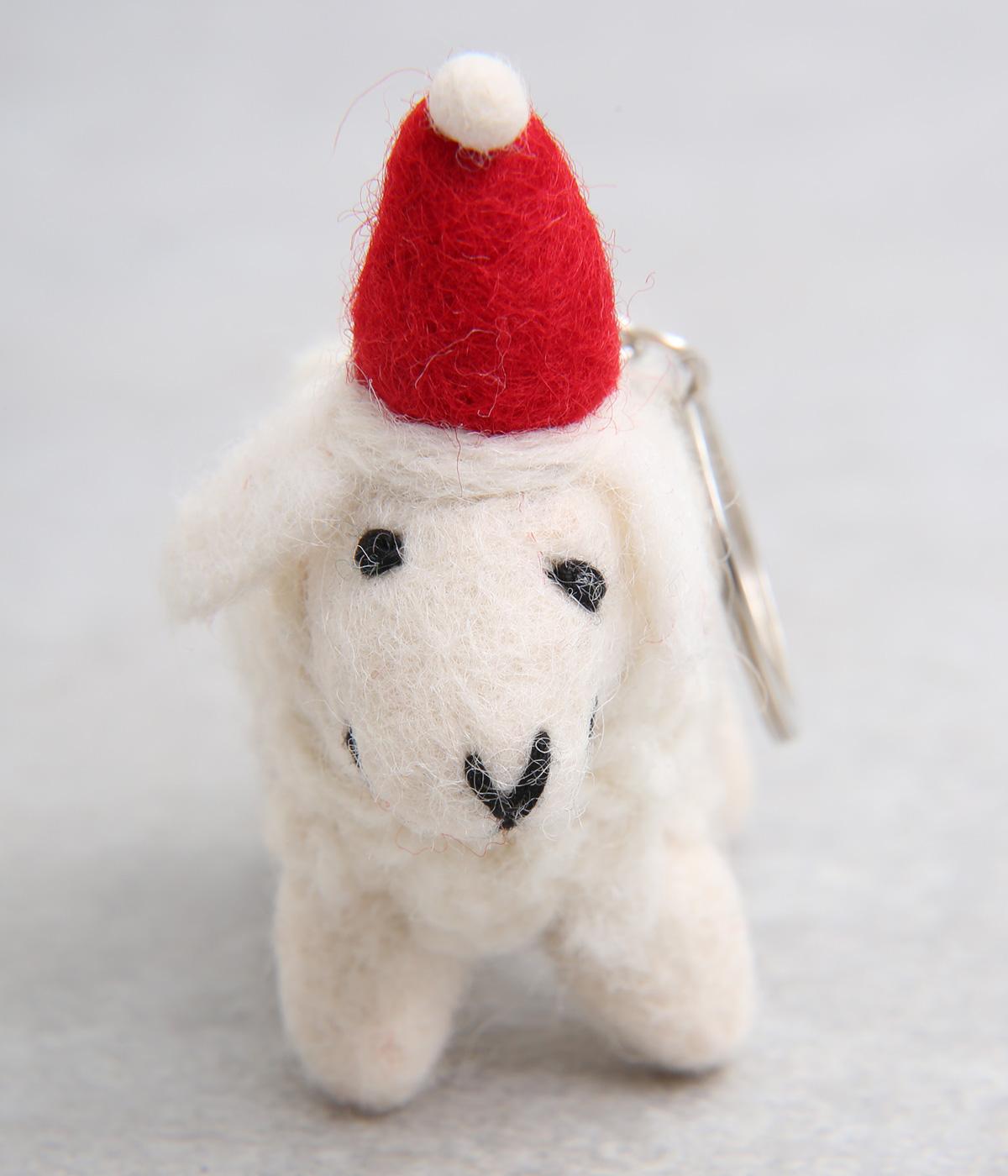 ハンドメイドで1点1点表情が違う、フェルト素材でつくられたハンドメイドのキーホルダーです。ひとつひとつ微妙に違う表情は手作りならではの味わい。サンタ帽をかぶったヒツジがかわいらしく、優しげな表情がほんわかと心を和ませてくれます。