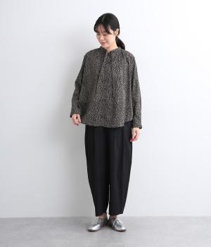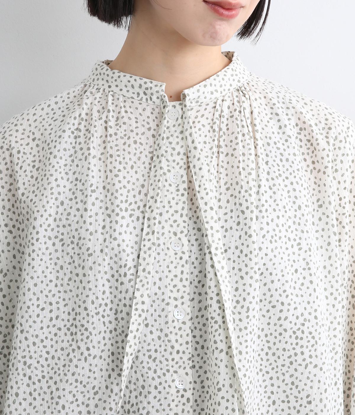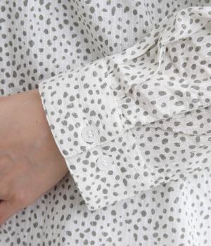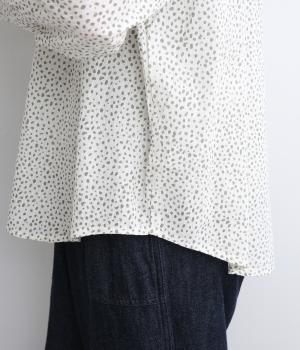 レオパード調の不規則なドット柄をコットンドビーにハンドスクリーンでプリントしたシリーズです。ドビー生地は自然な凹凸が出て肌にもまとわりつきにくく、吸水性にも優れていて着心地も快適。