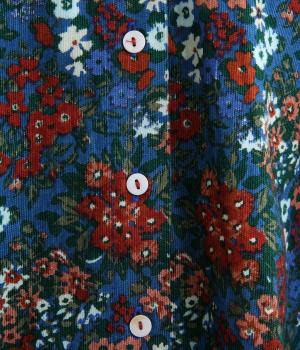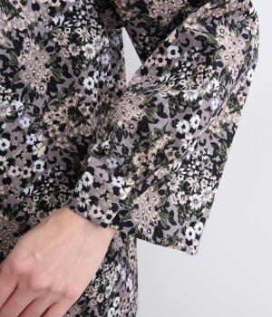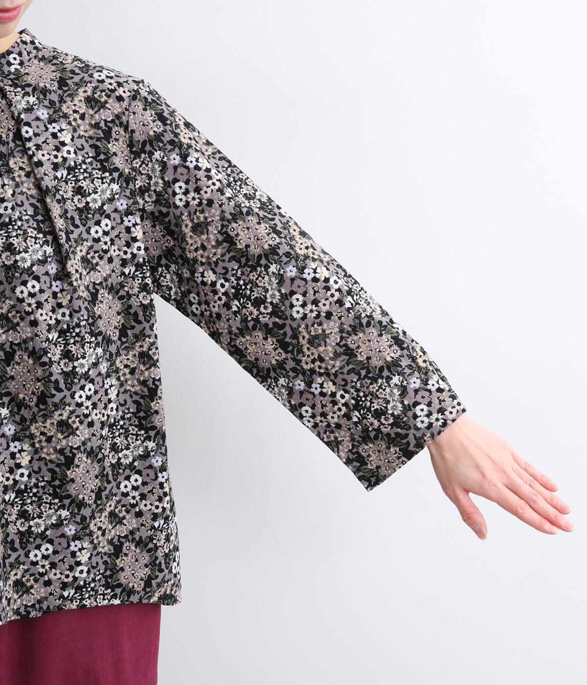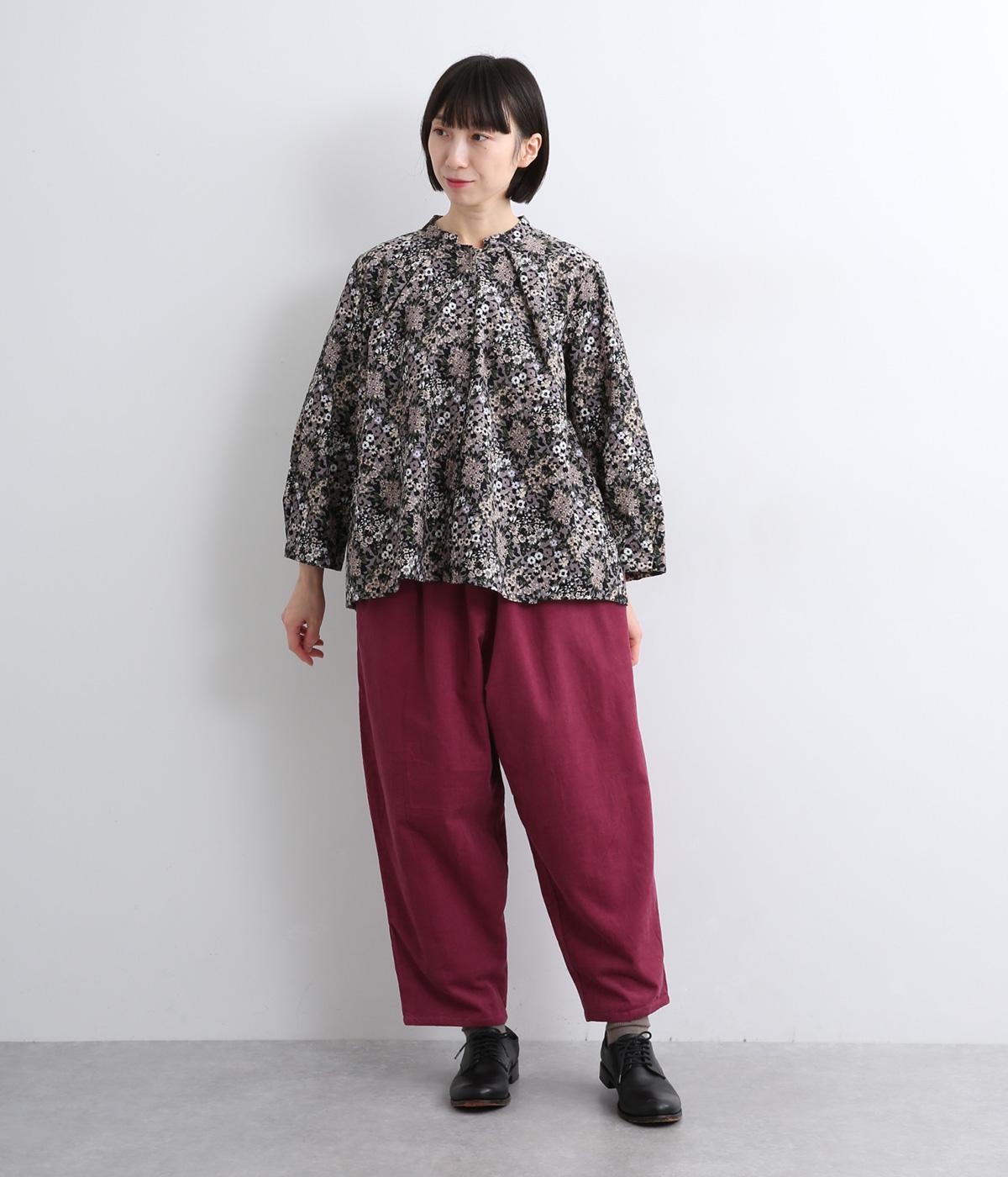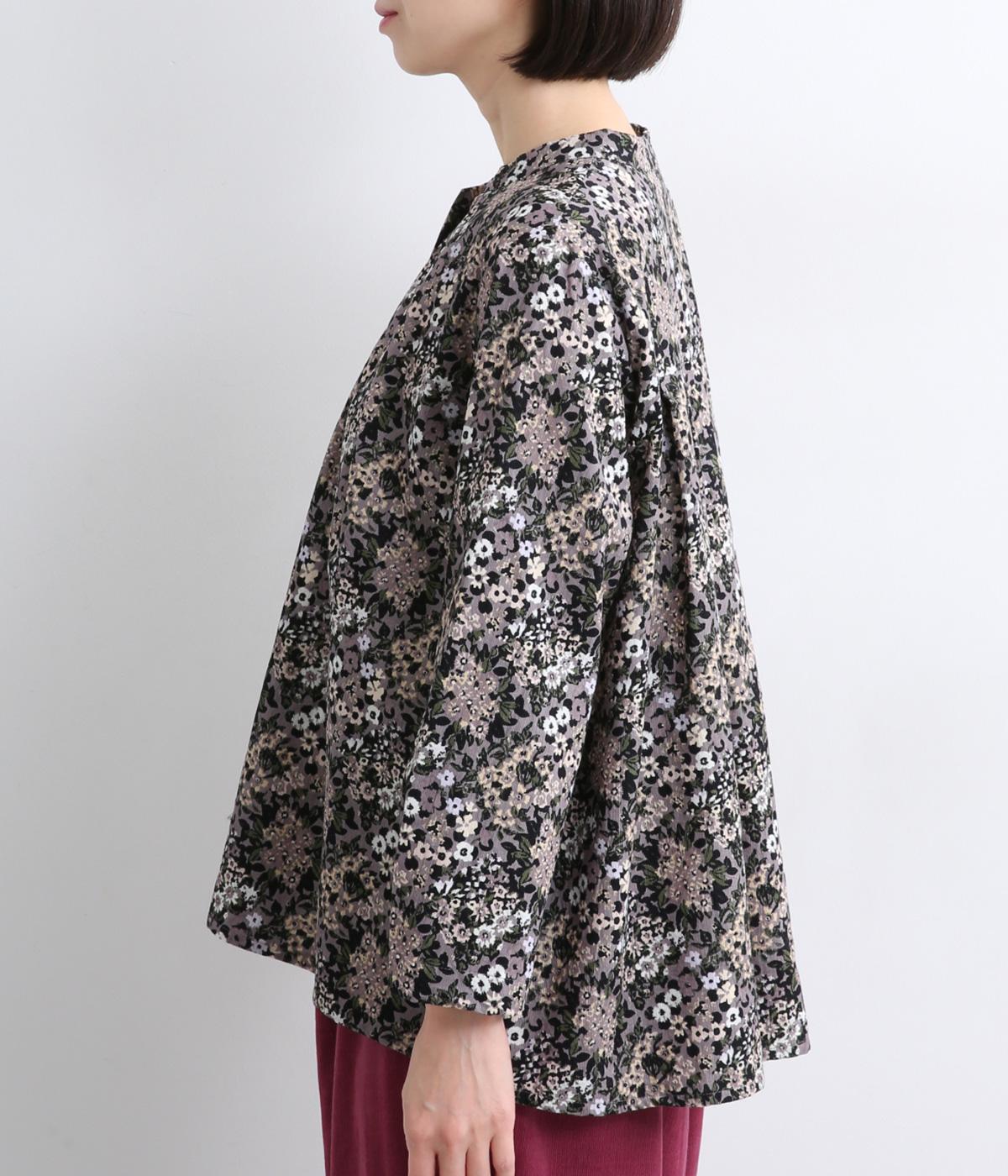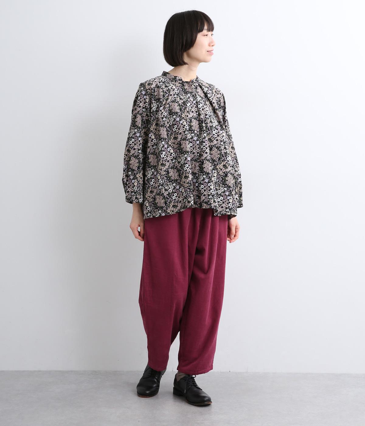 小花のブーケ柄を散りばめた、可憐な雰囲気のブラウスです。首元と袖口に入れたタックがふんわりと丸みをつくり、やさしい立体感を生み出します。ゆったりとしたシルエットで、重ね着しやすいのもうれしいポイント。薄手のタートルネックなどをインすれば、季節感のあるコーディネートが完成します。