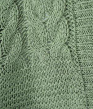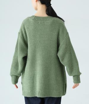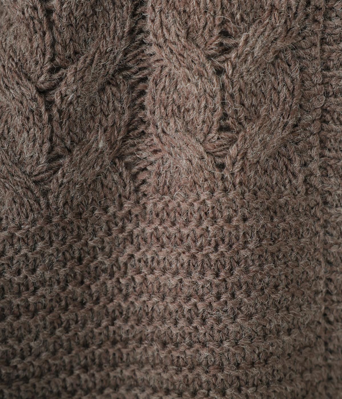 ウール混の糸を使用してざっくりと編み上げた、軽くてあたたかなニット生地です。パッチワークのようにさまざまな編み模様を取り入れて表情豊かに仕上げました。