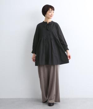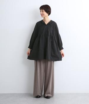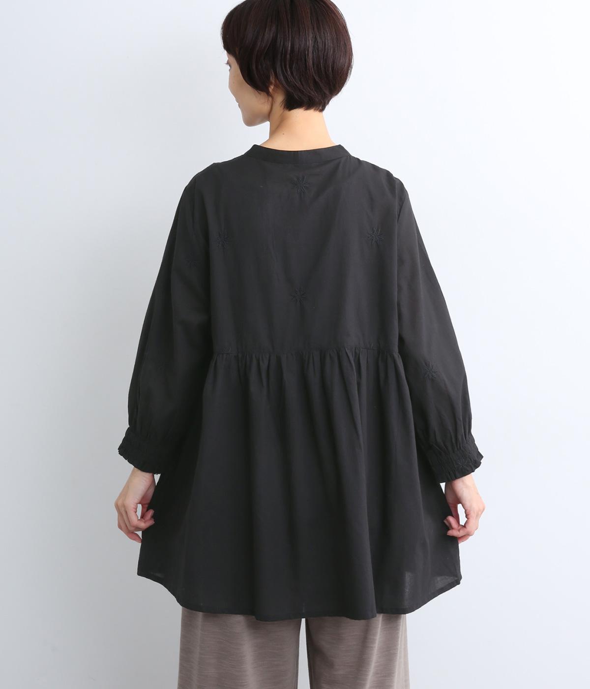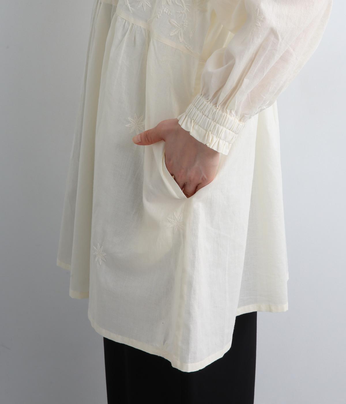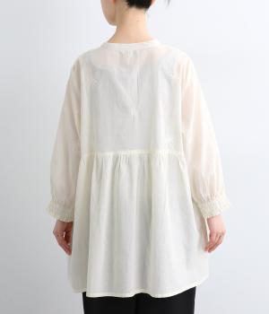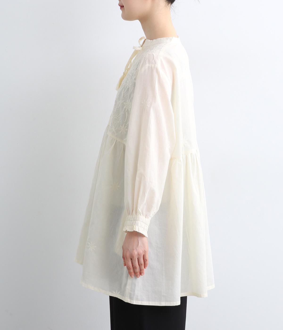 デイリーに着まわしやすいよう、フラワー刺しゅうをベースと同色の糸で仕上げたコットンチュニック。前後ヨーク下の細かなギャザーから広がるふんわりとしたシルエットが素敵です。お尻まですっぽりと隠れる着丈が気になる体のラインをカバーしてくれます。