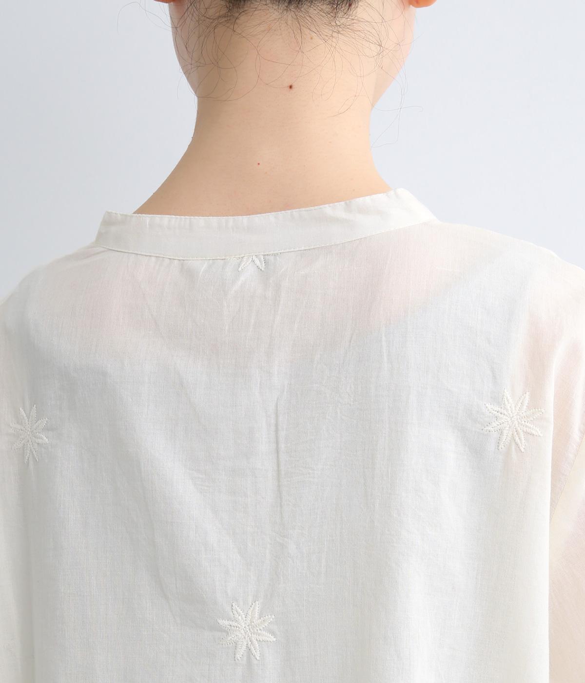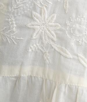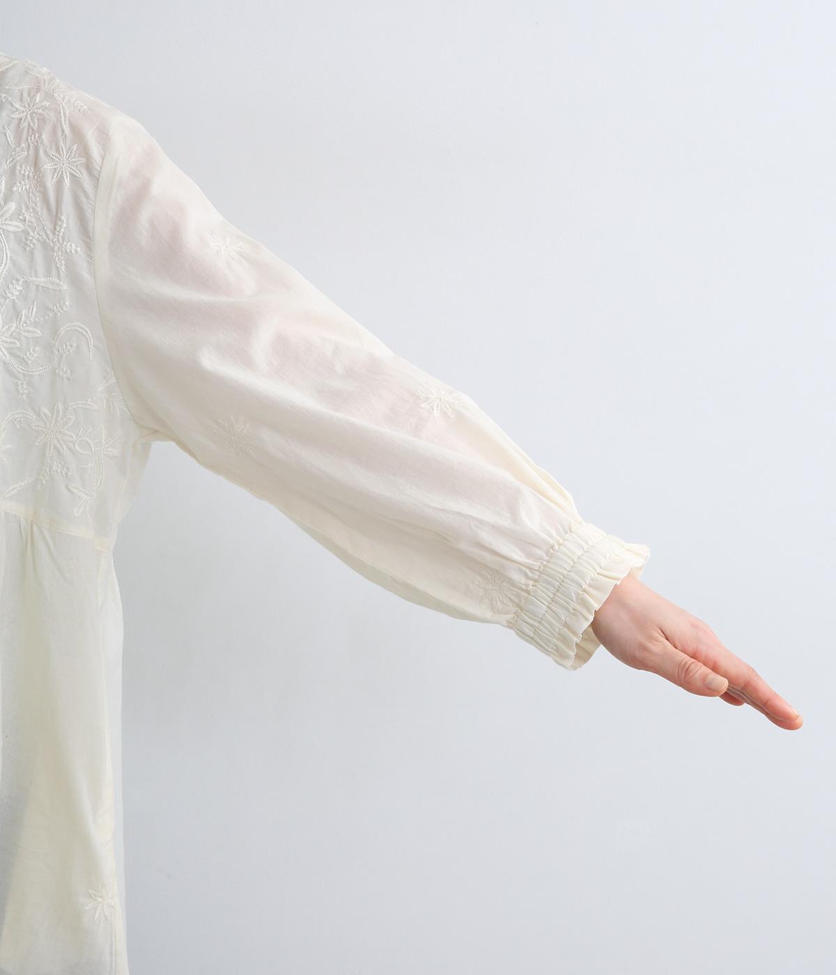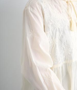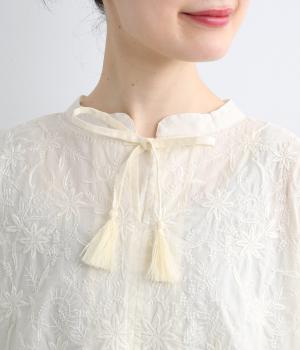 軽やかで通気性がよく、さらりとした心地よい肌触りのコットン生地。インドのラクノウ地方に古来から伝わる立体的で美しい手刺しゅうを、機械刺しゅうで再現しました。