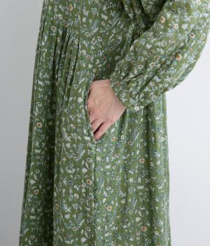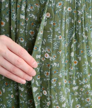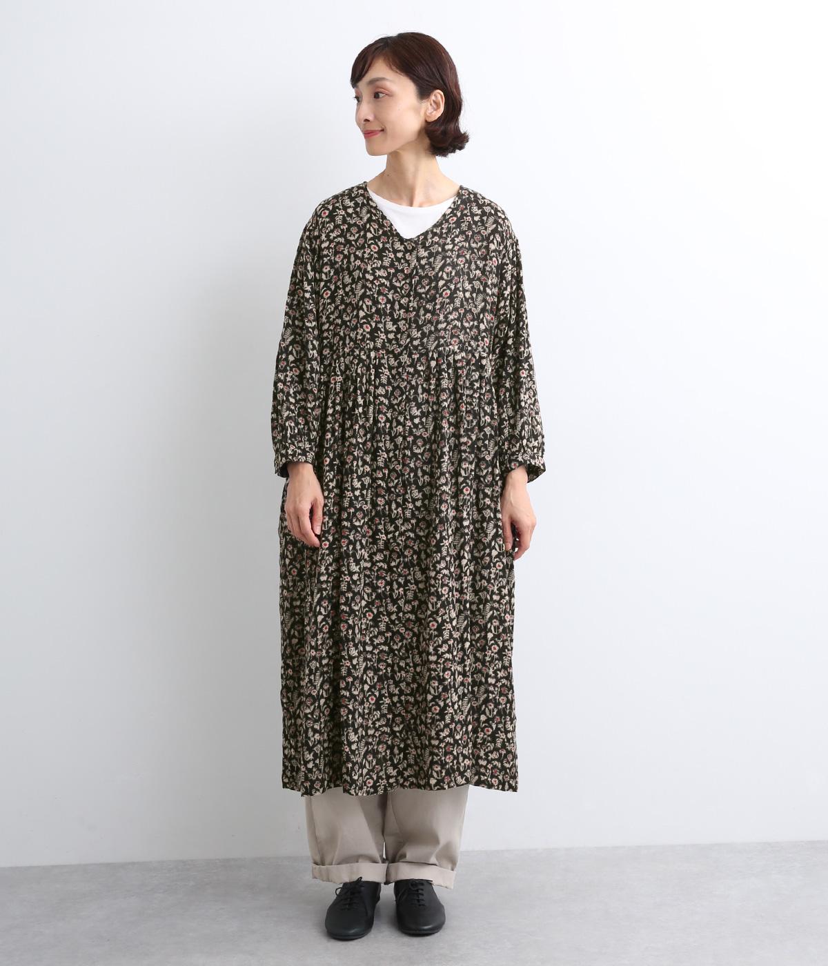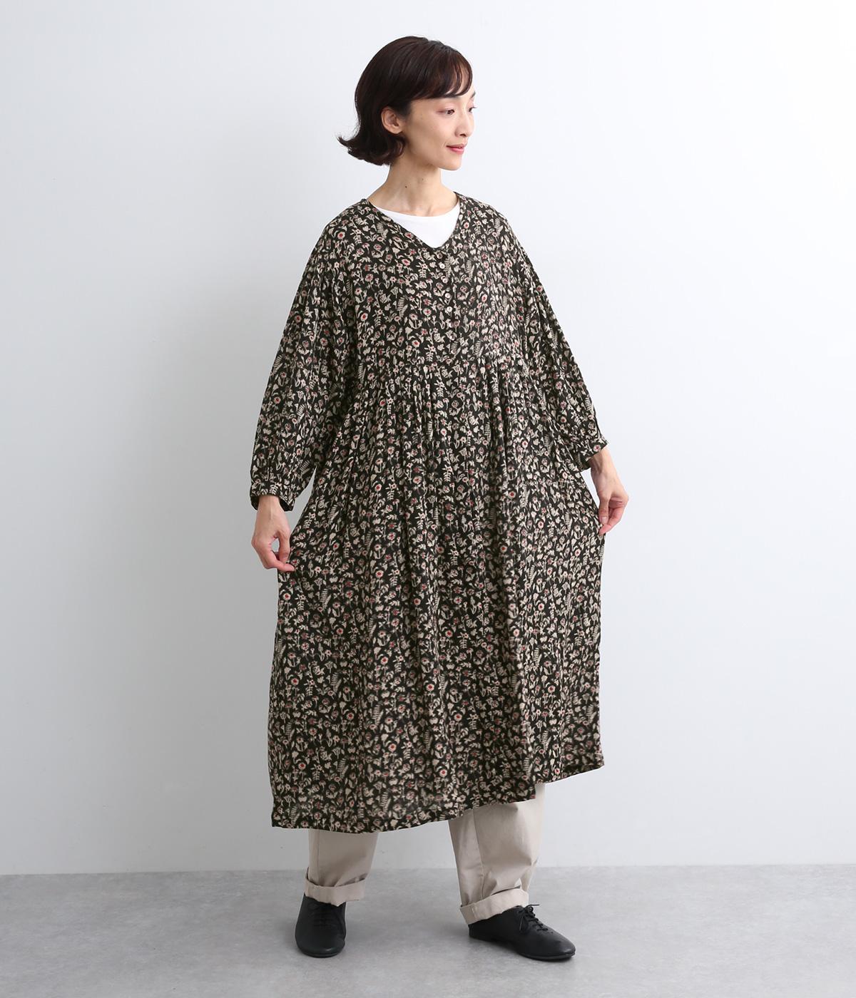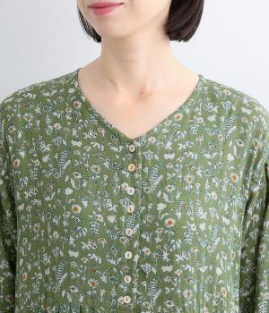 ふんわりとした袖に落ち着きのあるボタニカルプリントで着映え力を高めました。切り替え下は比翼仕立てになっているので、前をあけて羽織りスタイルもたのしめます。ゆるめのVネックで顔まわりの抜け感も◎。ボトム合わせもおすすめな丈感です。