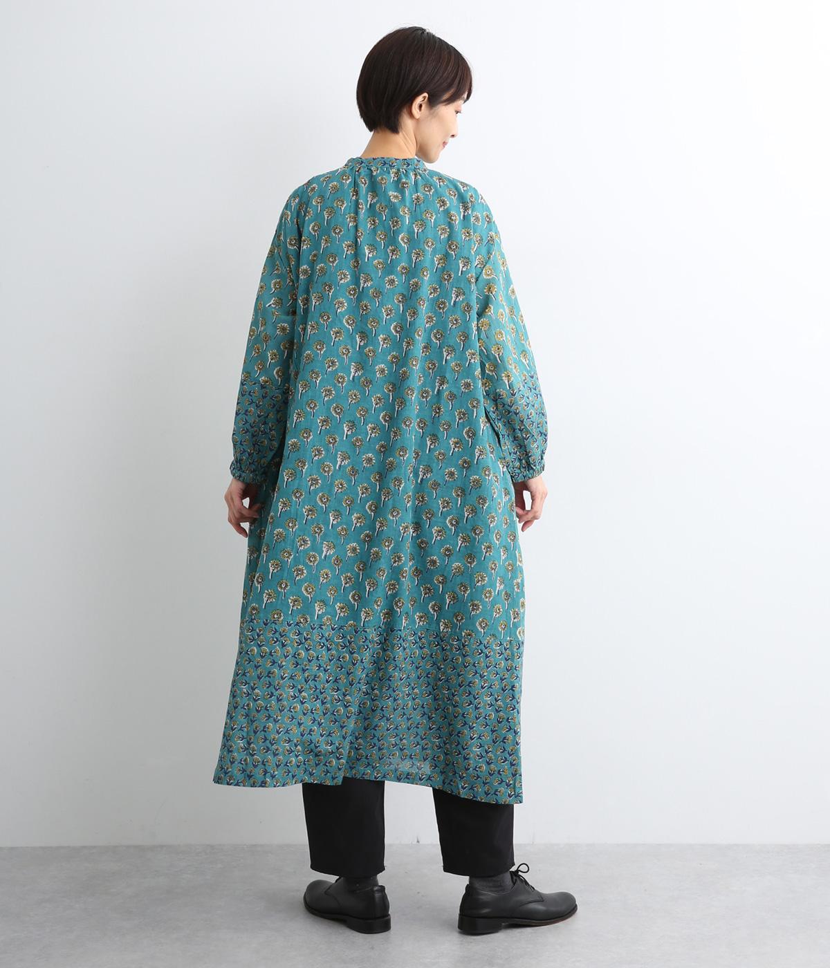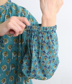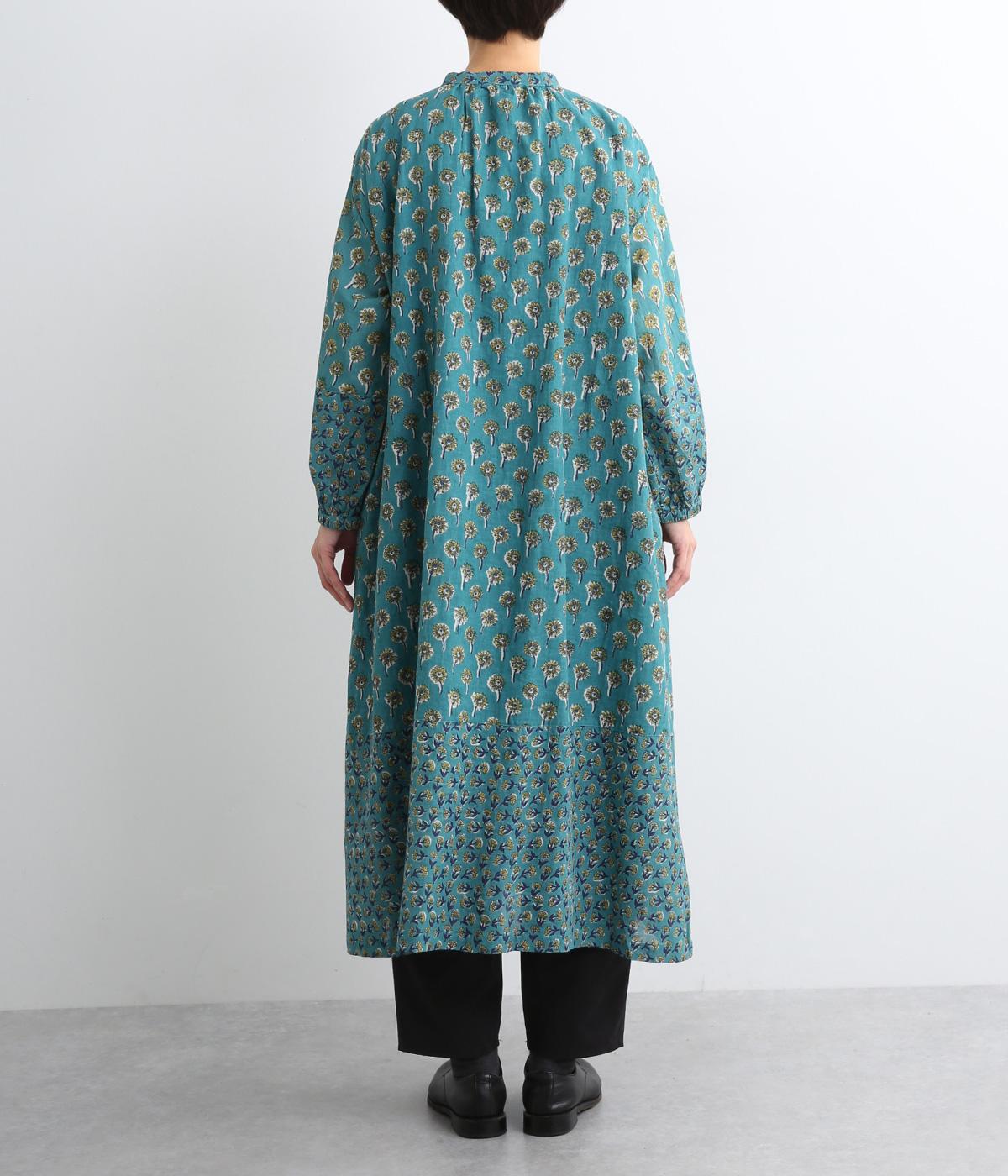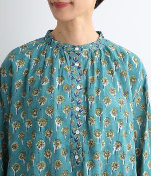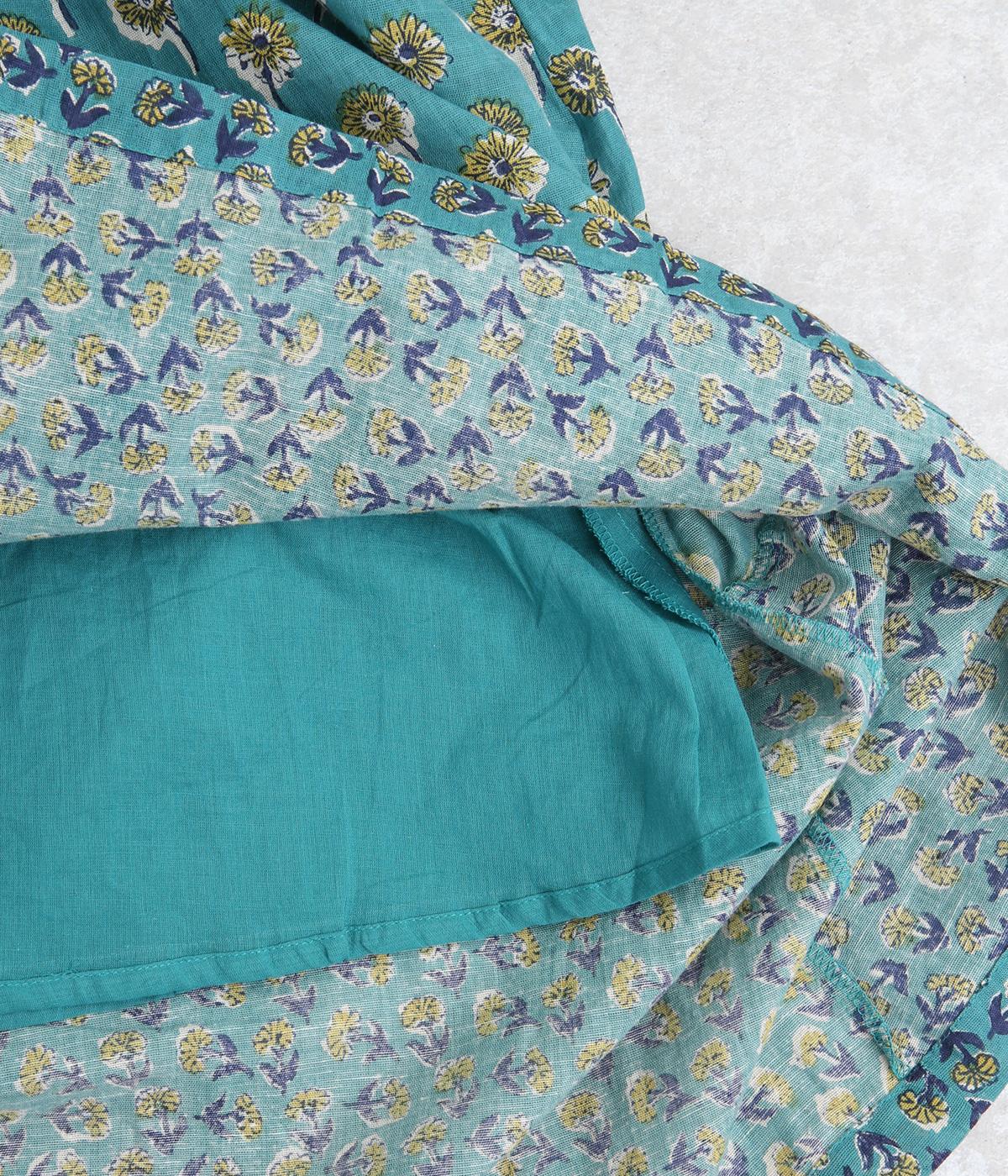 職人さんの手作業による独特な風合いと色合いが魅力のインド製コットン生地。軽くさらりとしたやわらかな生地感がボリュームをおさえ、きれいなドレープを表現してくれます。透け感をおさえる裏地つきです。