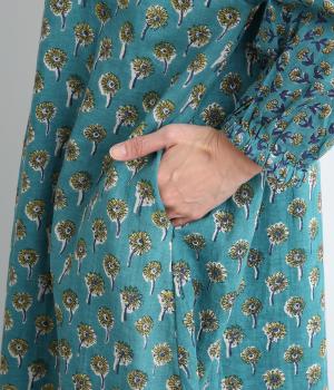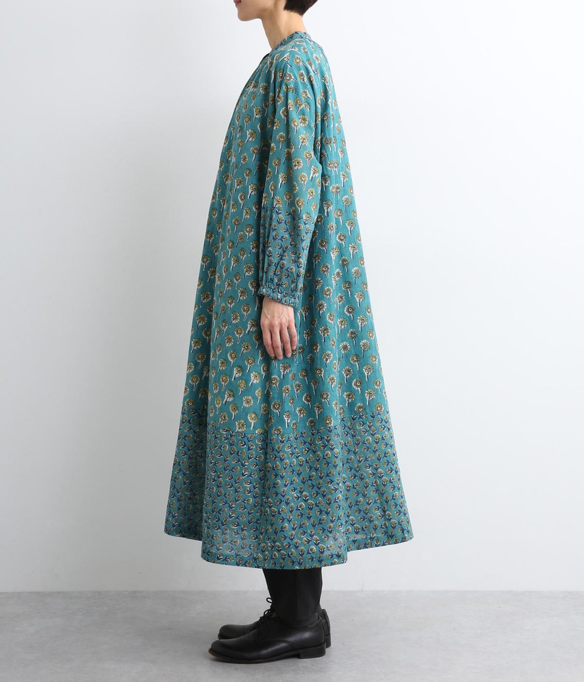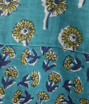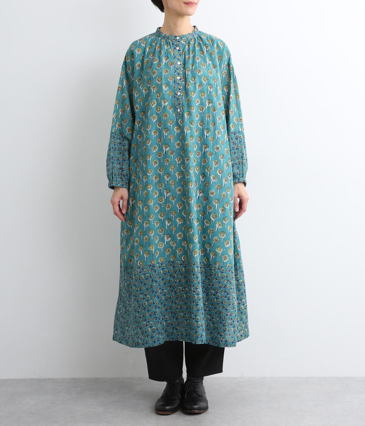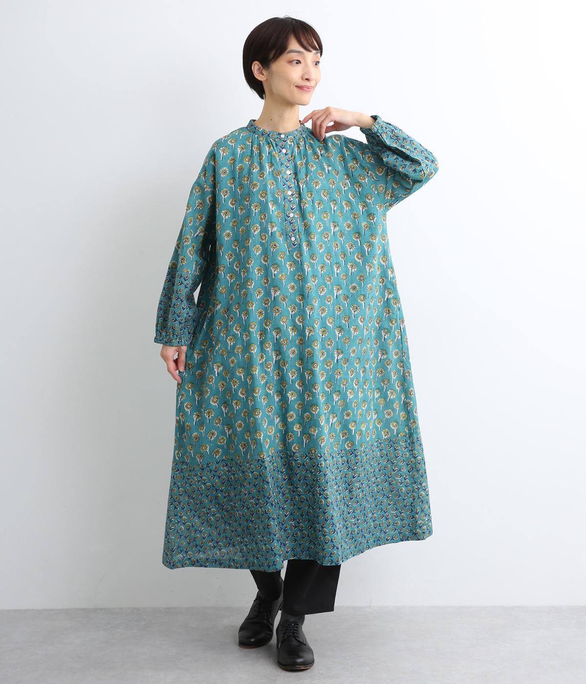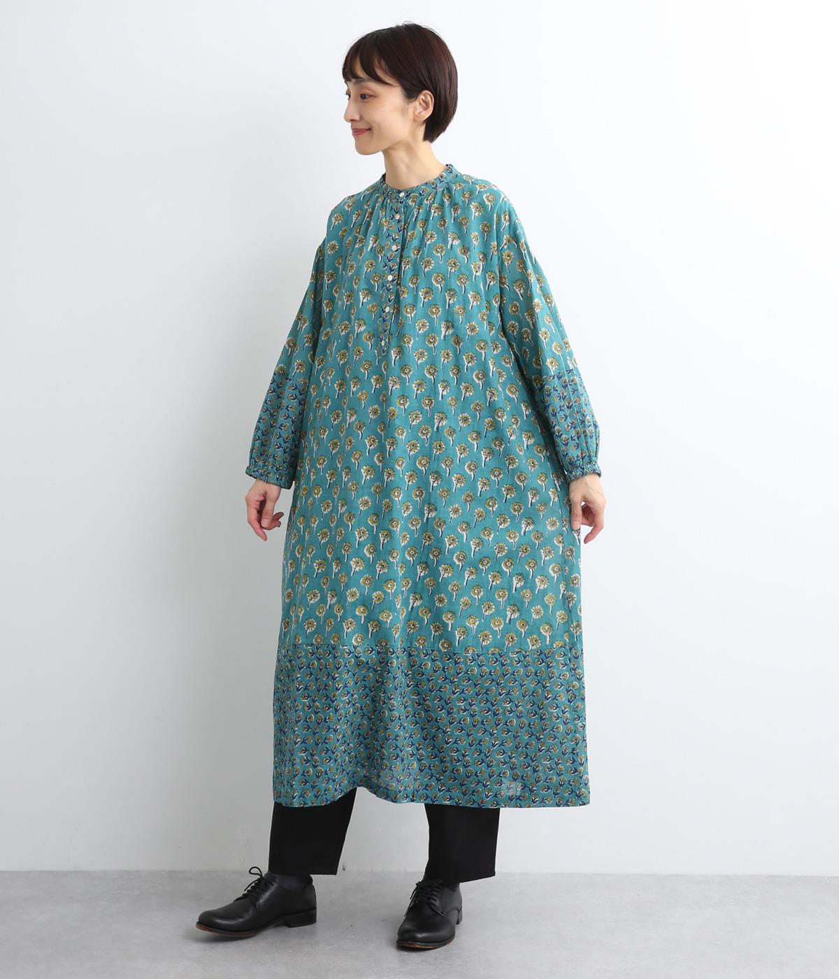 職人さんの手作業による独特な風合いと色合いが魅力のインド製コットン生地。軽くさらりとしたやわらかな生地感がボリュームをおさえ、きれいなドレープを表現してくれます。透け感をおさえる裏地つきです。