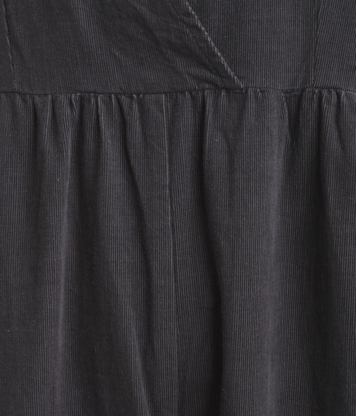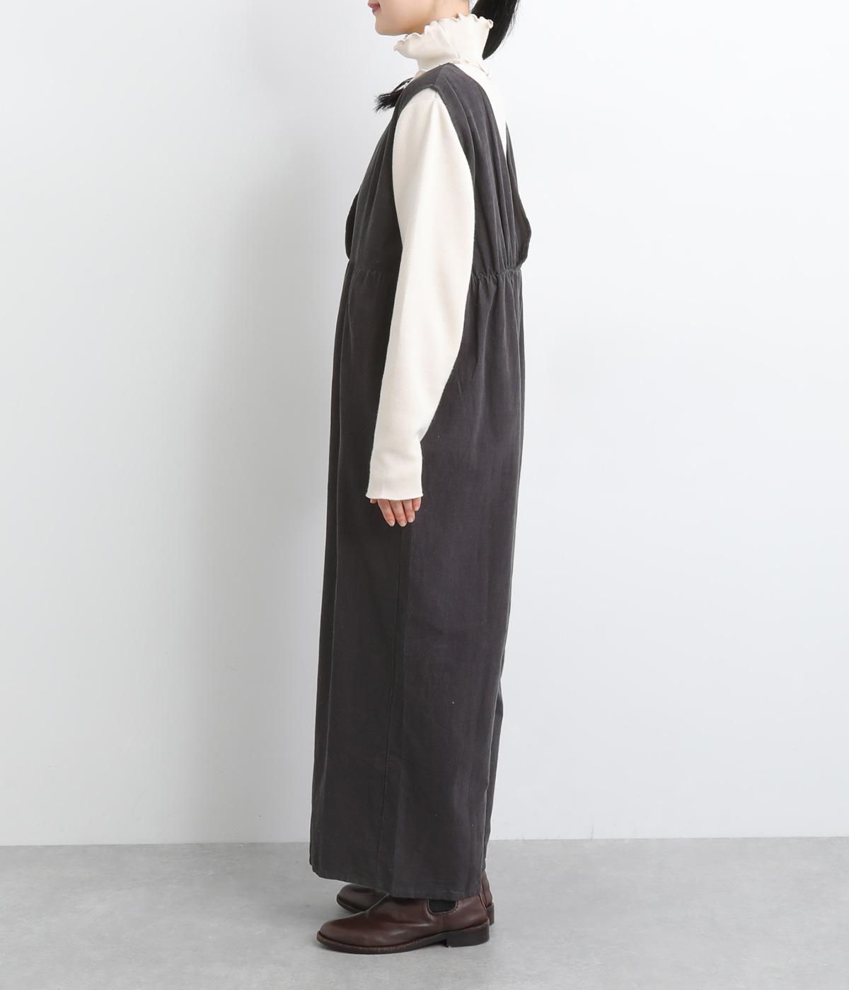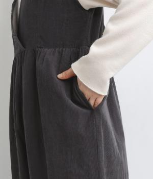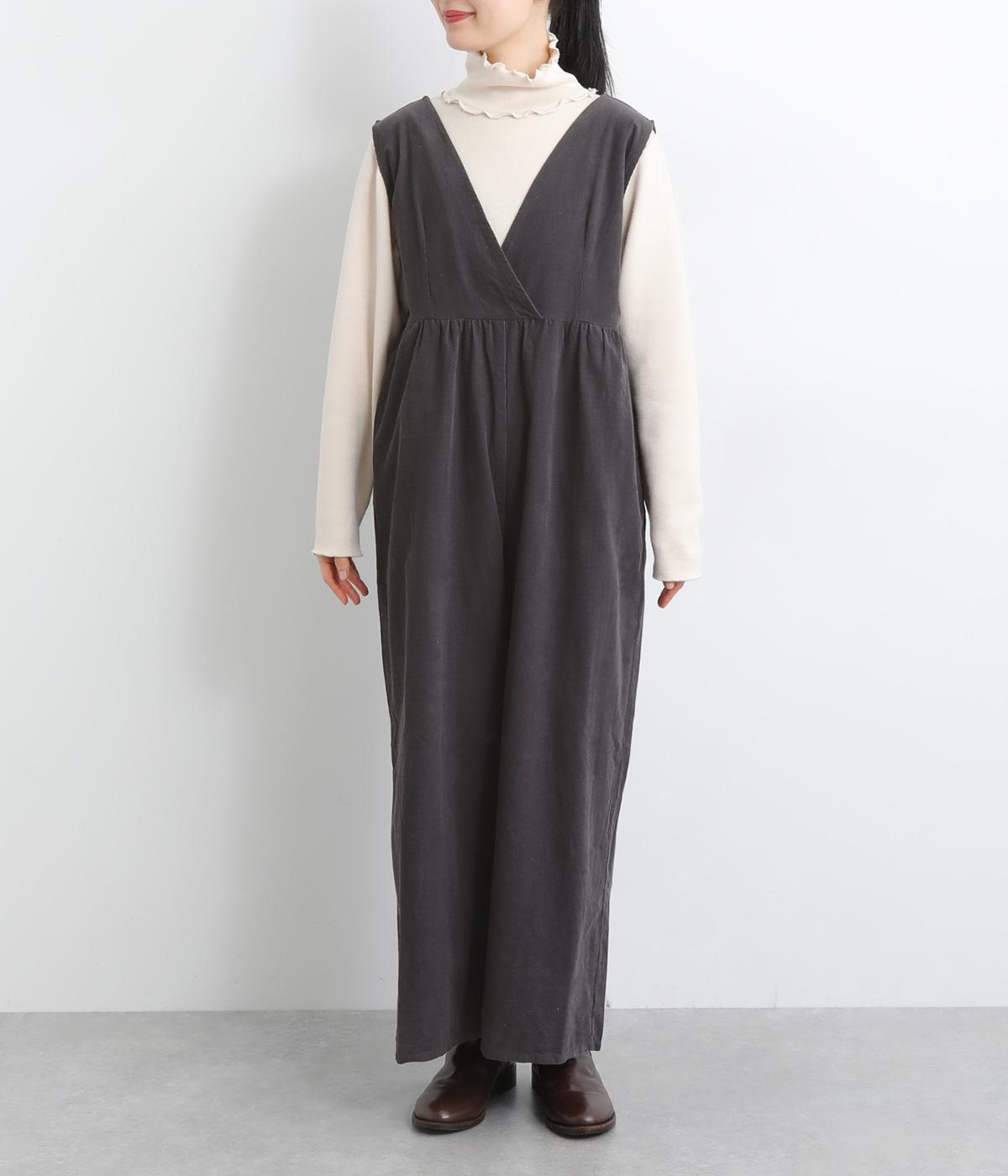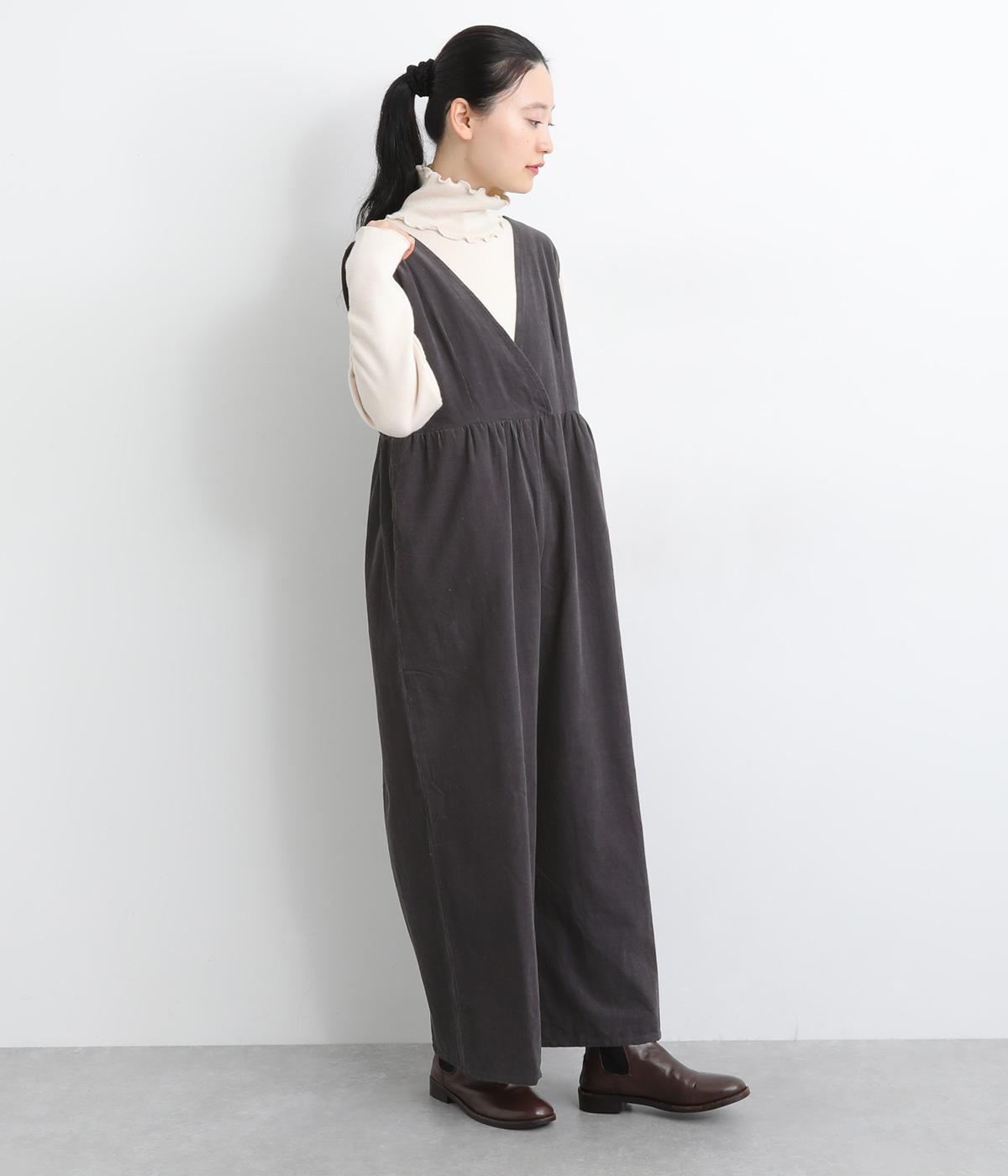 身頃をカシュクール風に重ねたサロペットです。ブラウスやニットなど、合わせるインナーによってさまざまな表情を楽しめます。ゆとりのあるリラクシーな着心地でデイリーに使いやすく、スタイリングの幅が広がる一着です。