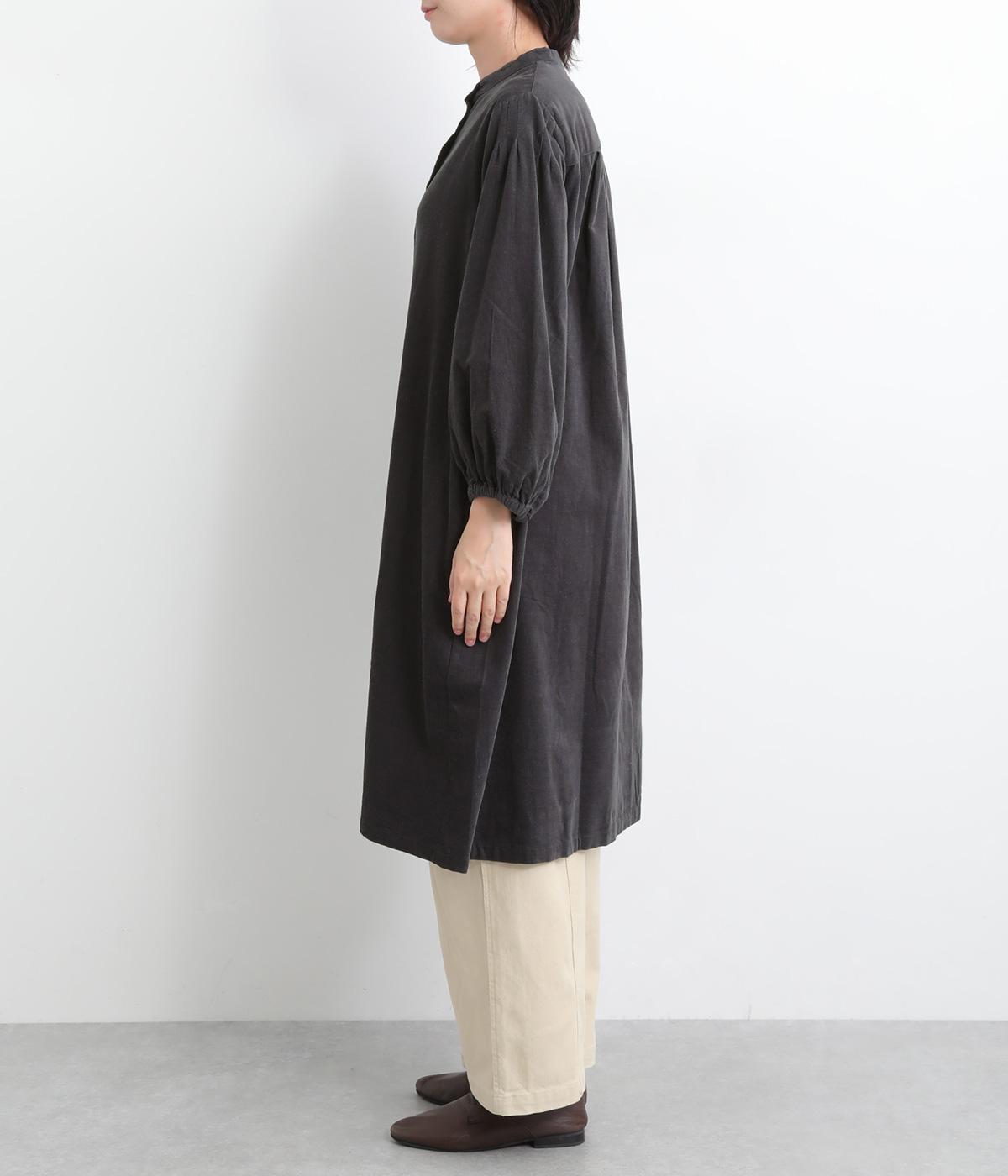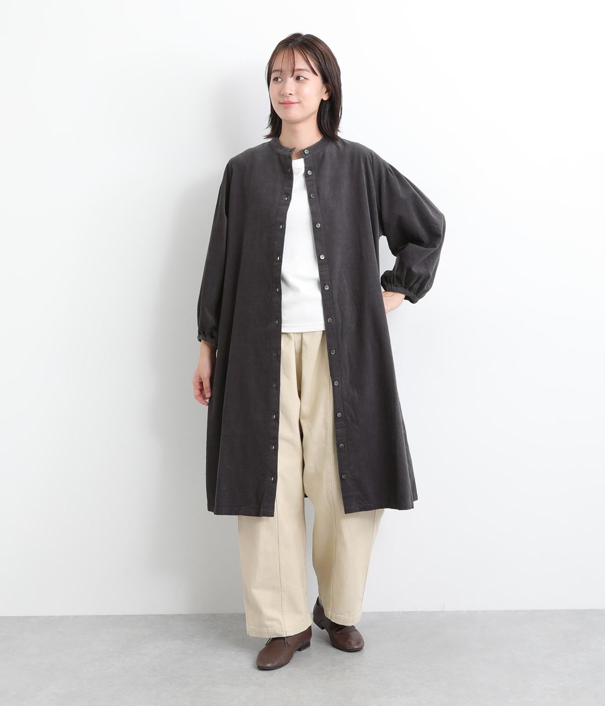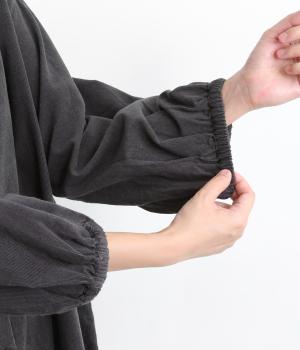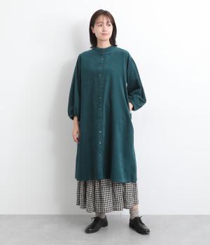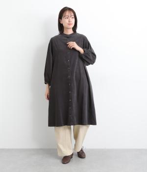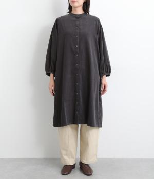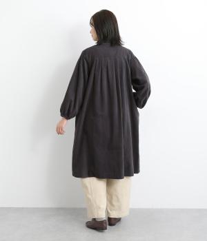 肩にピンタックを施したギャザースリーブがポイントの前開きワンピースです。袖口にはゴムをほどこし、お好みの袖丈にアレンジできます。サッと羽織るだけでもサマになる、着回し力の高いアイテムです。