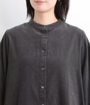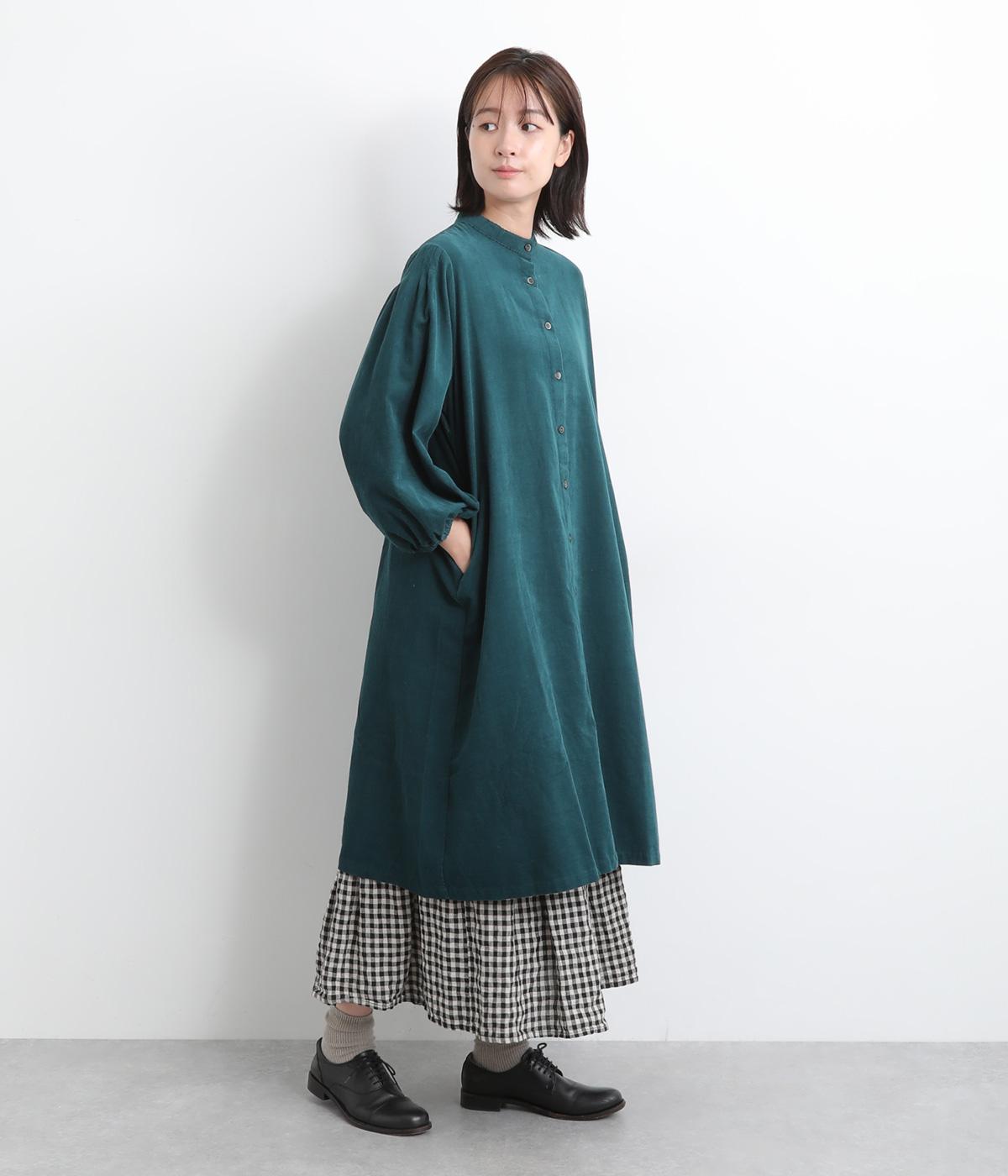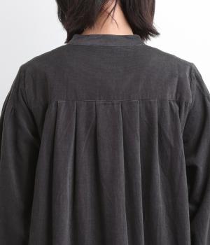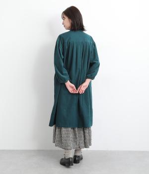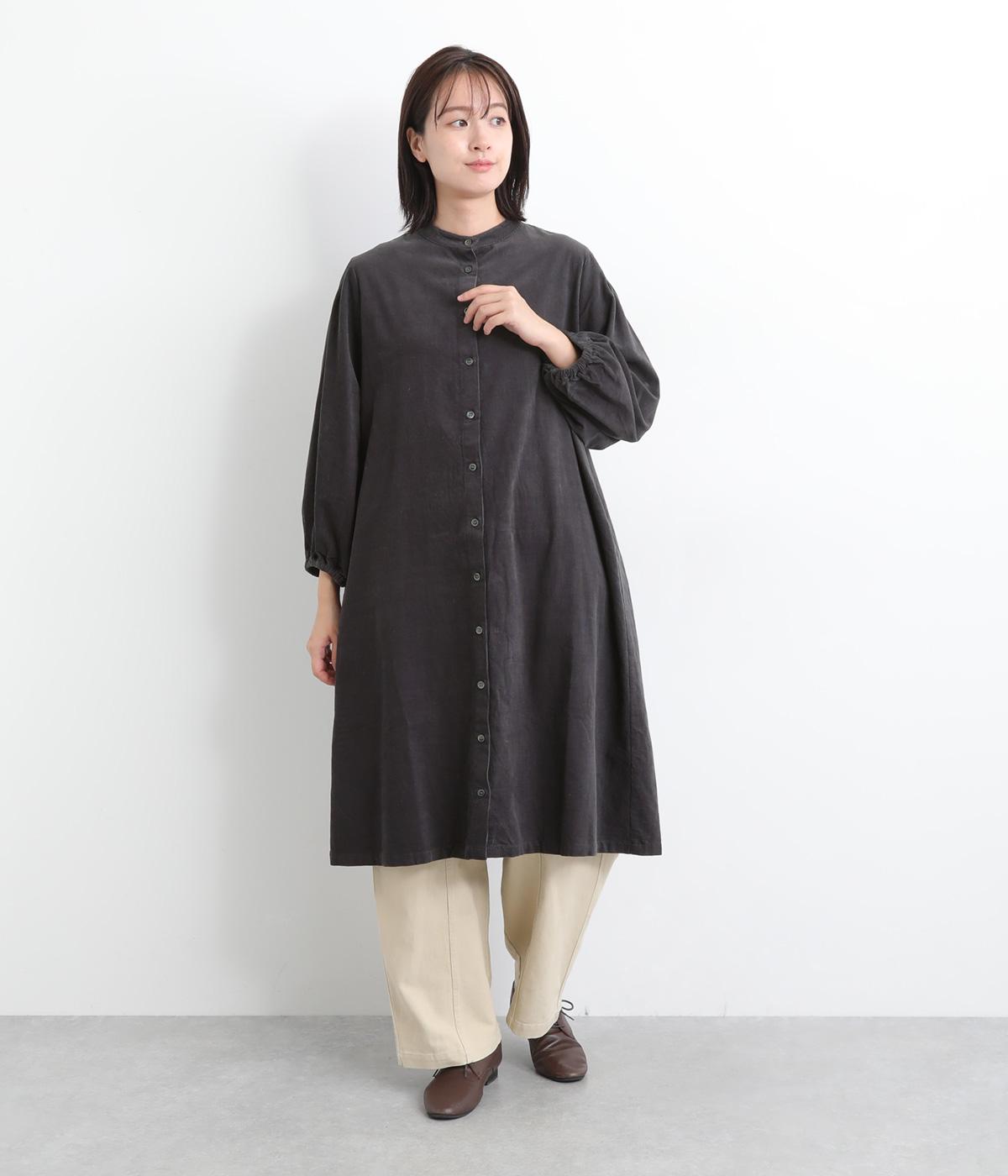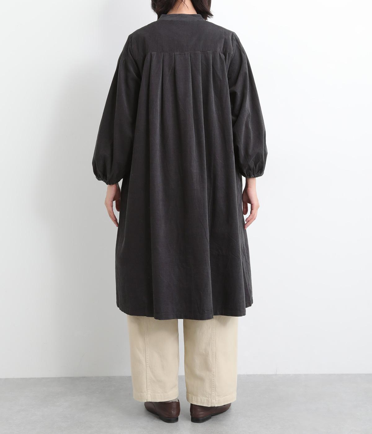 肩にピンタックを施したギャザースリーブがポイントの前開きワンピースです。袖口にはゴムをほどこし、お好みの袖丈にアレンジできます。サッと羽織るだけでもサマになる、着回し力の高いアイテムです。