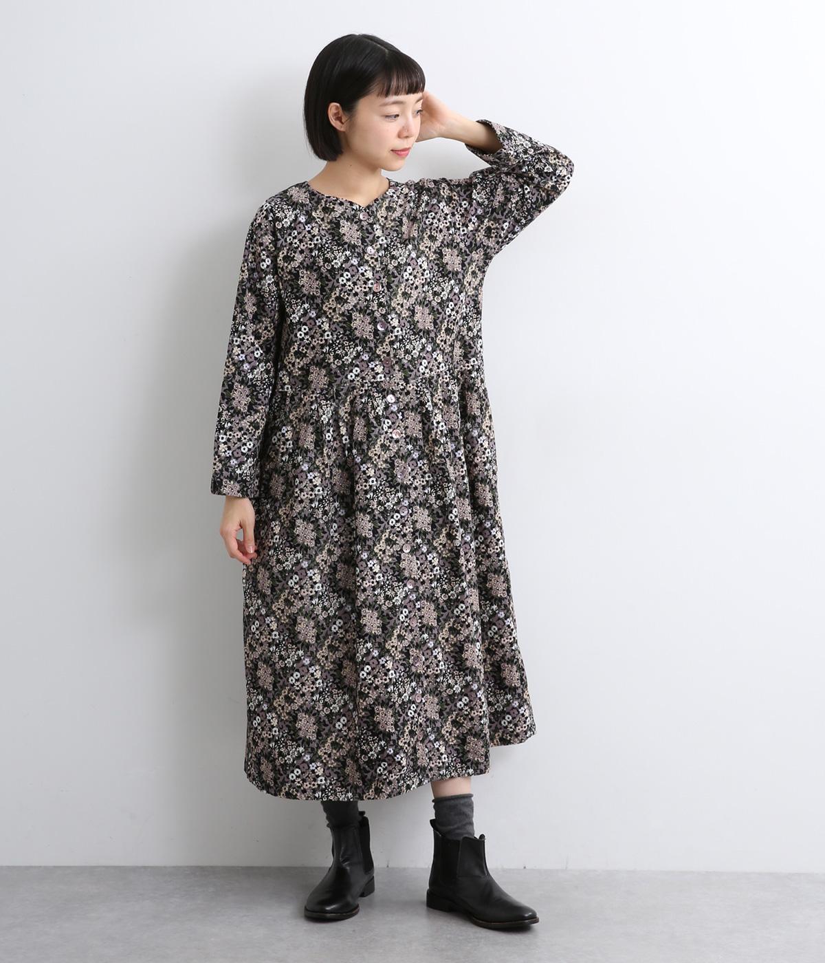 小さな花々を束ねた柄が、ナチュラルさと華やかな雰囲気をまとわせるワンピース。気分に合わせて印象を変えられる、前後2way仕様です。ほどよいゆとりとタックがつくる、自然な立体感が魅力で、着心地もばつぐん。ボタンをあければ軽い羽織りとしても活躍する、着回し力の高いアイテムです。