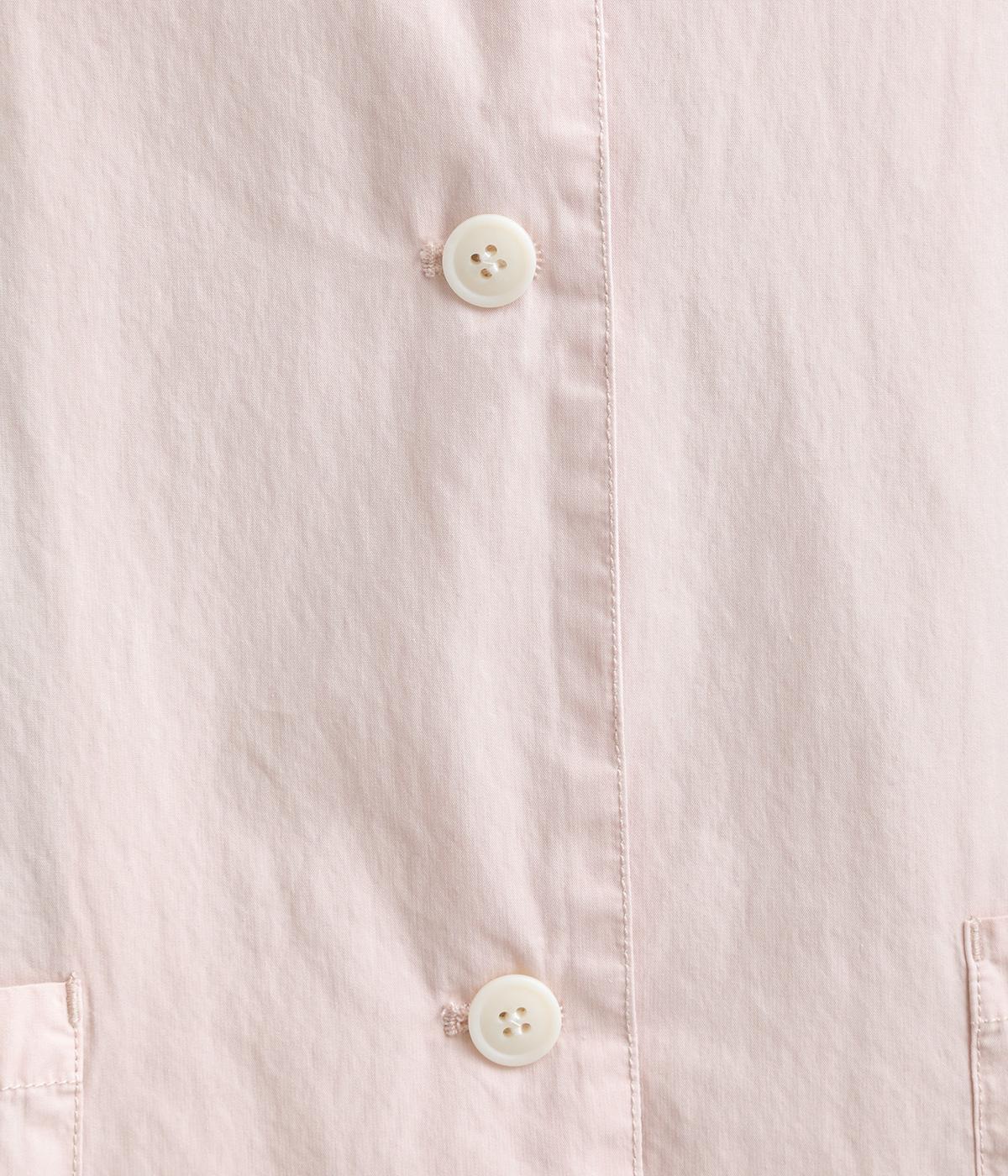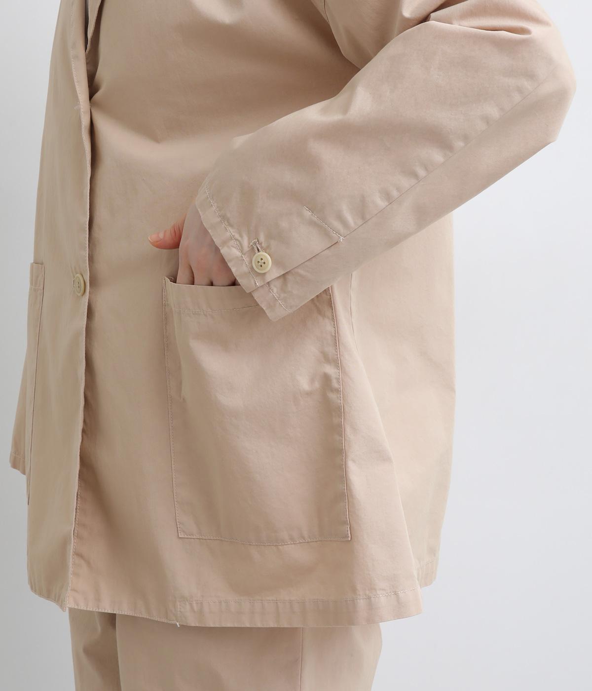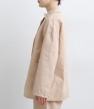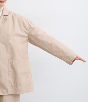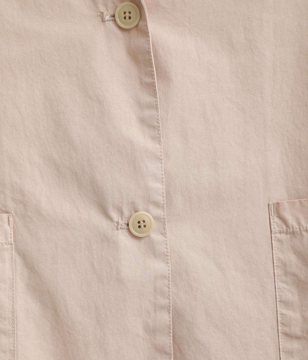 パリッとした薄手素材でシャツ感覚で羽織りやすく、凛としたこなれ感のある佇まいに。トップボタンによって襟元のデザインを2wayでたのしめます。ゆったりめのサイズ感がメンズライクな印象で、ワンピースなど甘めのアイテムとの相性も◎。