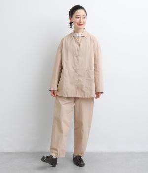 パリッとしたペーパーライクな風合いが特徴的な綿ナイロンの高密度生地を使用。コットンならではのふくらみや製品染め加工によるなじみの良さが魅力です。