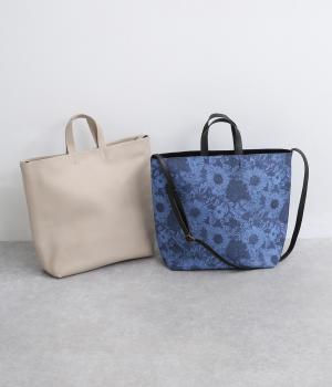 口が大きく開くマグネットボタン仕様で、荷物の出し入れがしやすいつくりです。A4サイズが収まる大きさで、内側にはファスナー付きポケットとオープンポケットを備えています。手持ちと肩掛けの2通りで使え、さまざまなシーンになじみます。