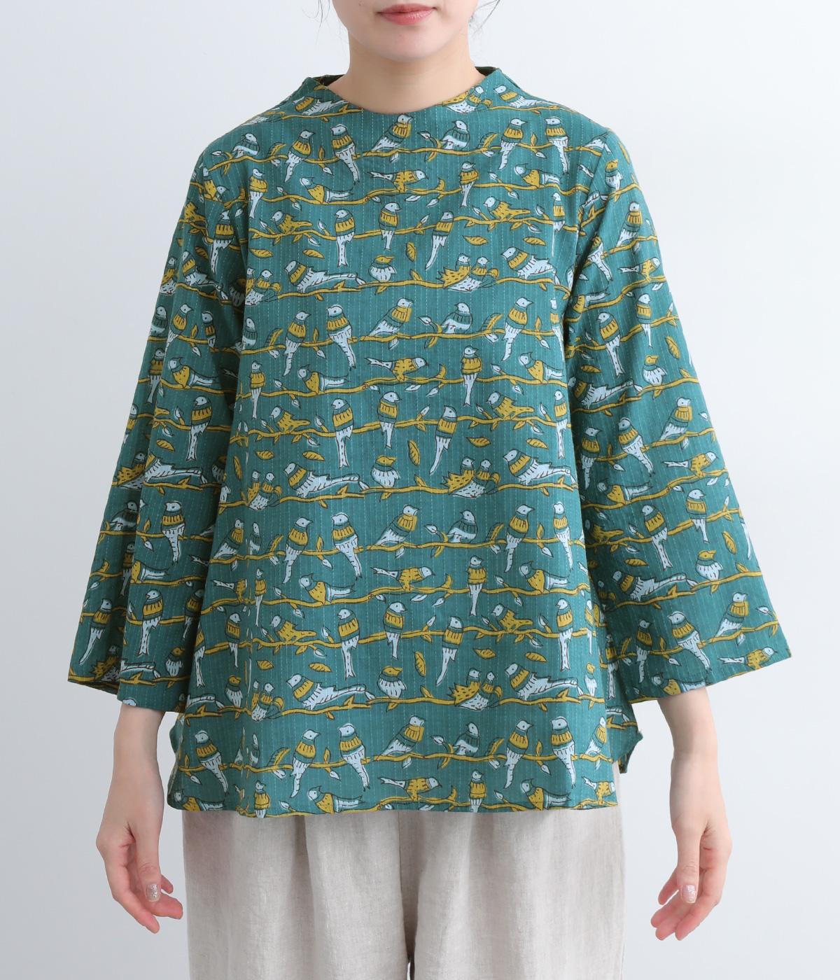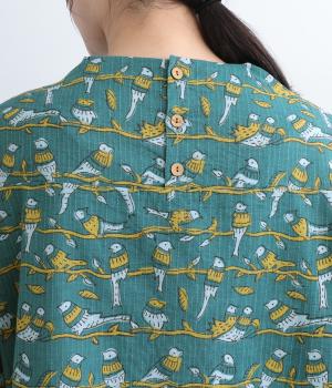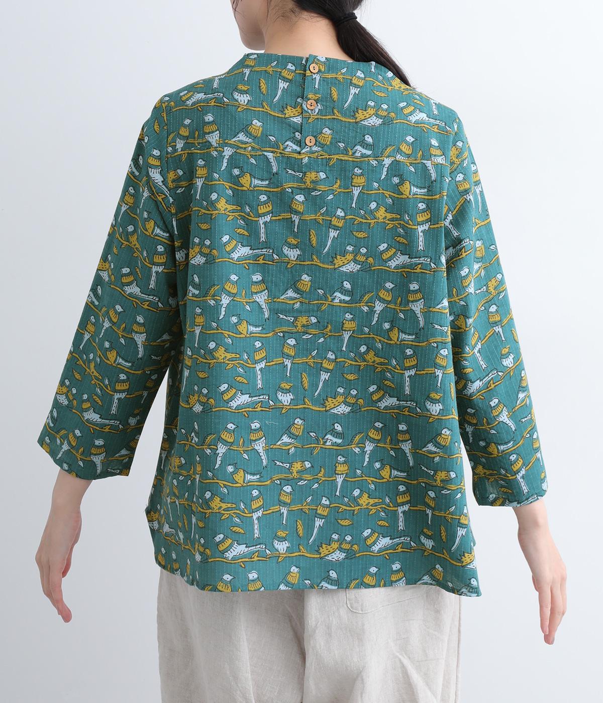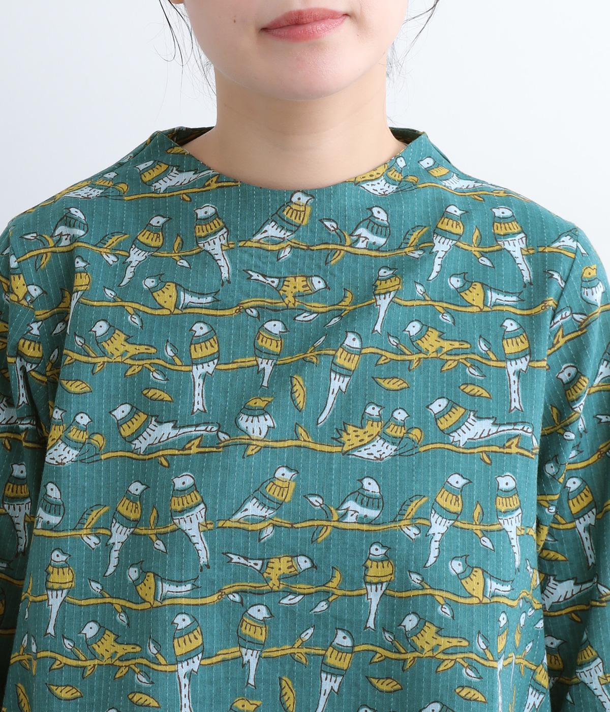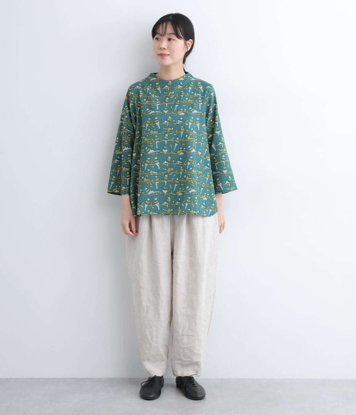 小鳥のさえずりが今にも聴こえてきそうな、愛らしい姿が目を惹く鳥モチーフのプリントブラウスです。ややフレアになったシルエットや生地の持つ表情がリラックスムードな一枚。ボトルネックで顔まわりにニュアンスを持たせてさり気なくメリハリを。