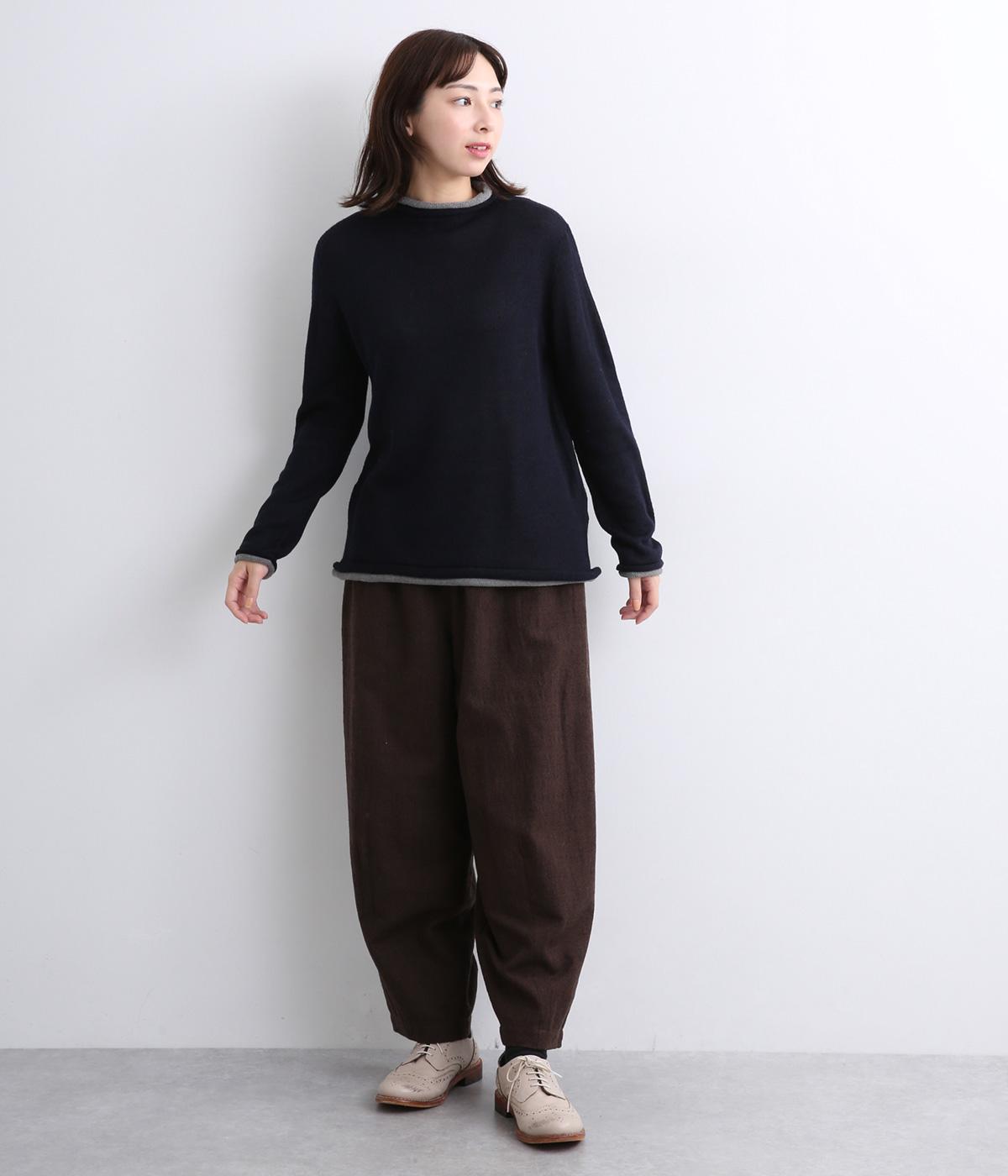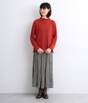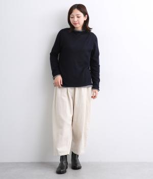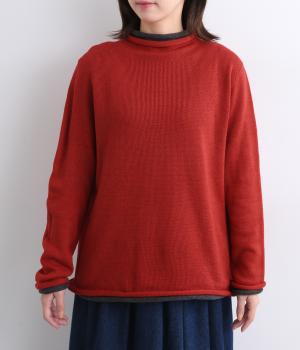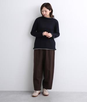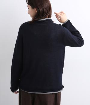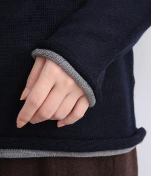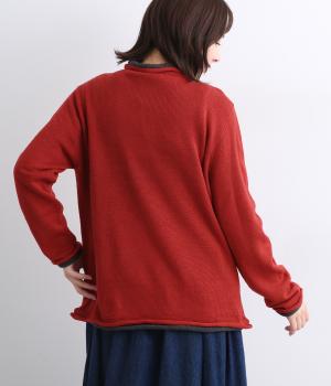 立体的に編み上げて縫い代がなく抜群の着心地を叶えるホールガーメント。ほどよい伸縮性でやわらかくふんわりと体を包み込みます。襟・袖・裾にあしらわれた配色デザインの天竺ロールもやさしい肌ざわりです。