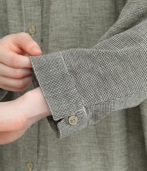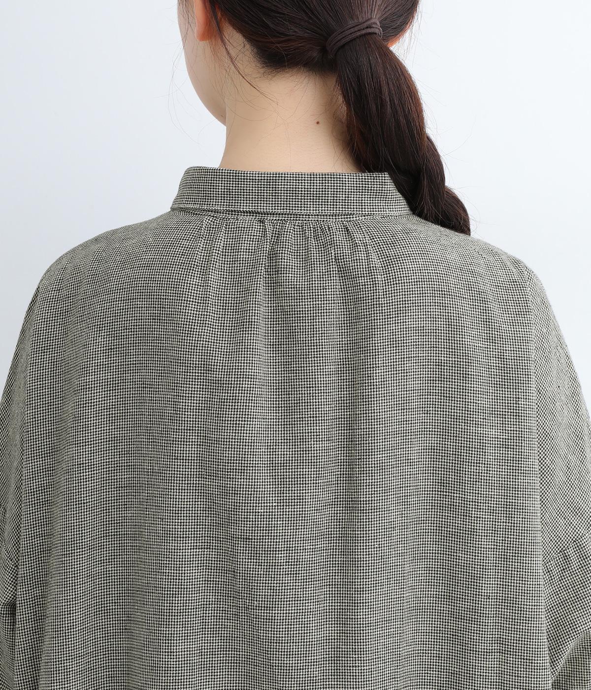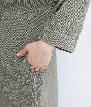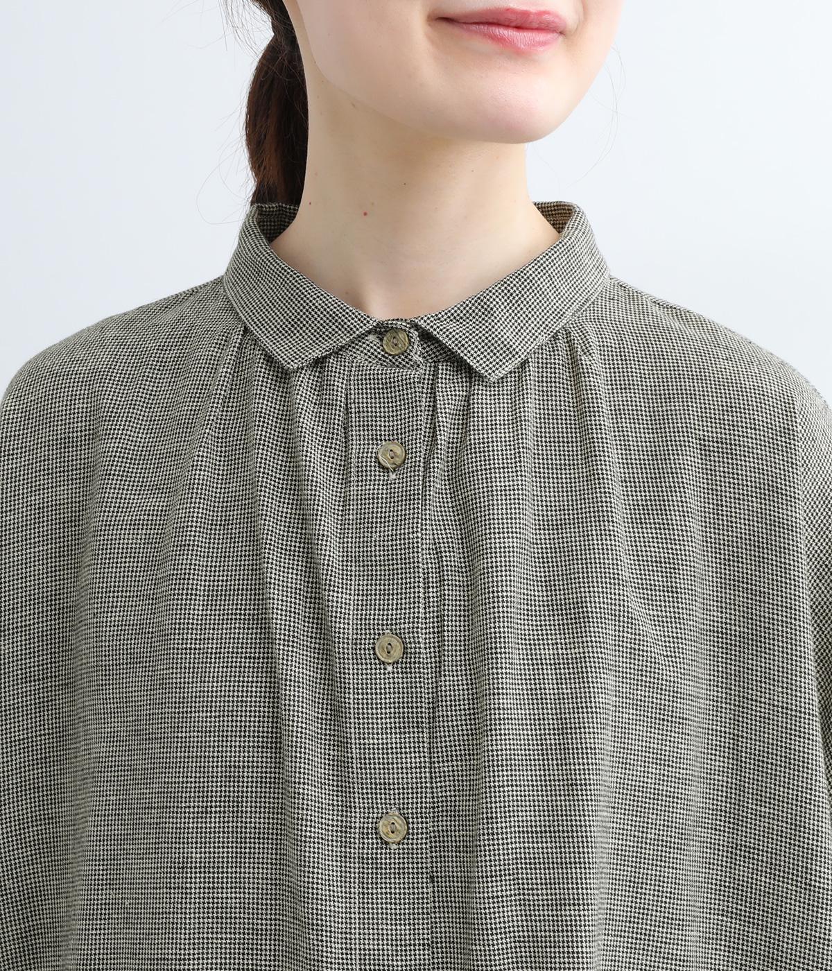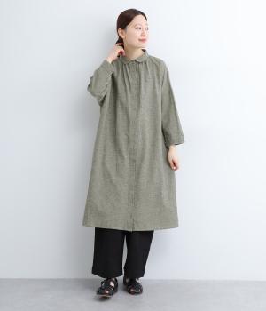 ネックまわりのギャザーと小さめの襟が大人かわいいシャツワンピース。体のラインを拾わないサイズ感で、リラックスした着心地が叶います。クラシカルな千鳥格子がデイリーコーデをクラスアップ。パンツとのレイヤードスタイルや羽織りとして着用するのもおすすめです。