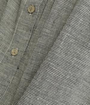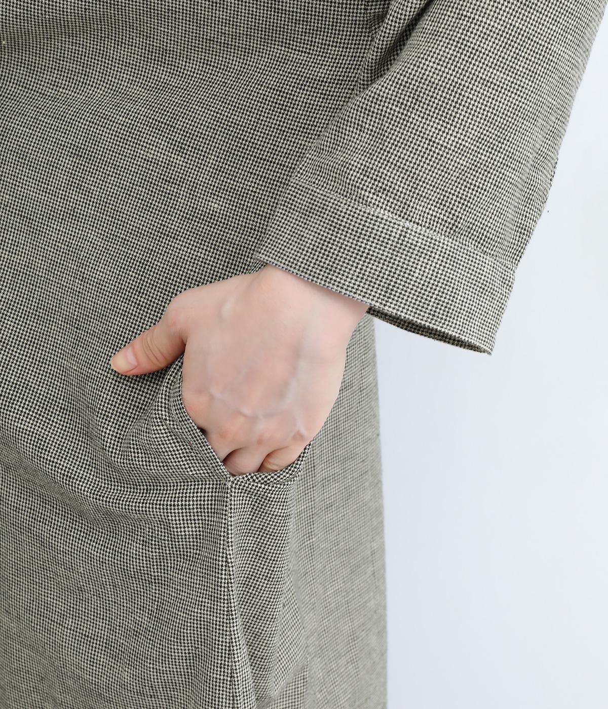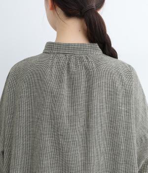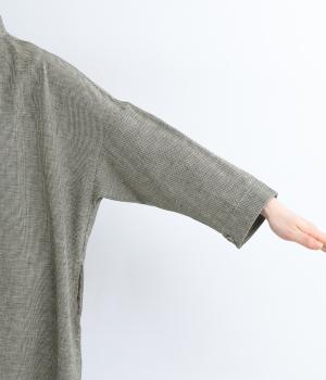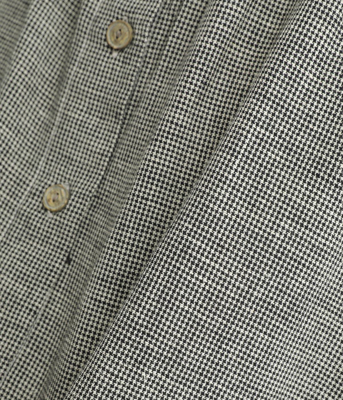 綿麻の細番手糸を使用して千鳥格子柄を織り上げています。一見無地のように見える、細かく繊細な柄が特徴。麻ならではの適度なシャリ感があり、さらっとした着用感です。