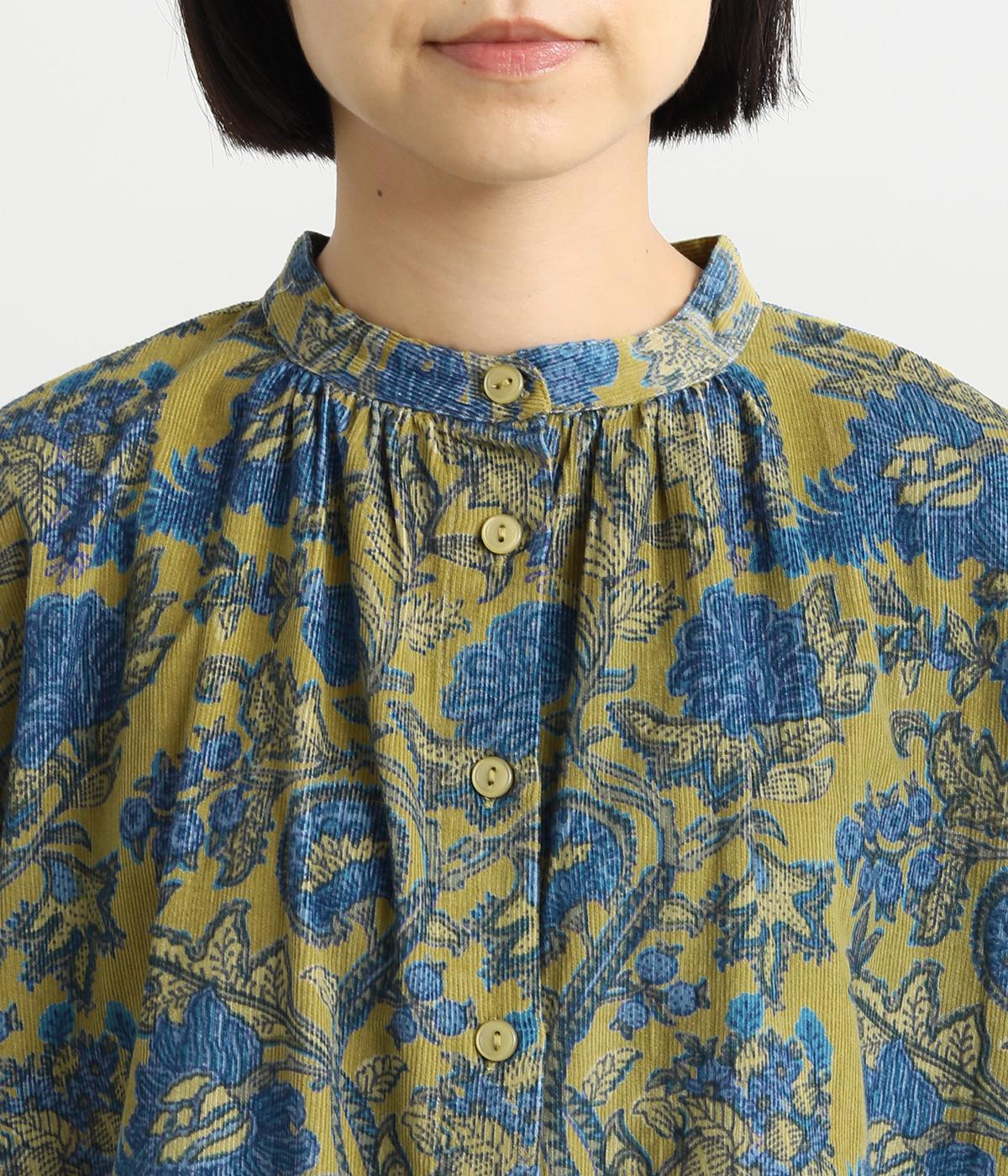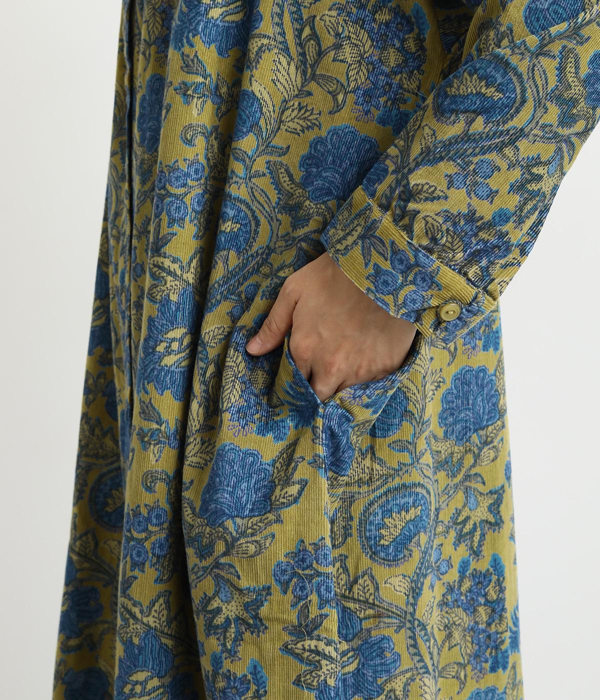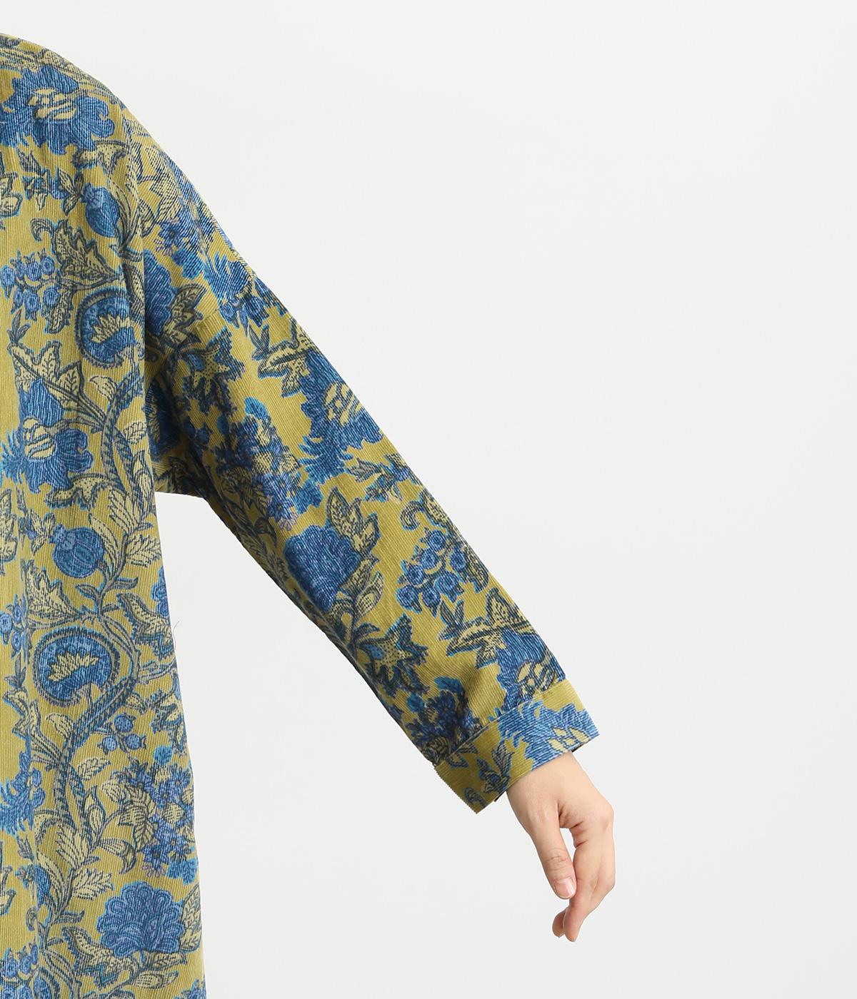 インドの伝統的な更紗模様を、やわらかく温かみのある細かいうねのコーデュロイ生地にプリントしました。生地に立体感があるので柄にも自然な深みがうまれました。