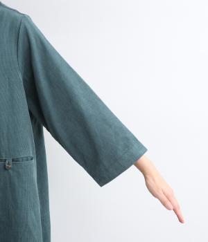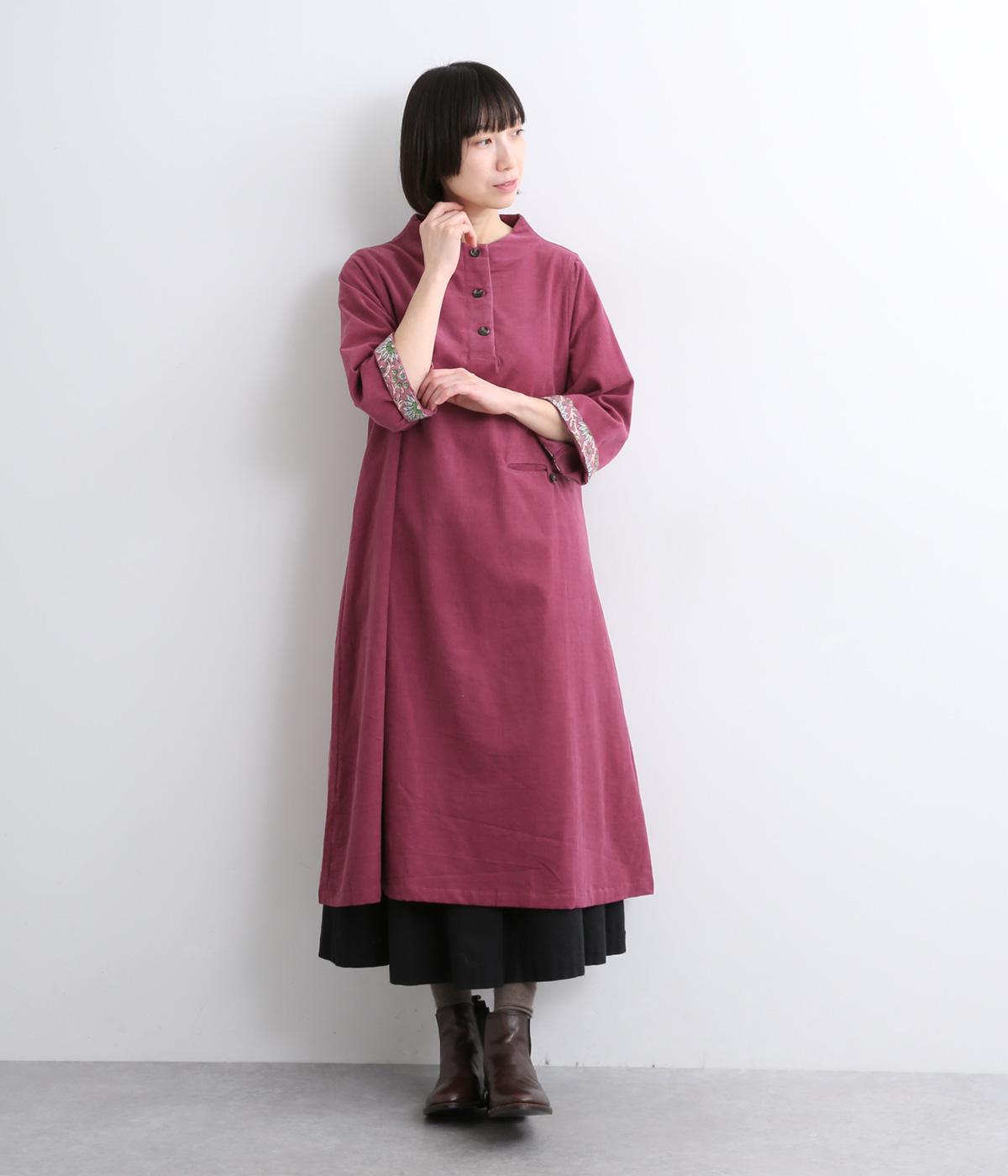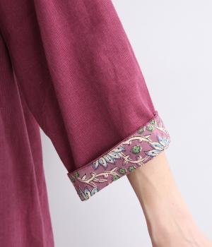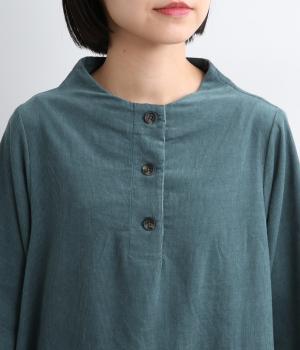 細畝のコーデュロイにインド綿の素朴な風合いが合わさり、ほどよい厚みとぬくもりを感じる生地感に仕上げました。軽くて動きやすく、ナチュラルな印象とやさしい肌ざわりが魅力です。