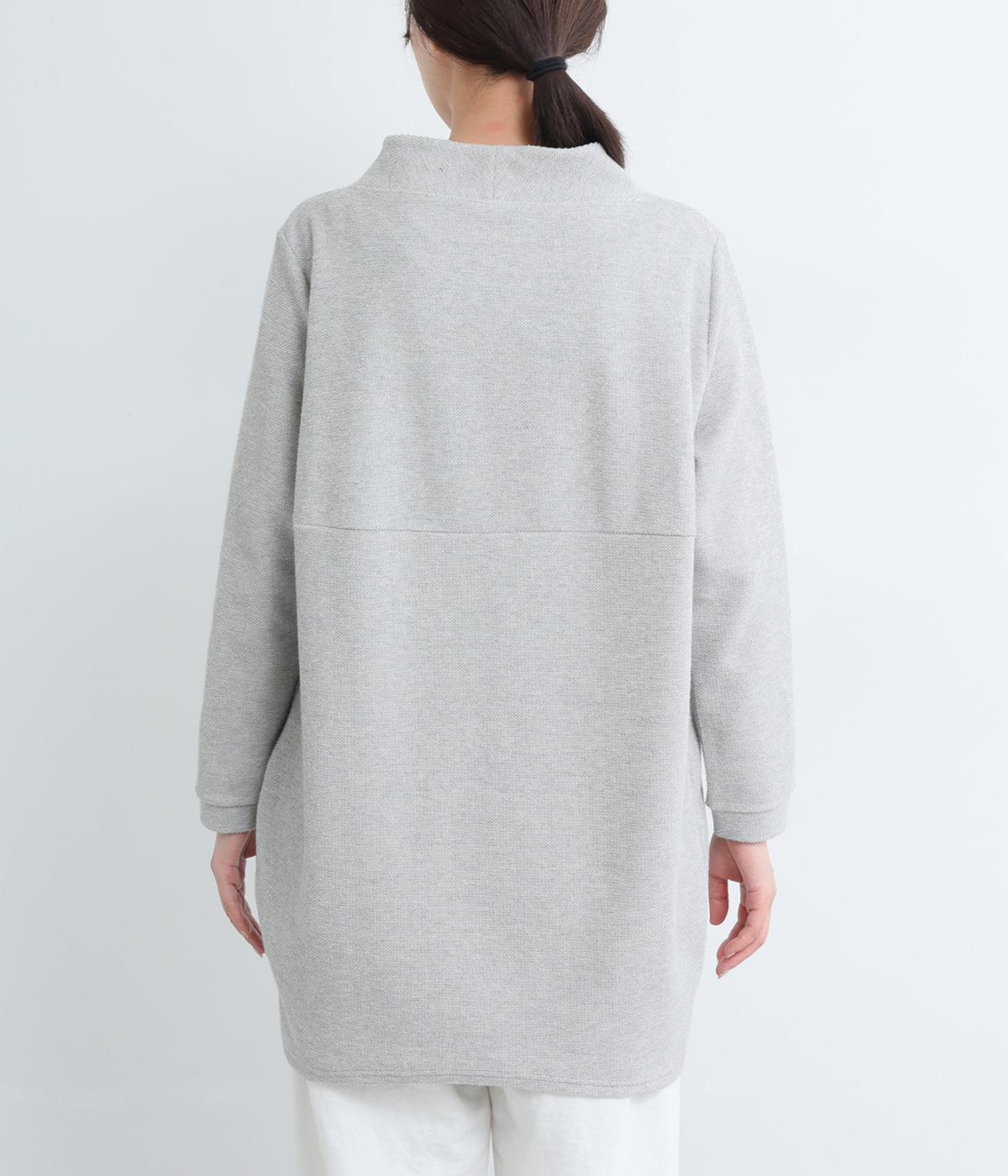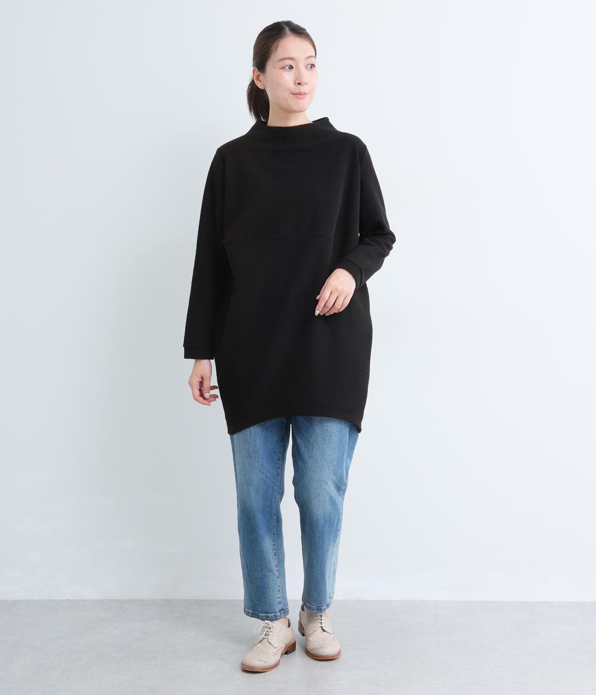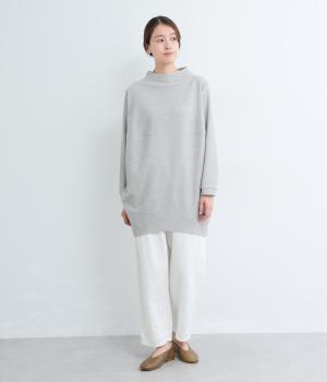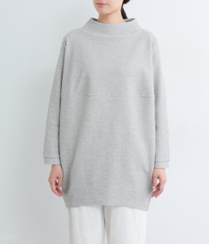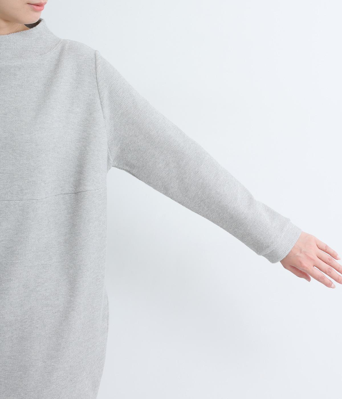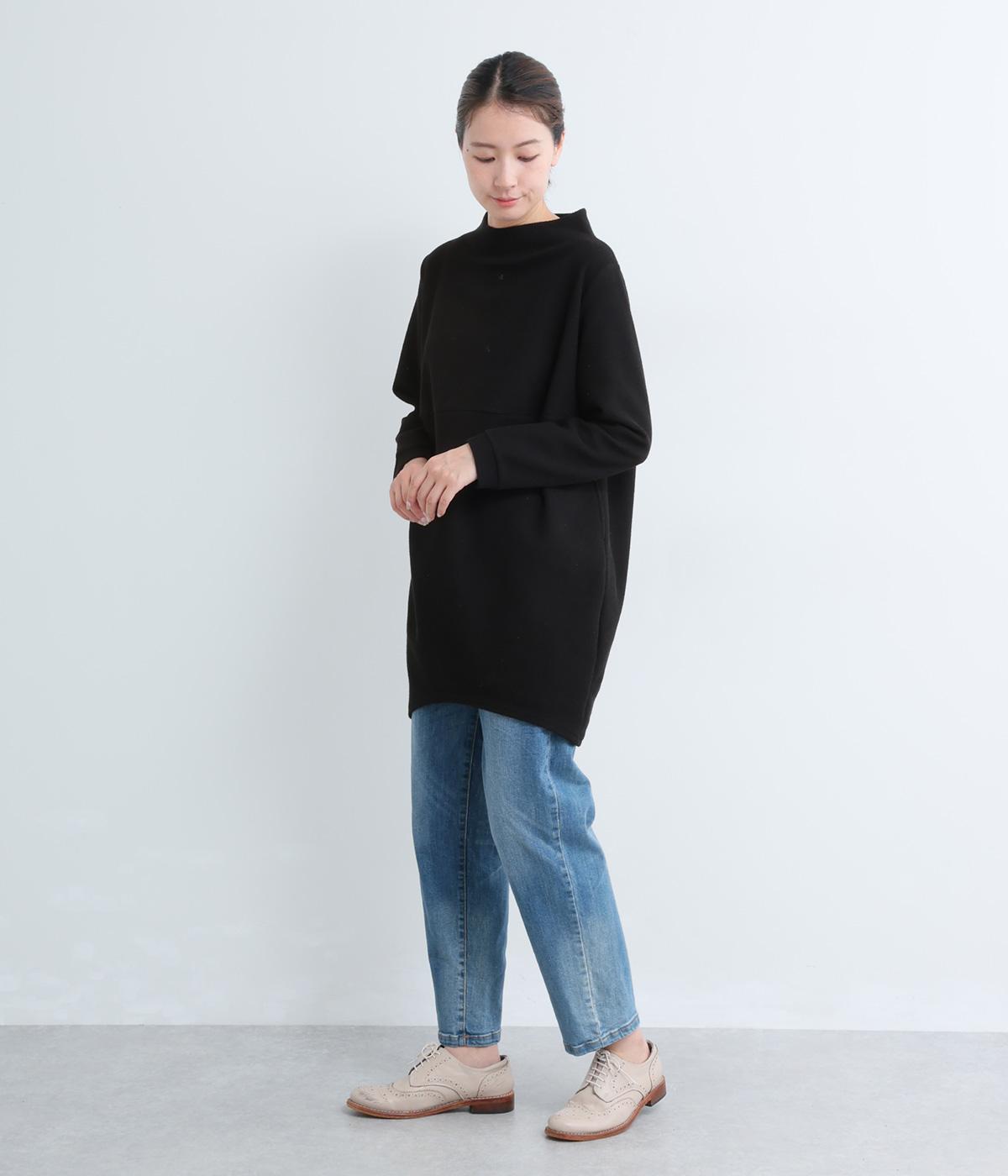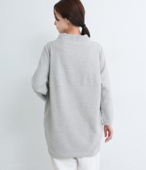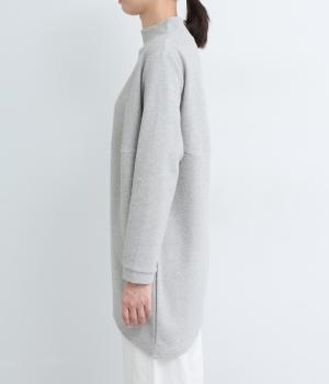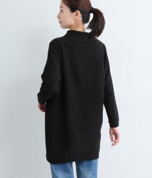 適度な抜けと立体感をつけたボトルネックが顔まわりにニュアンスを与えます。切り替えを入れてさり気なくふっくらさせたシルエットも特徴的。ヒップをおおうチュニック丈でタテラインを生み、コーディネートをすっきりまとめる一枚。