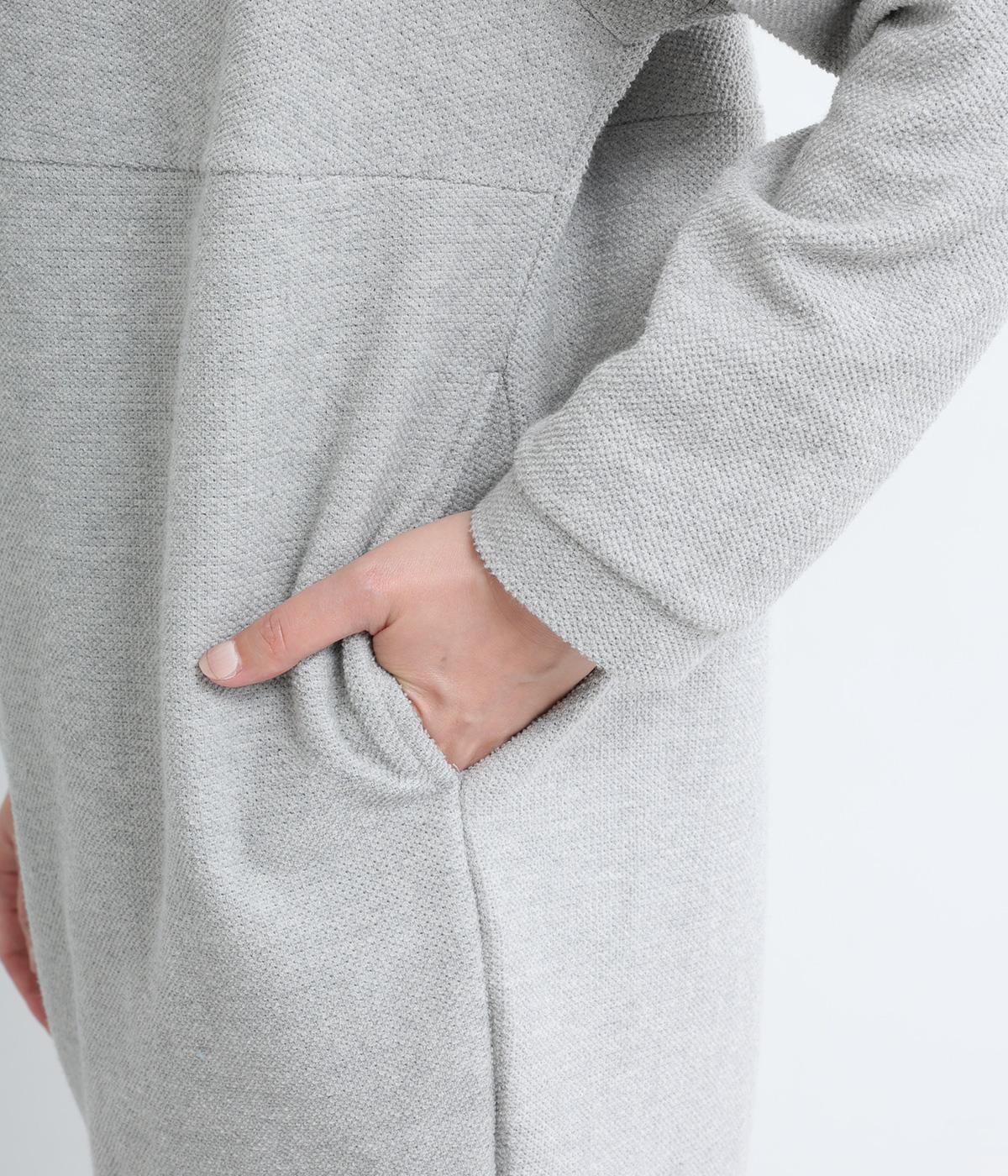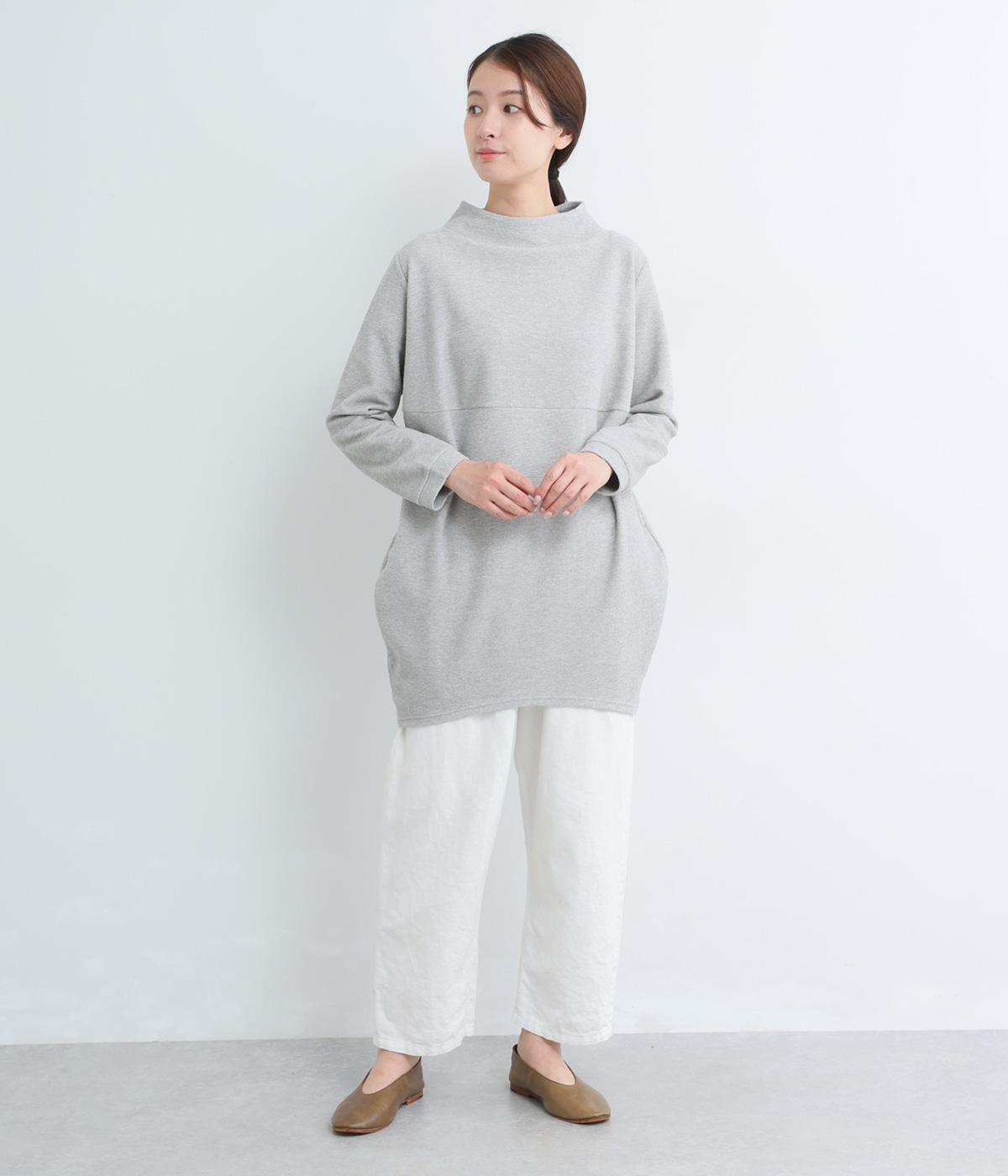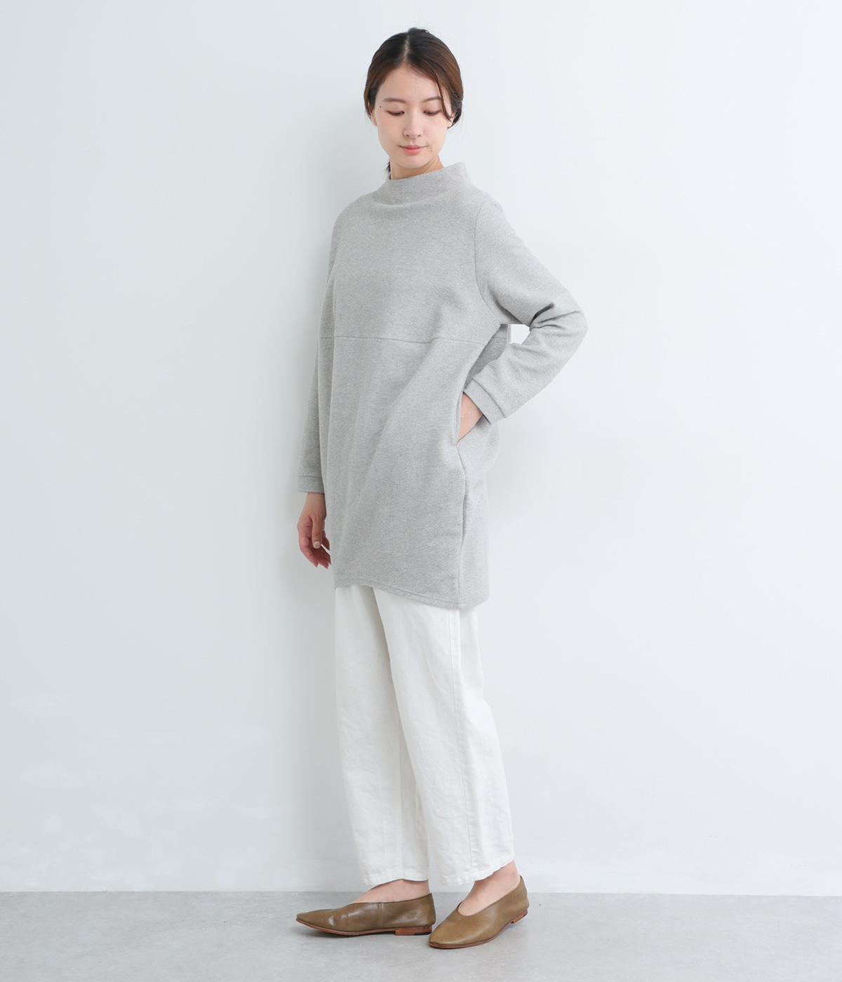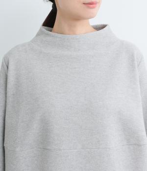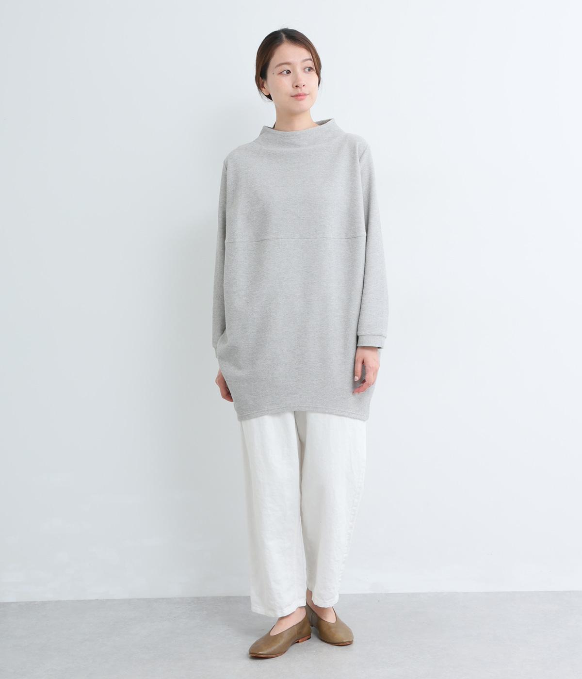 適度な抜けと立体感をつけたボトルネックが顔まわりにニュアンスを与えます。切り替えを入れてさり気なくふっくらさせたシルエットも特徴的。ヒップをおおうチュニック丈でタテラインを生み、コーディネートをすっきりまとめる一枚。