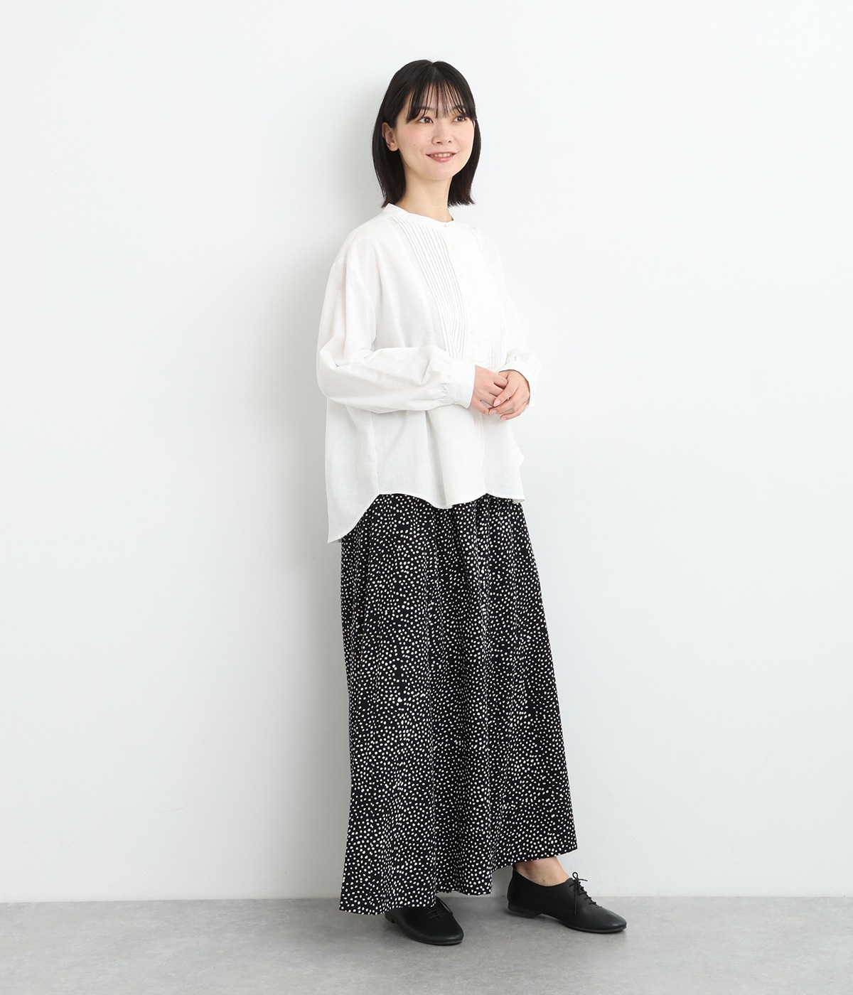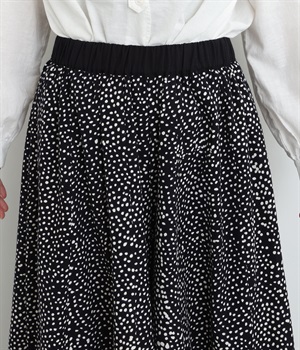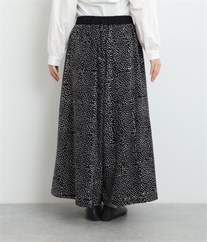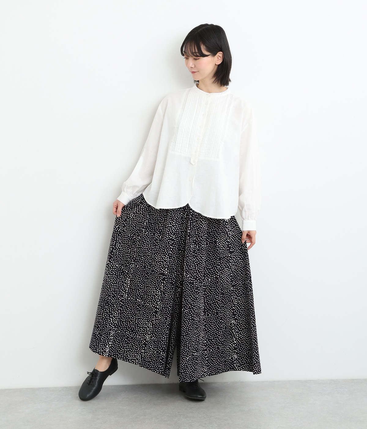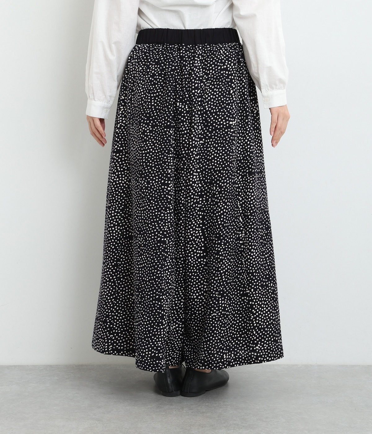 肌なじみのいいやわらかなコットンに、手書き風のランダムドットをプリント。ひざ上部分にはコットン素材の裏地付きで、肌触りにも配慮しています。