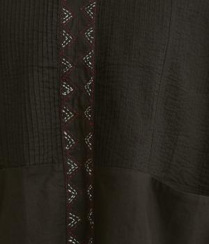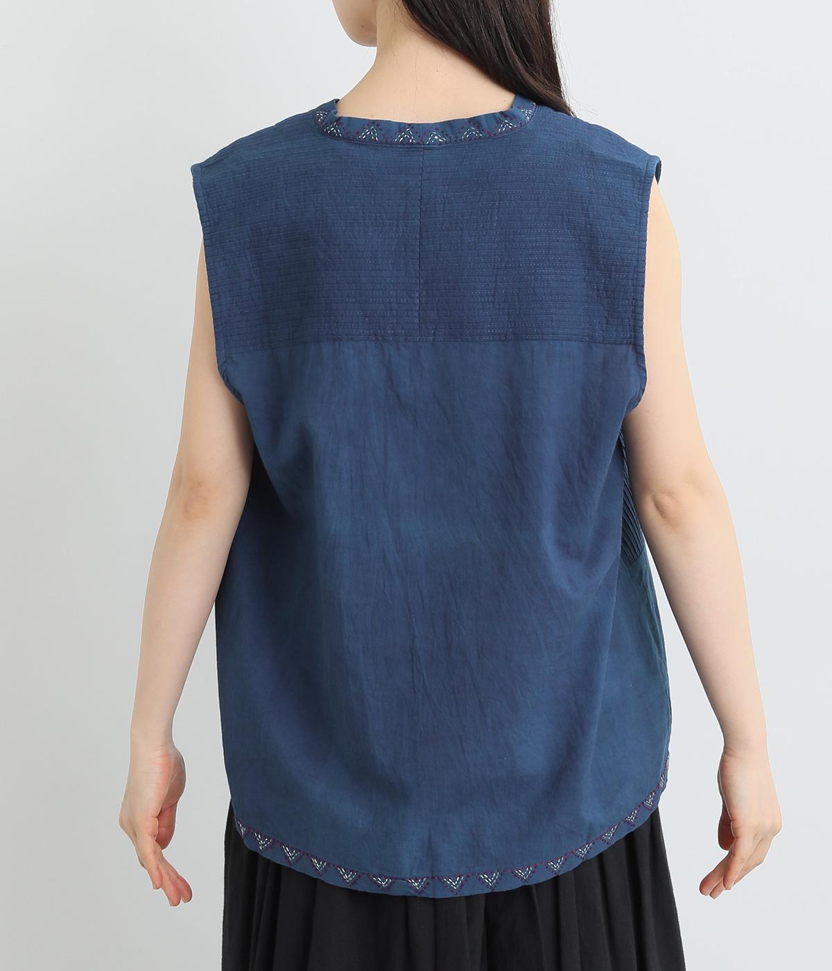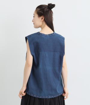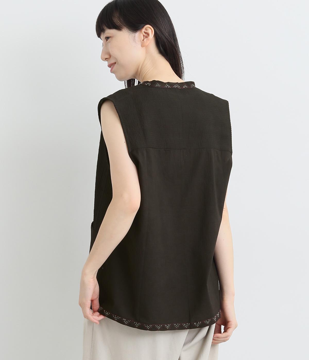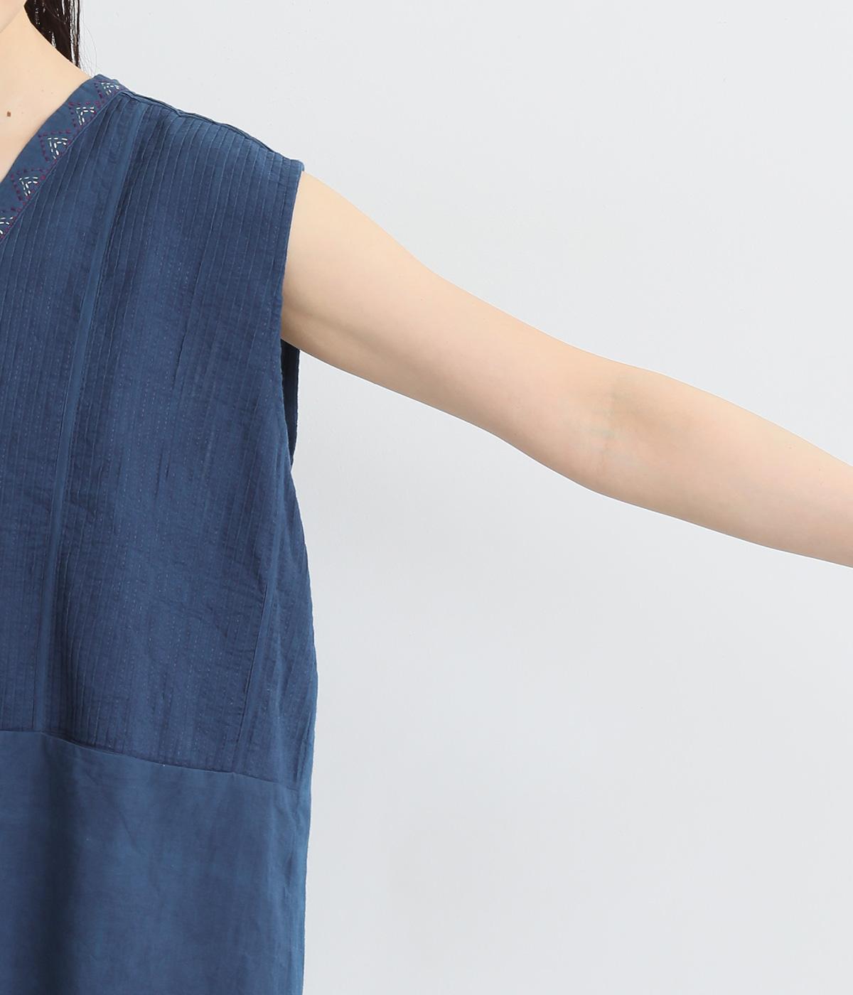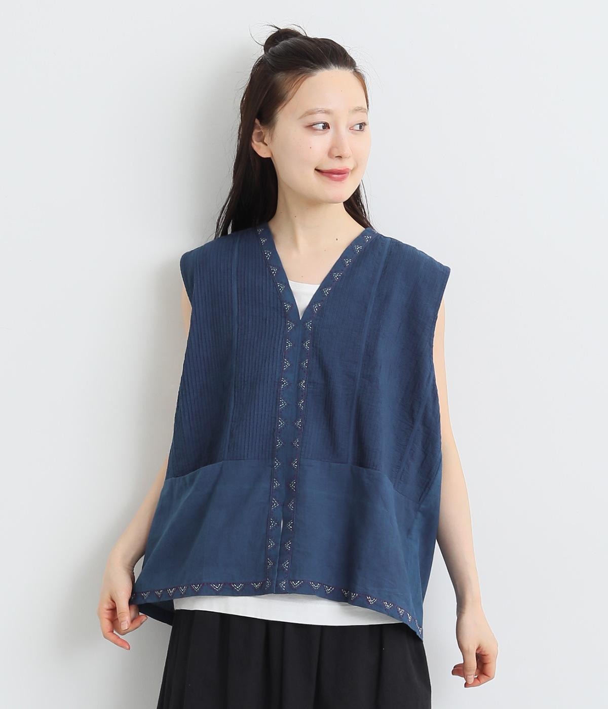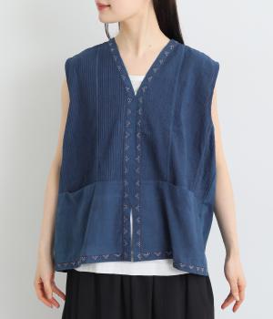 ピンタックと無地の切り替えや、前立て・裾のハンドステッチなど細部までこだわりを感じる一品。ほどよくすっきりとしたシルエットで、ボリュームのあるボトムともバランスが取りやすいです。前身頃にポケットつきなのもうれしいポイント。