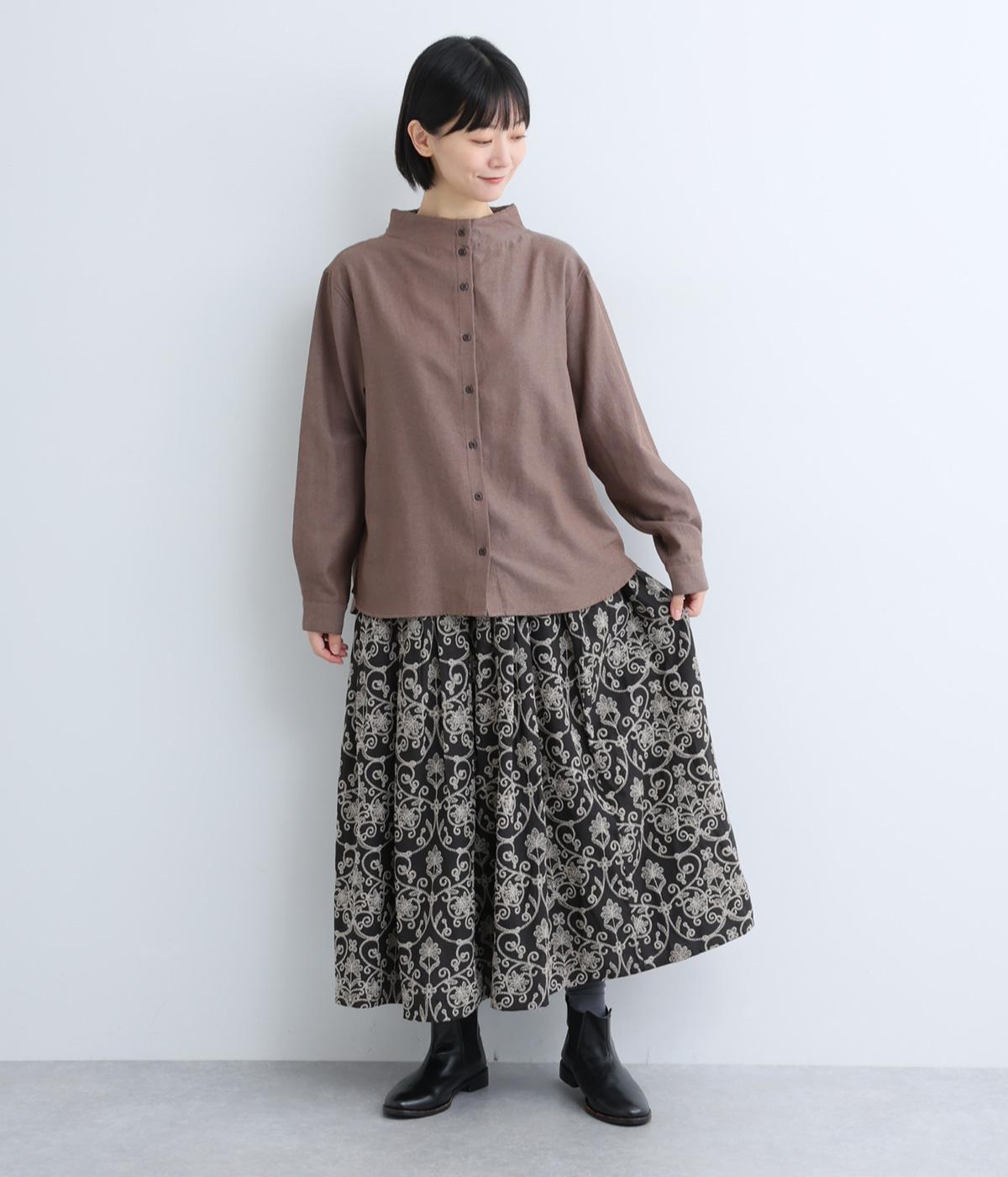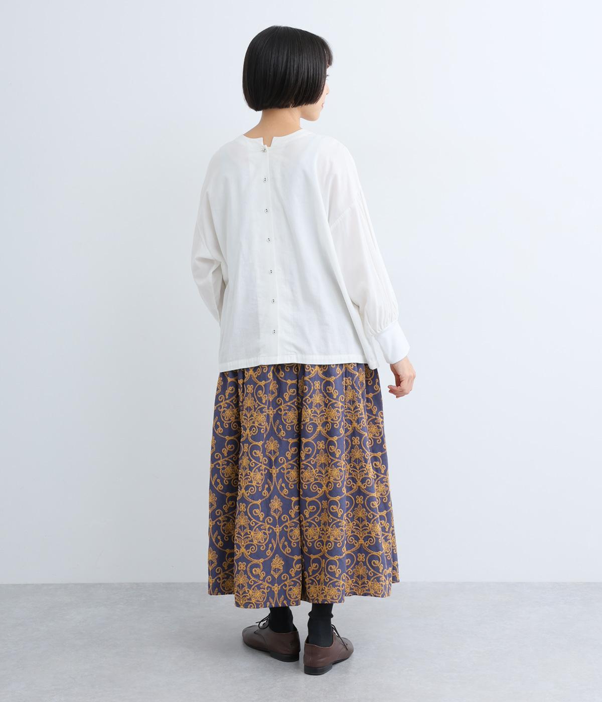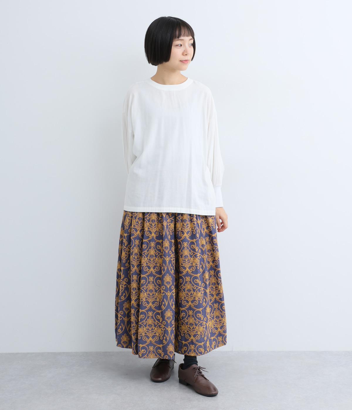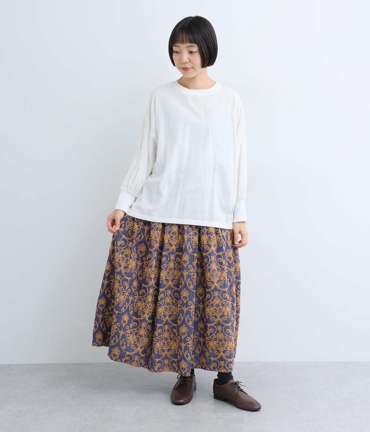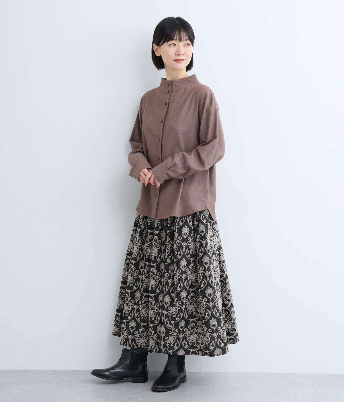 ウエストラインのギャザーで立体的なフォルムが美しいスカートです。女性らしいまるみのあるシルエットが刺しゅうの美しさを際立てます。しなやかなAラインで体型を選ばず着用できるのも◎。ちょっとだけ特別な日にも頼れる一着です。