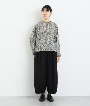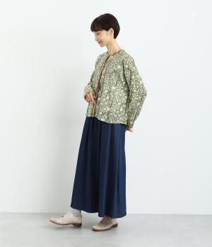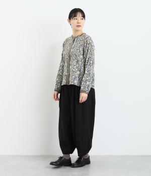 ふわりとエアリーな質感と美しいプリントが華やかな雰囲気をまとわせてくれます。シンプルなパンツに合わせてブラウスを主役に着るのはもちろん、前開きのボタンを外して軽めに羽織ってもコーディネートのアクセントになります。