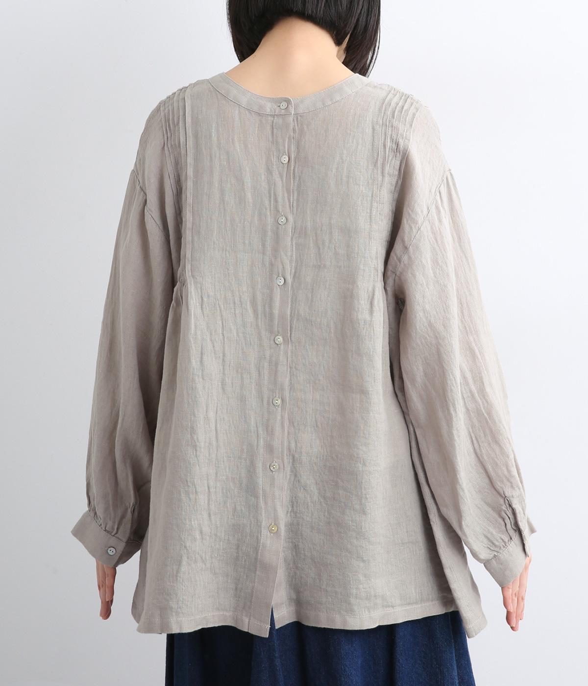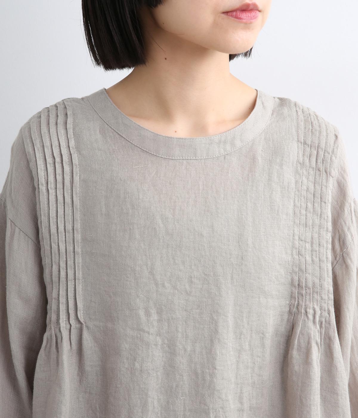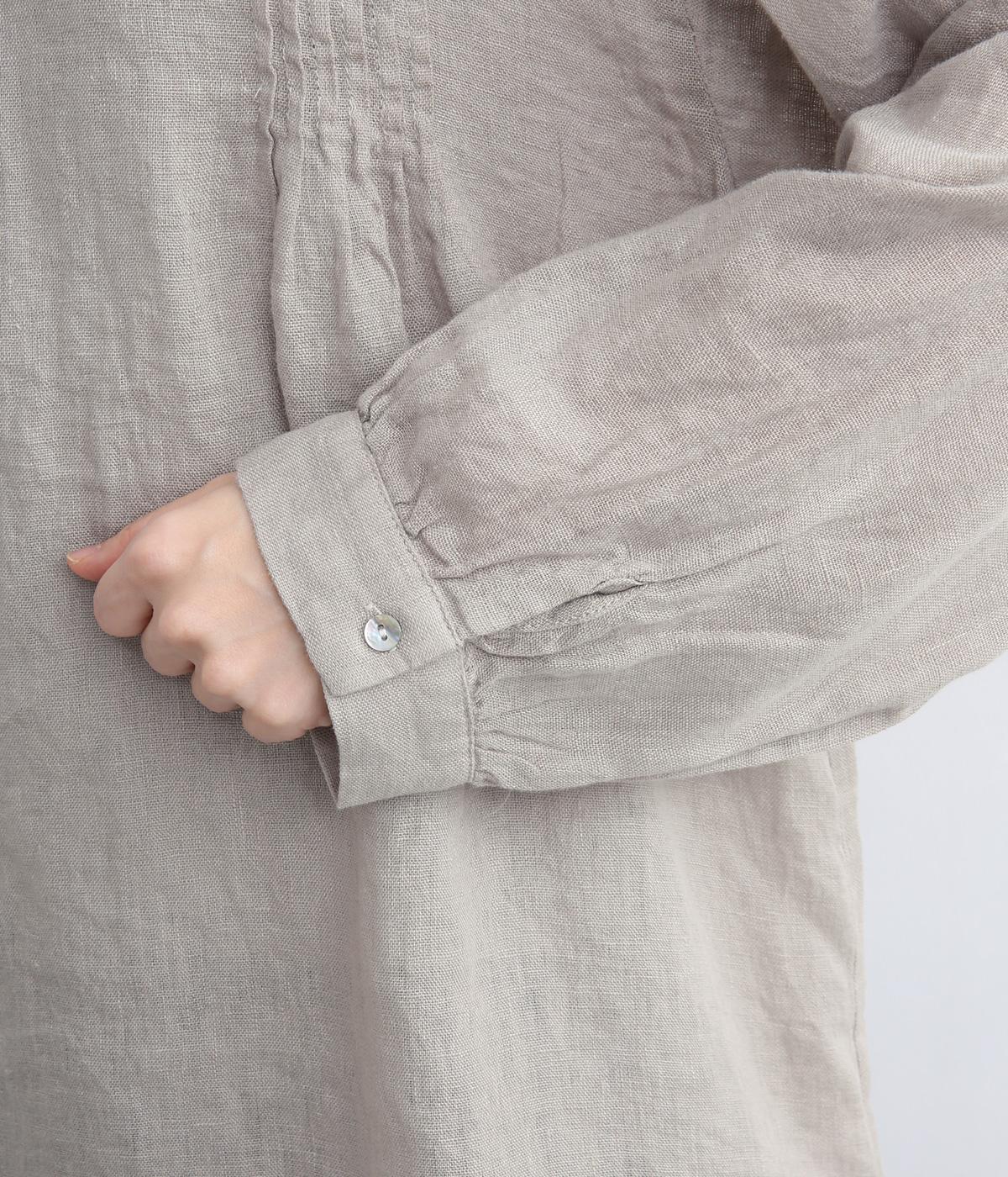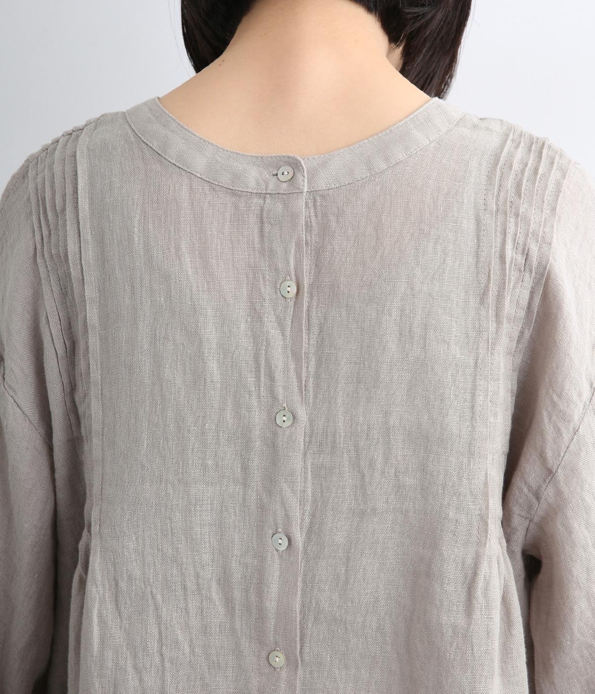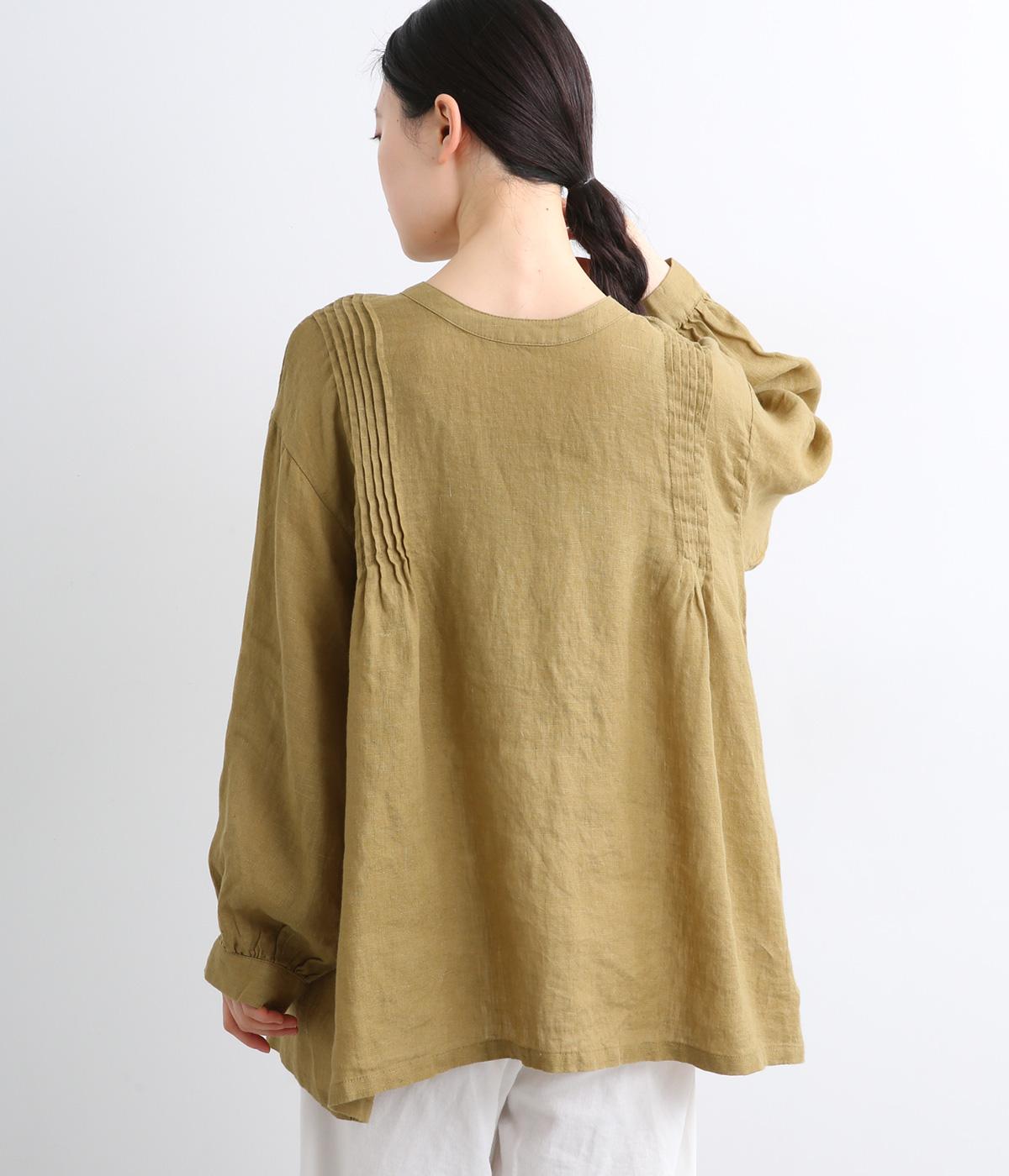 ふんわりとしたシルエットのブラウスを、前開きとプルオーバーの2wayで仕立てました。ナチュラルな素材を引き立てるシンプルなデザインに、ピンタックがさりげない華やかさを添えています。大人のカジュアルスタイルにぴったりな一枚です。